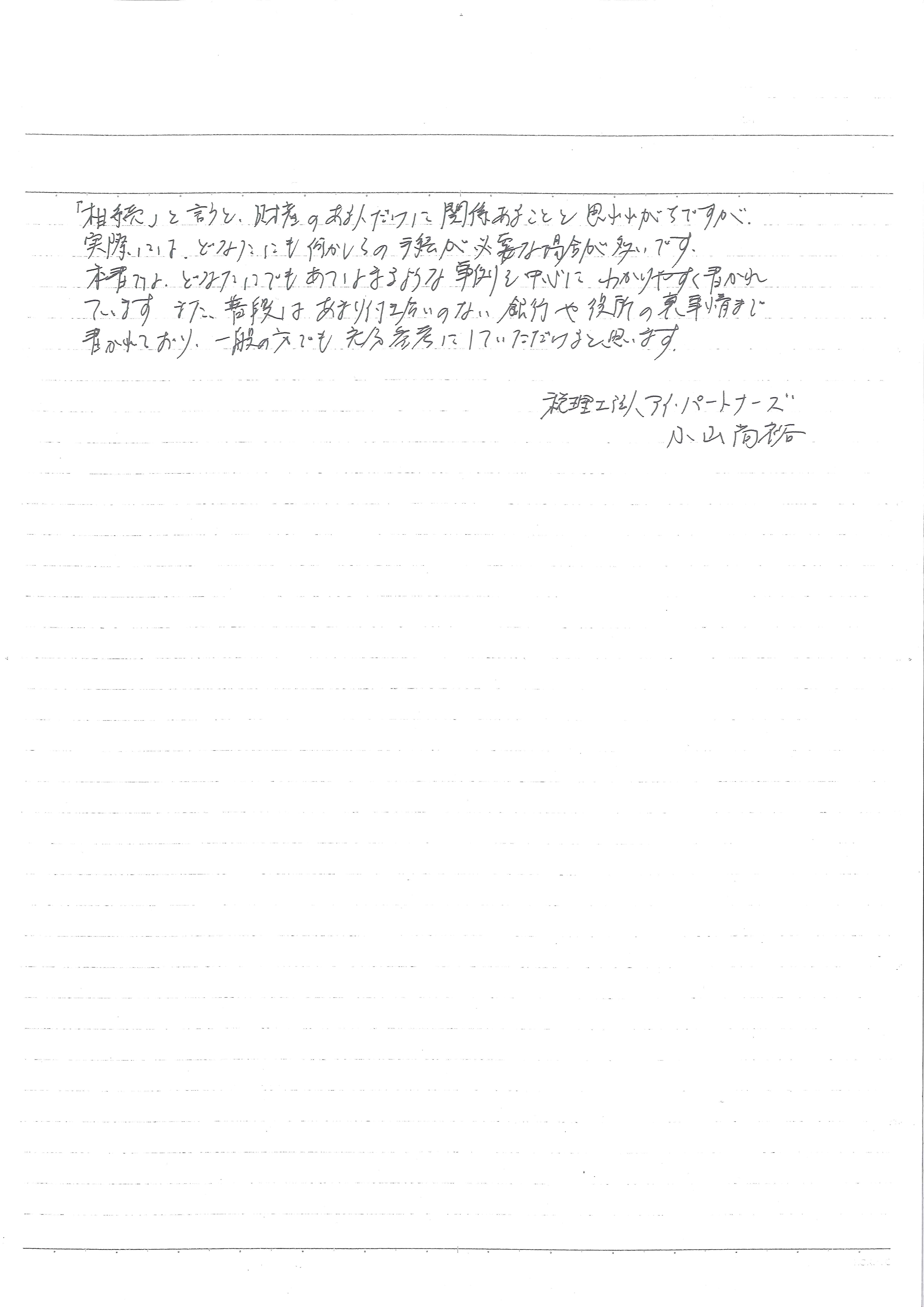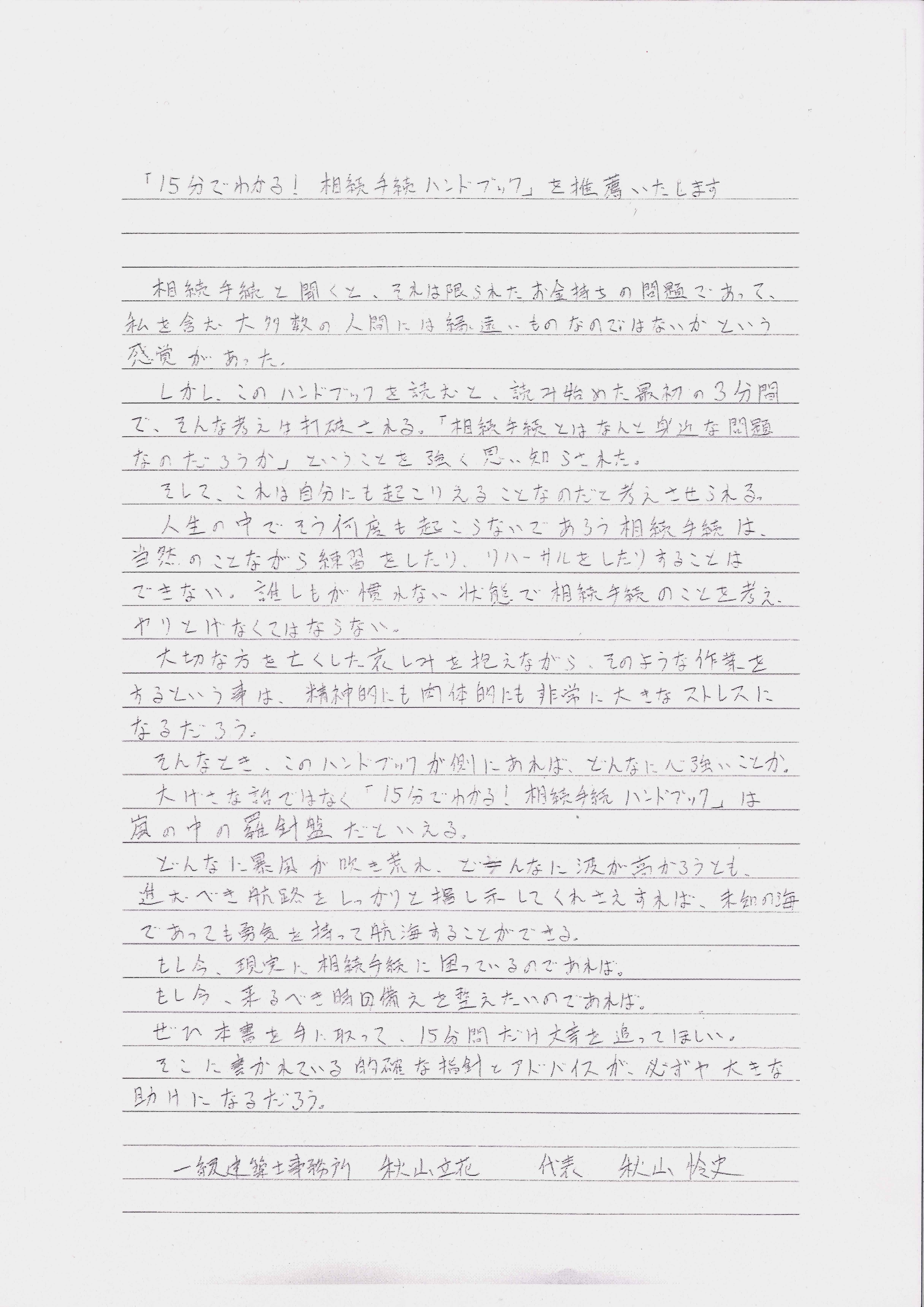 相続ハンドブックの推薦のお声はこちらからごらんいただけます。