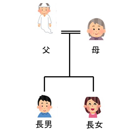 この場合、父が亡くなると、 相続人は、『母』『長男』『長女』の3人です。