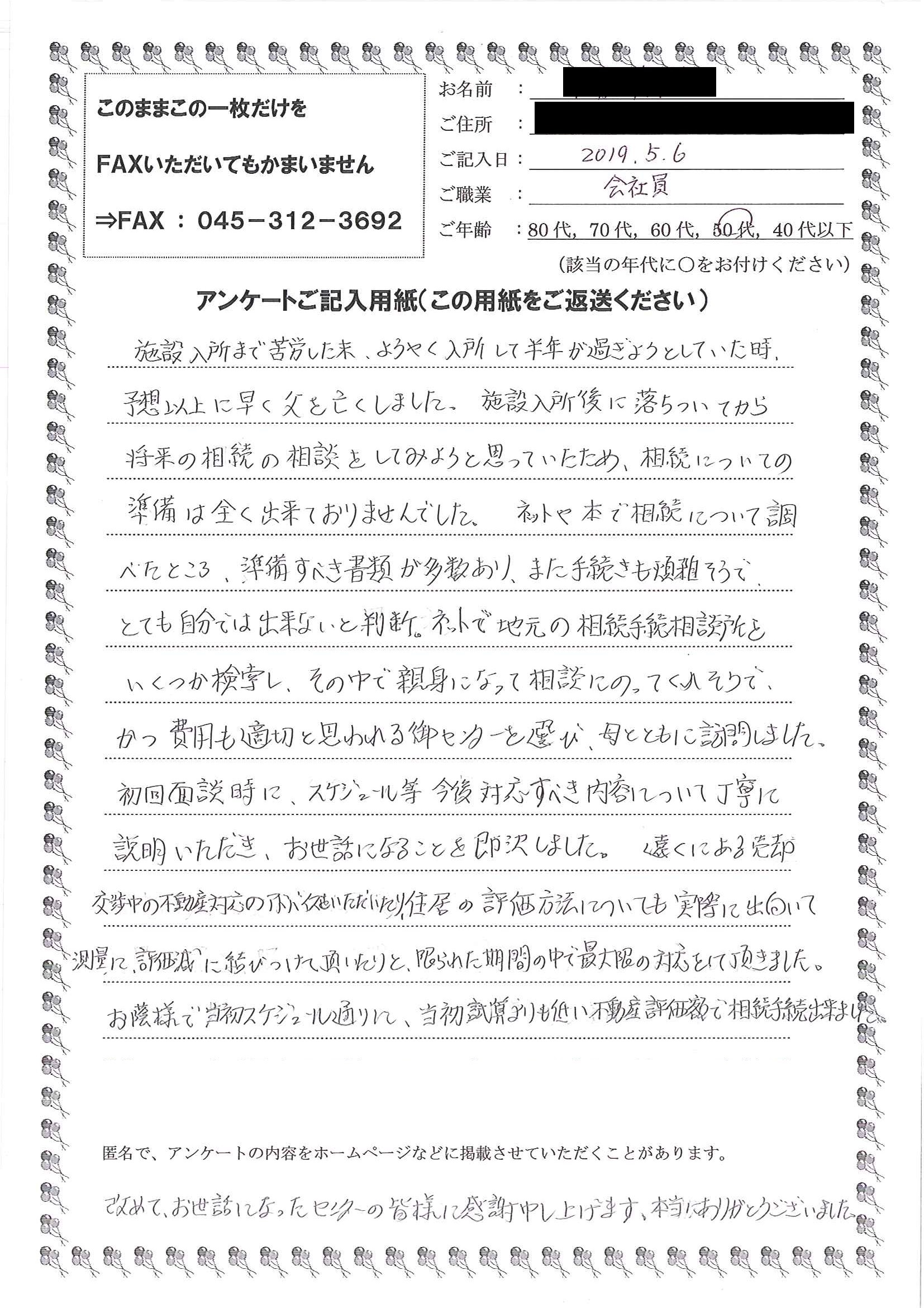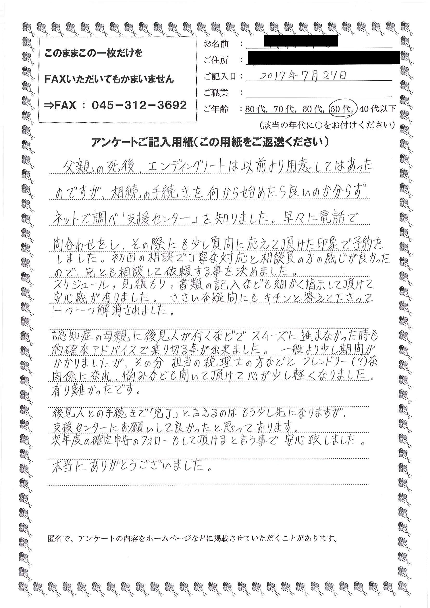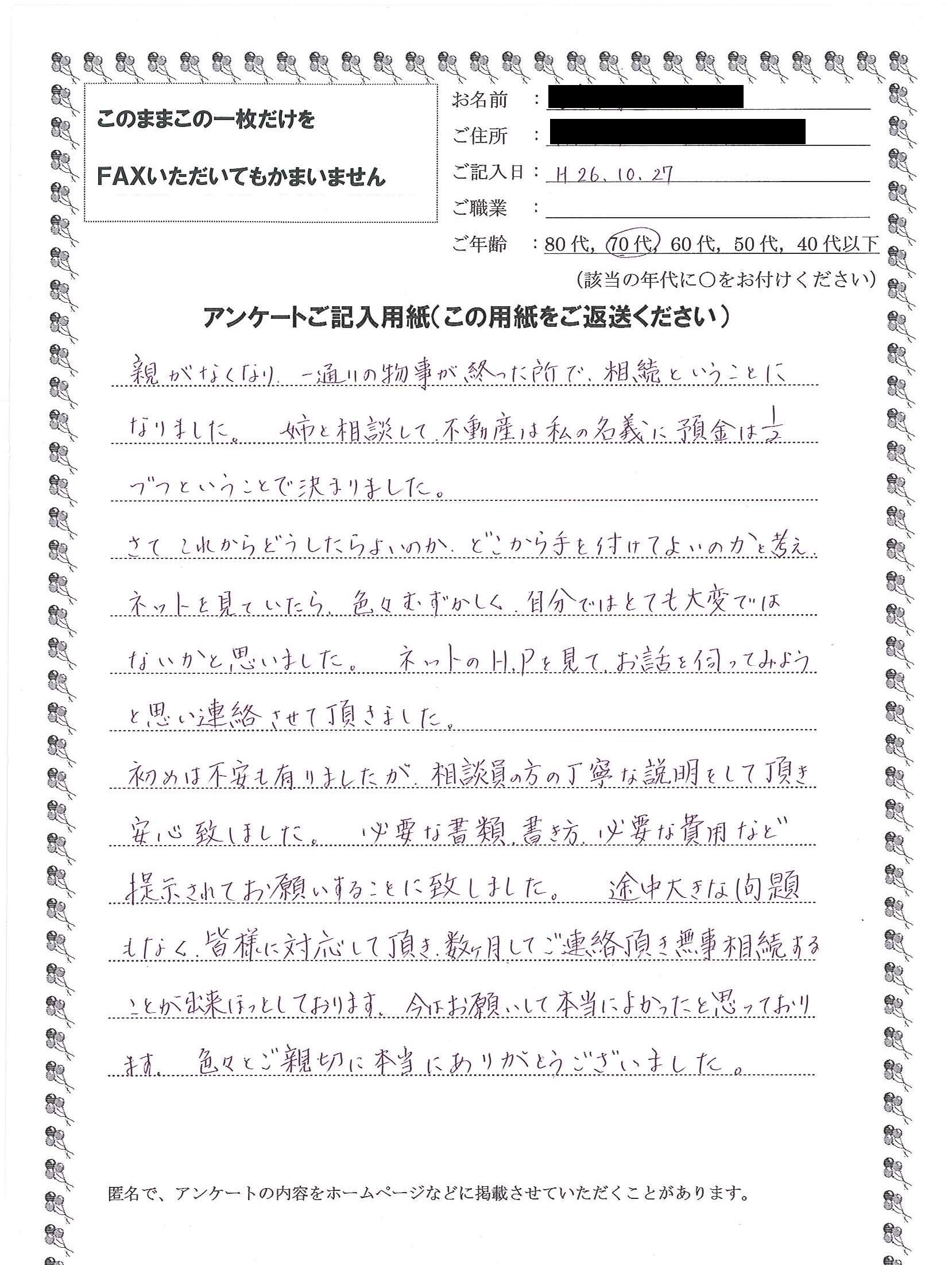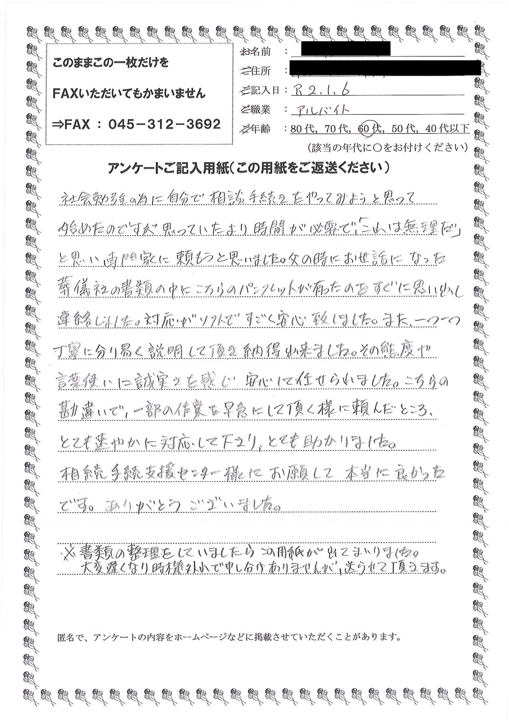 あれだけお手上げ状態だった相続手続きが数か月で全て終わった事に驚いています。