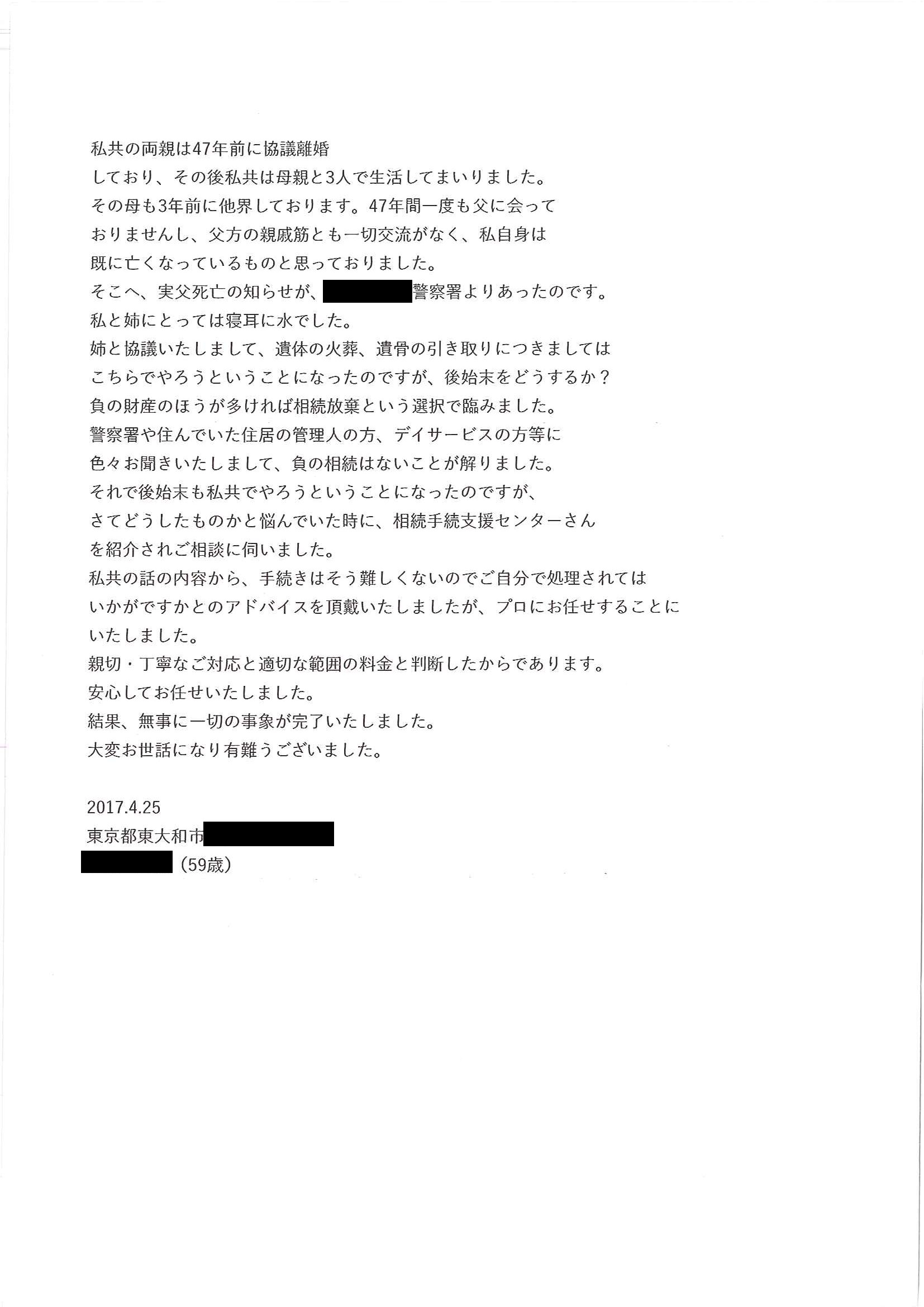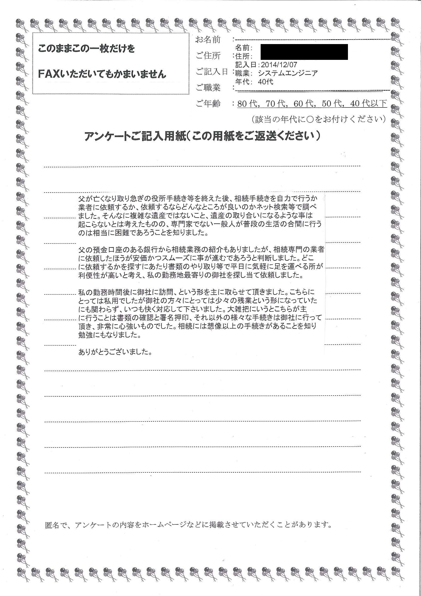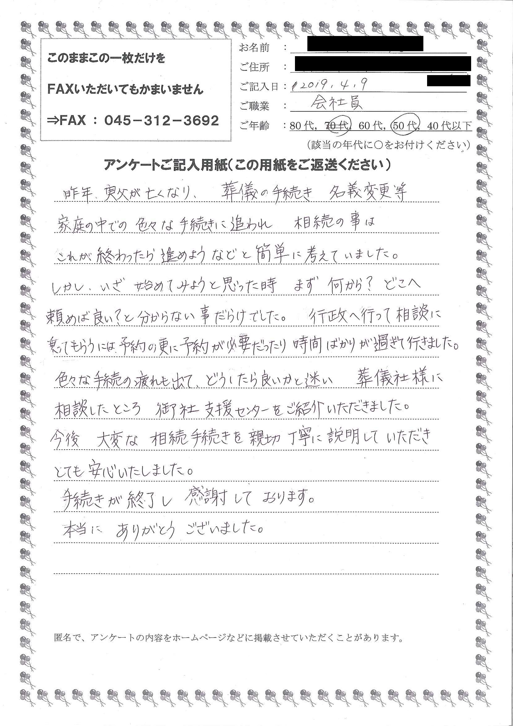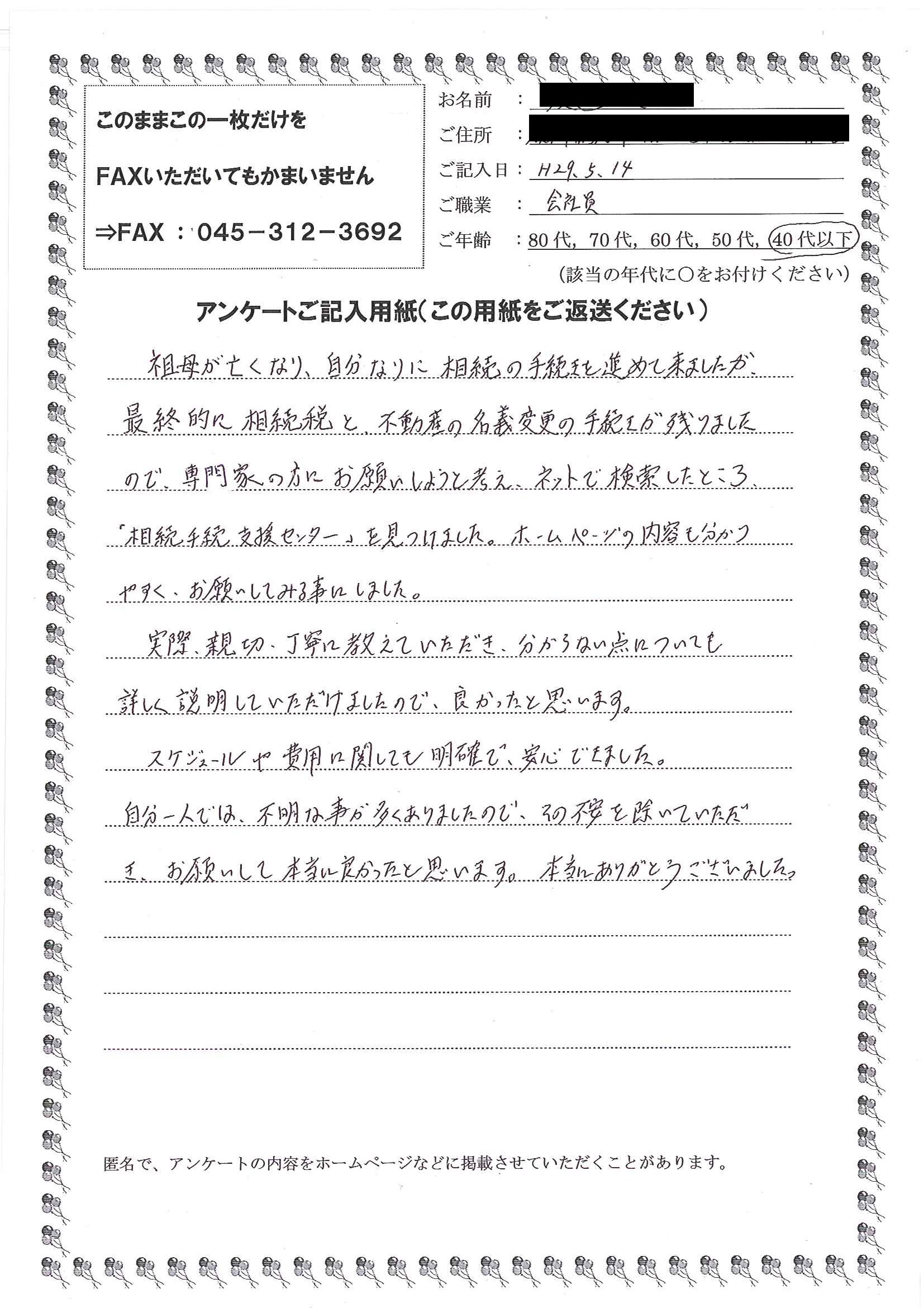 あれだけお手上げ状態だった相続手続きが数か月で全て終わった事に驚いています。