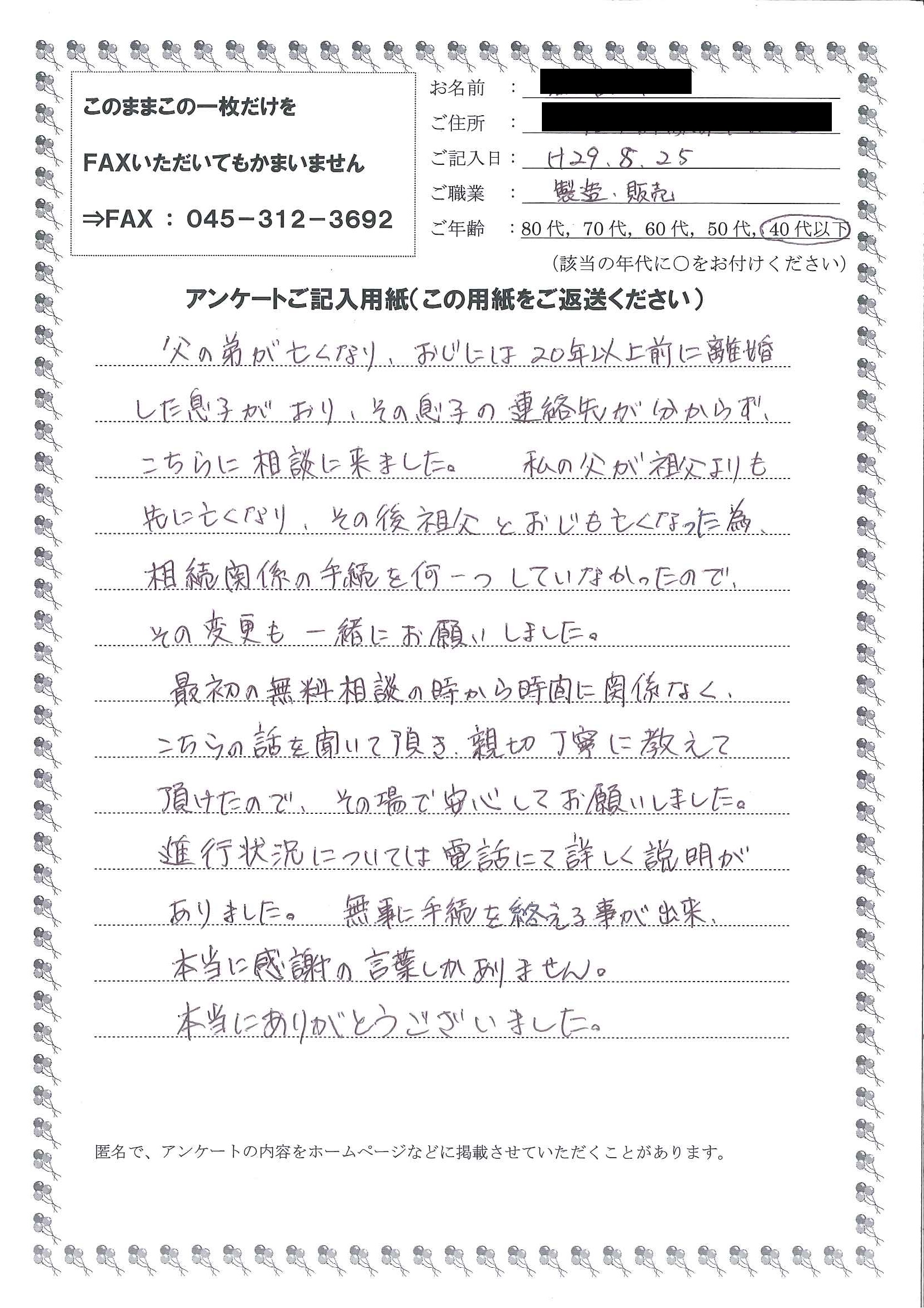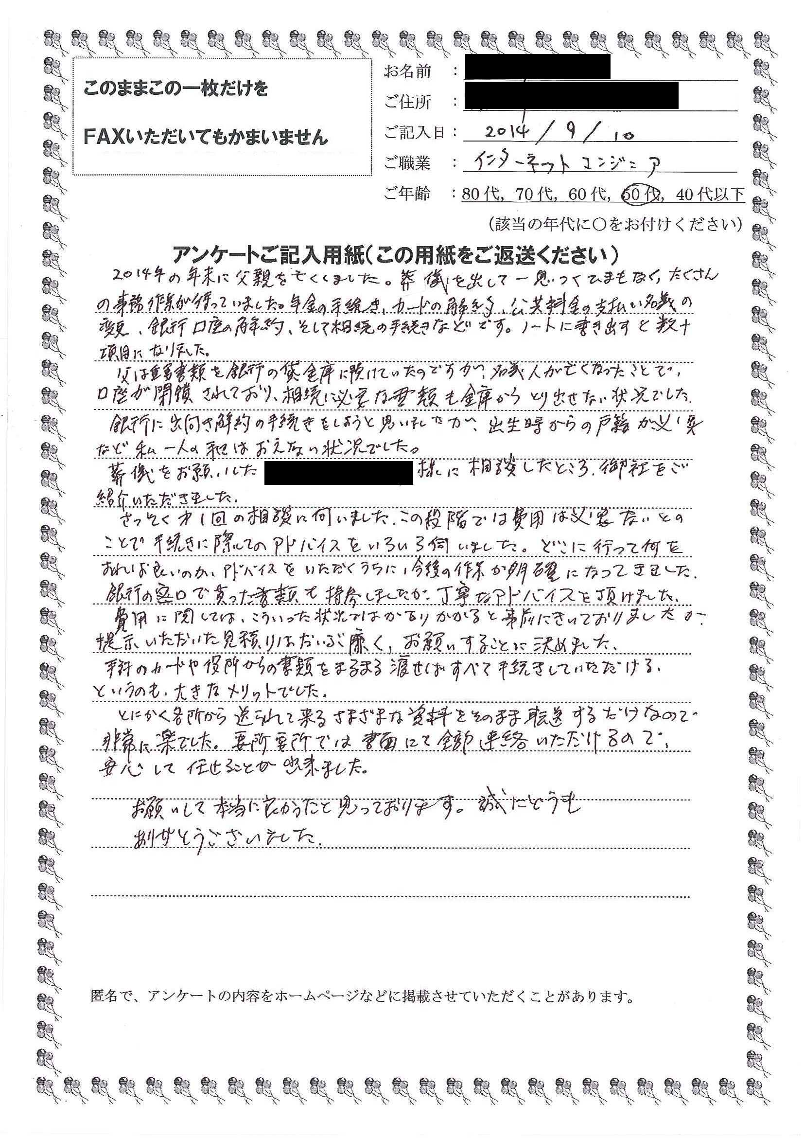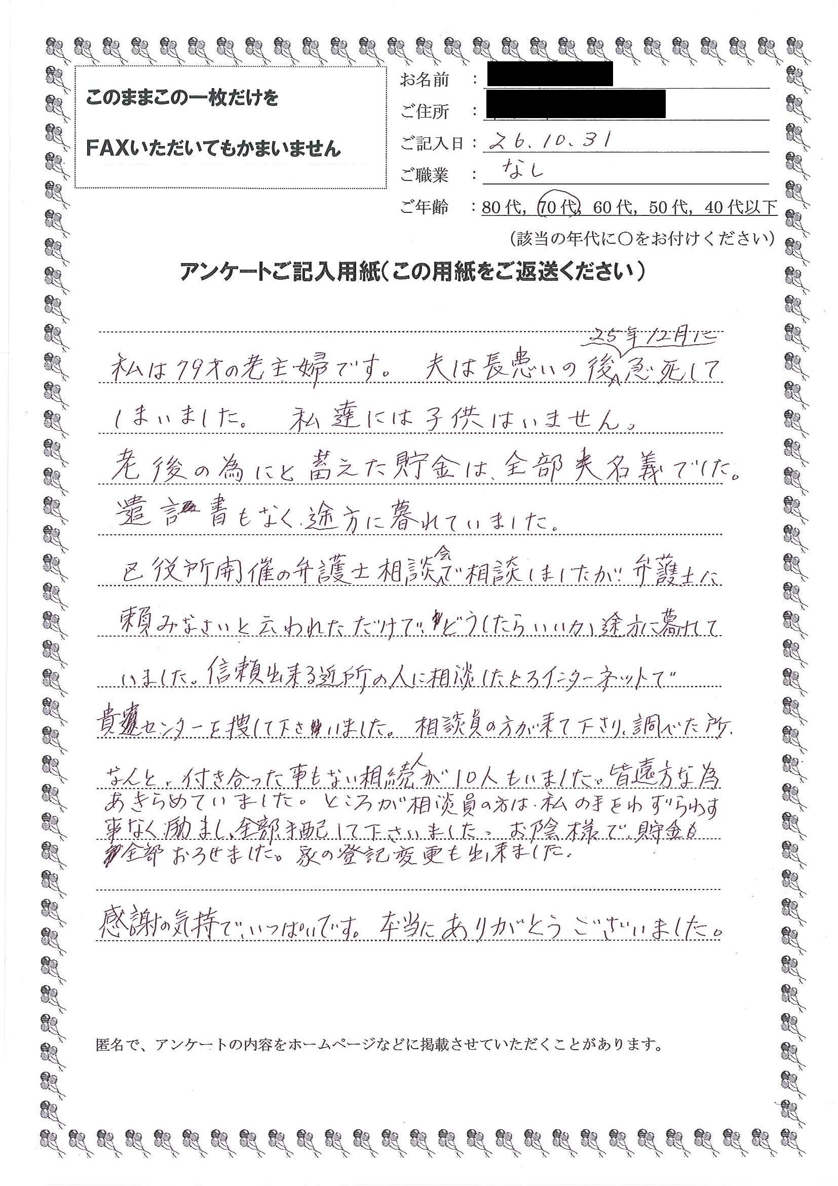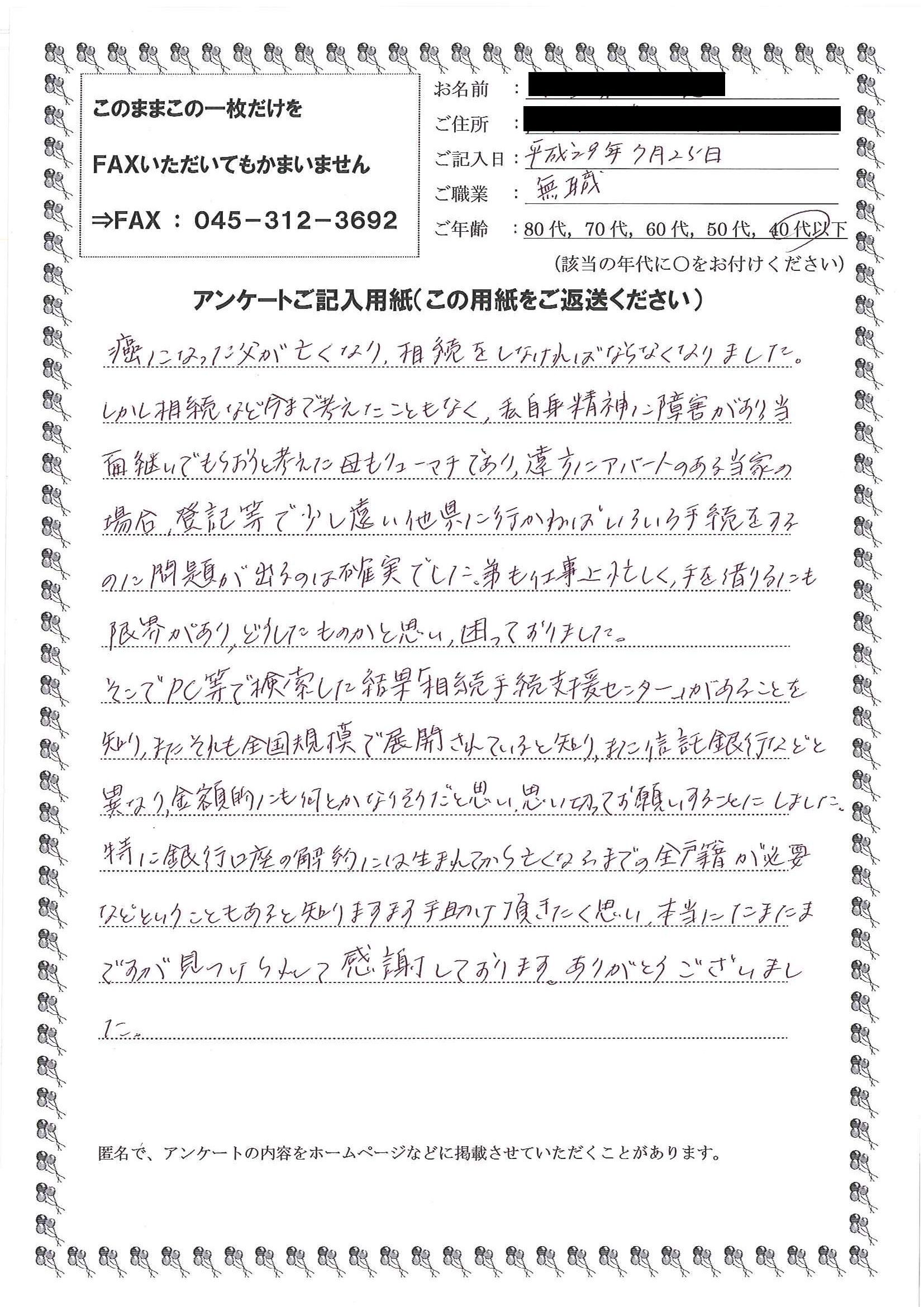 心からお礼を申し上げたいと共に、私の様に相続手続きをしなくてはならないが