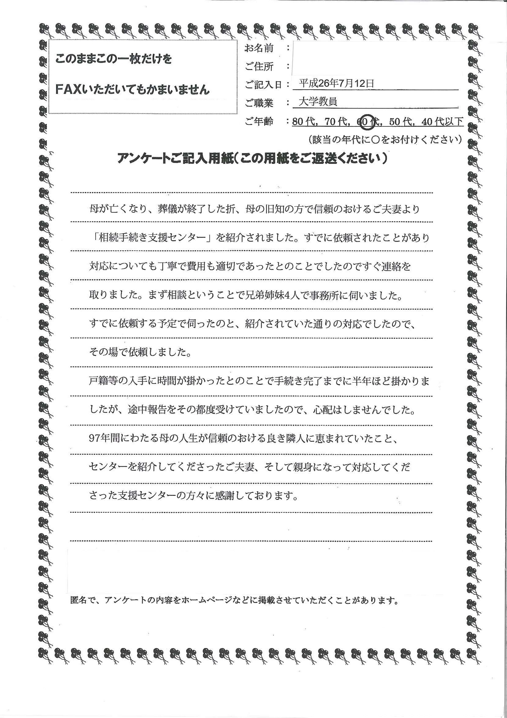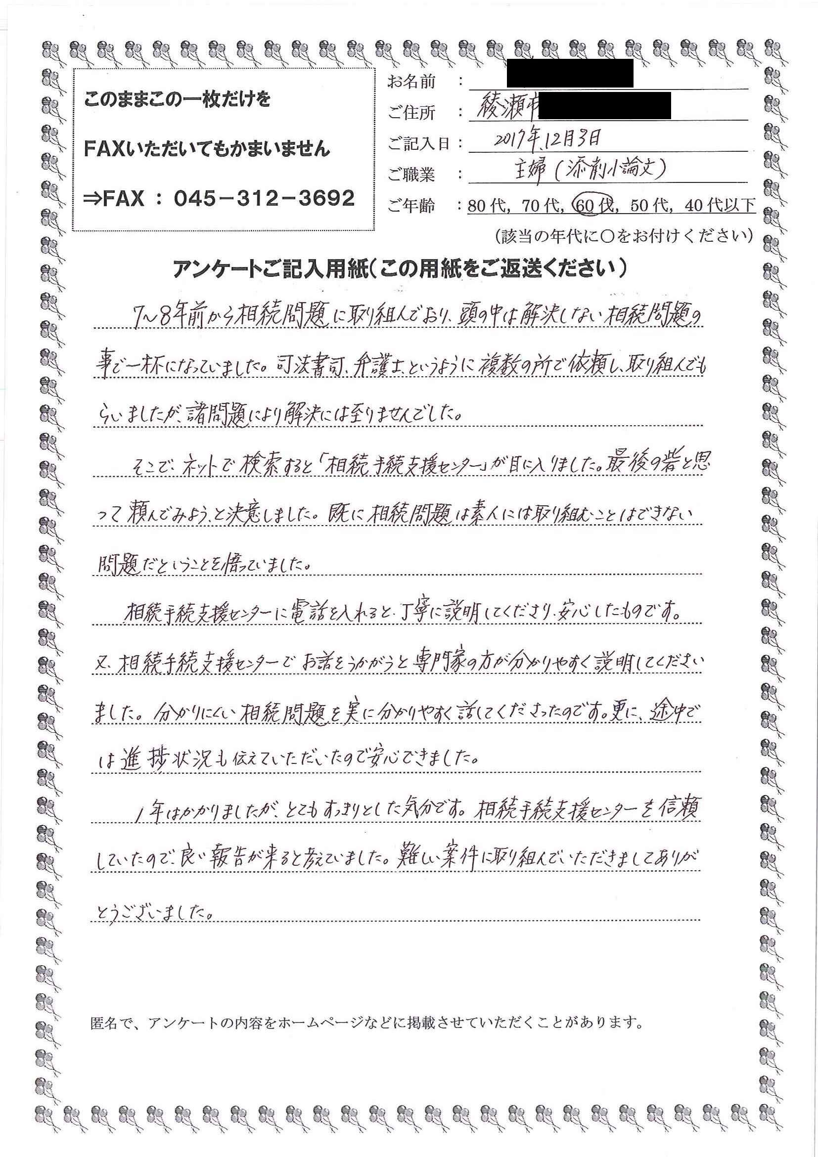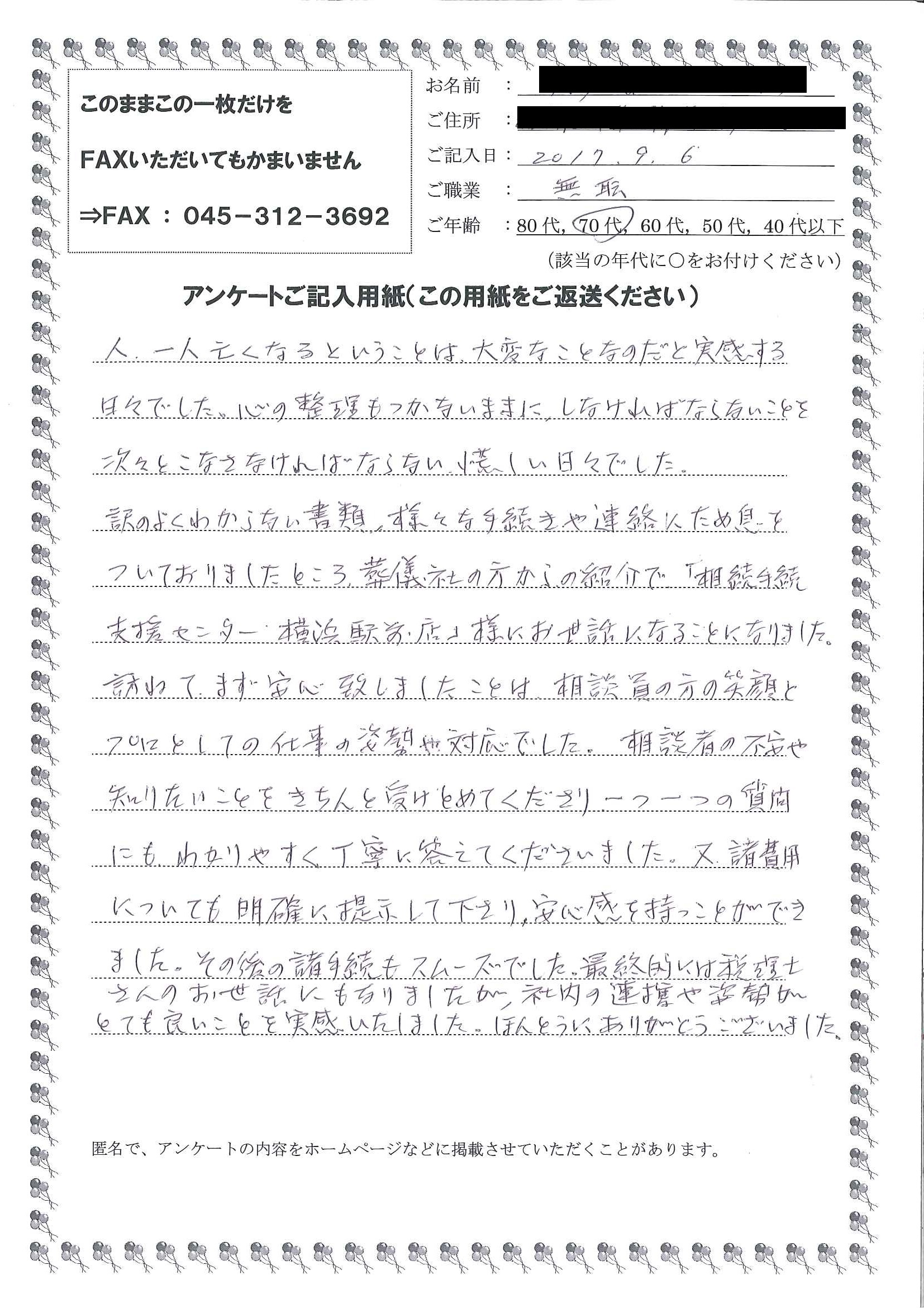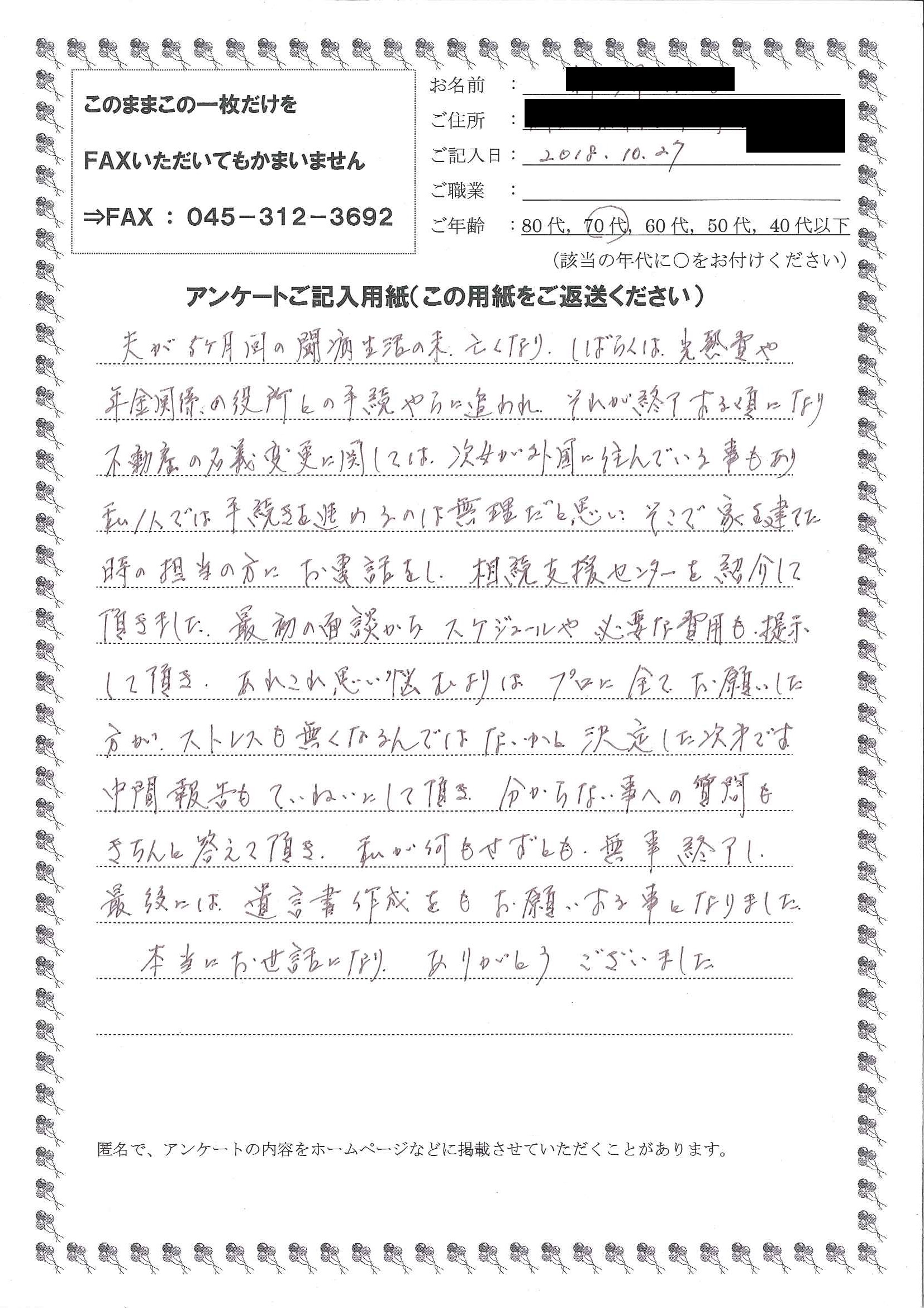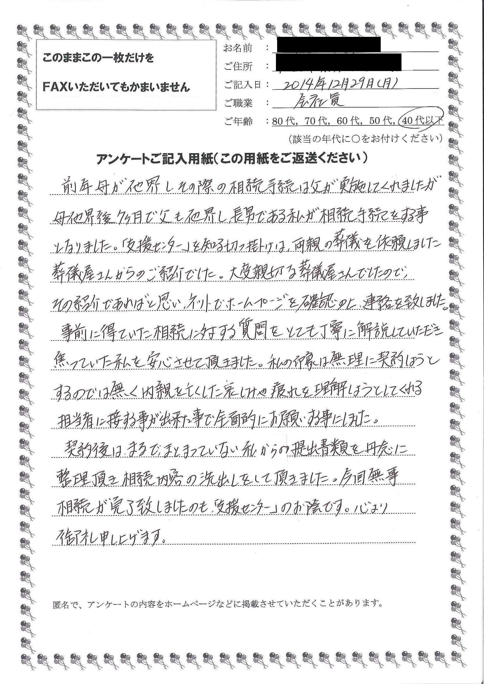 心からお礼を申し上げたいと共に、私の様に相続手続きをしなくてはならないが