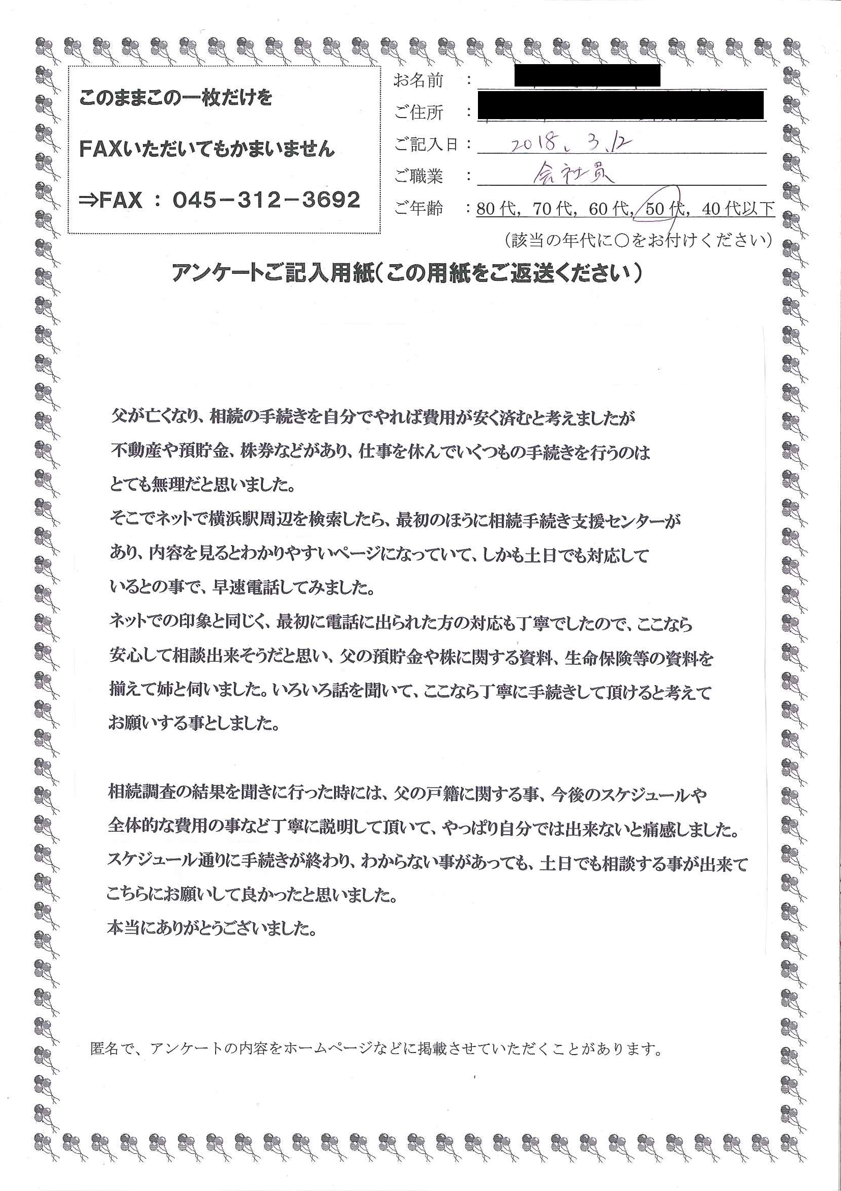 心からお礼を申し上げたいと共に、私の様に相続手続きをしなくてはならないが