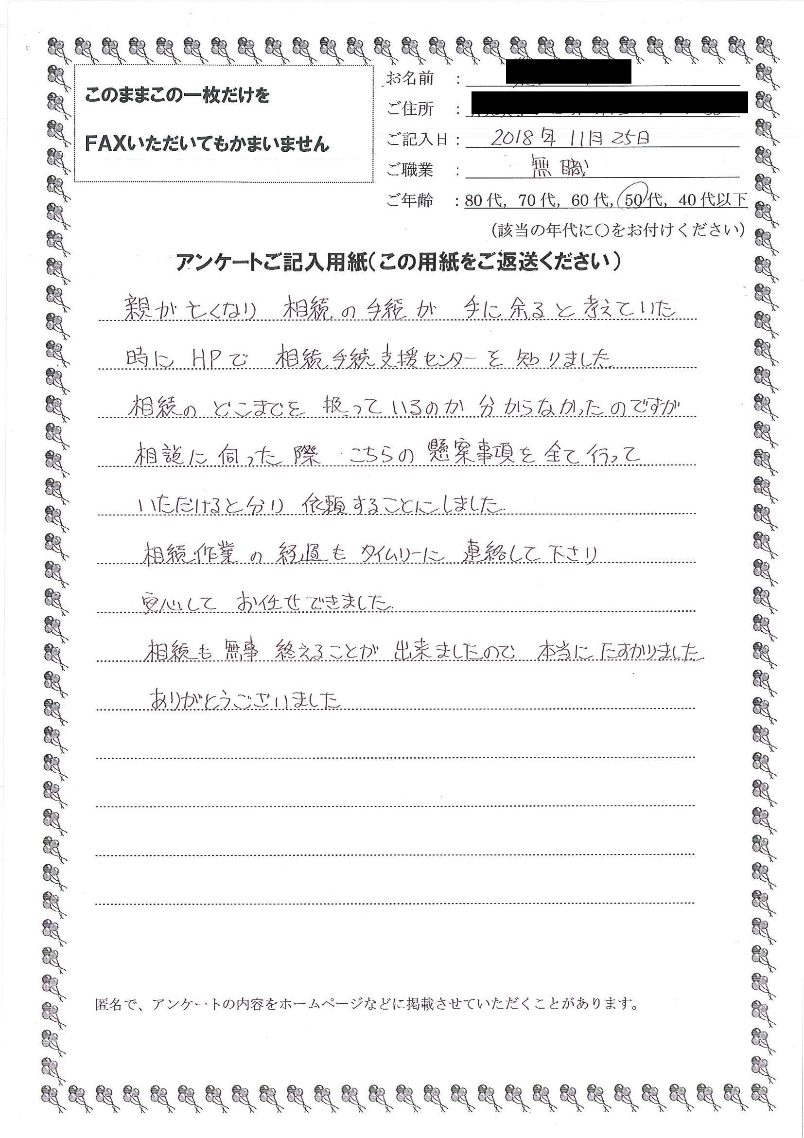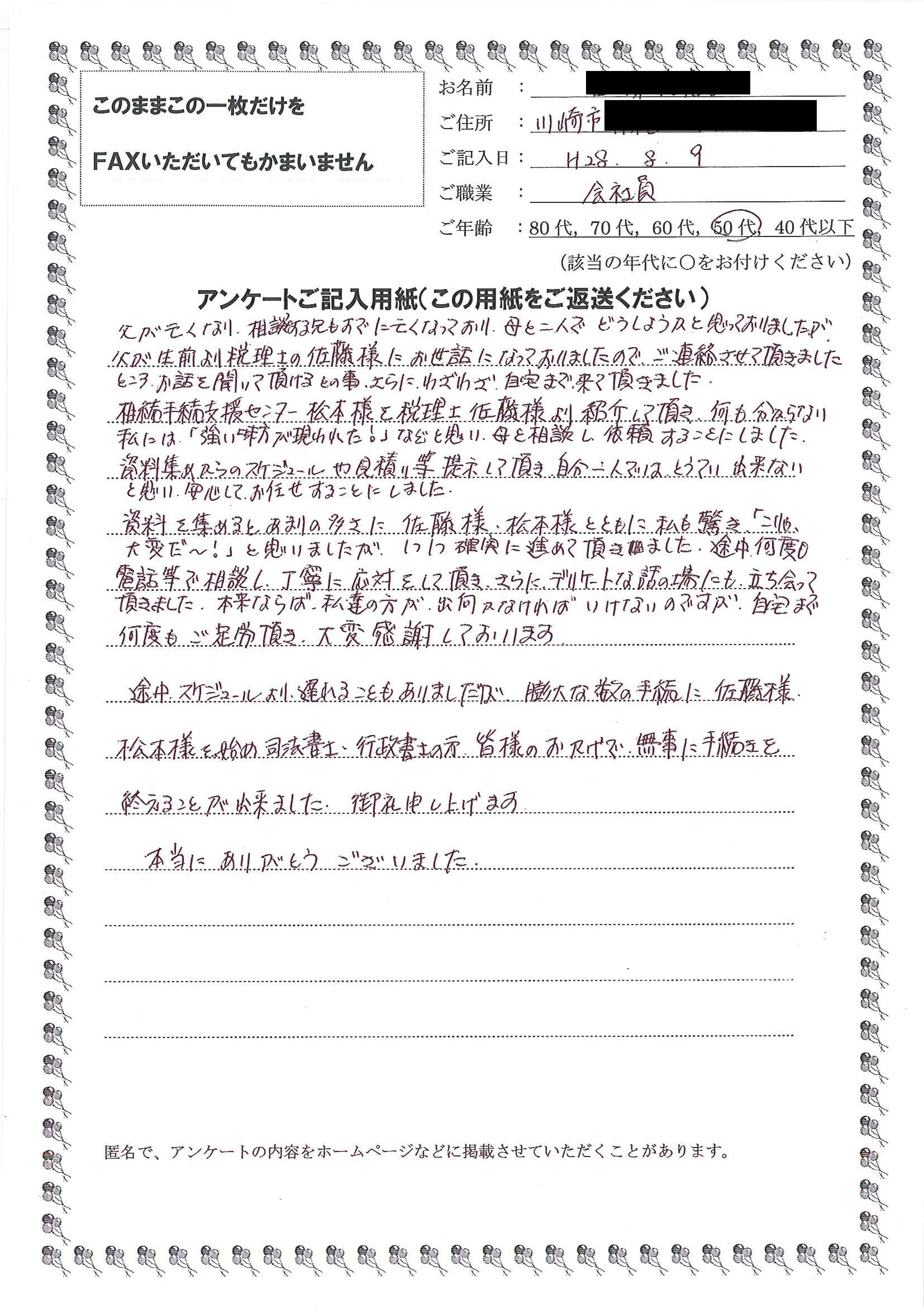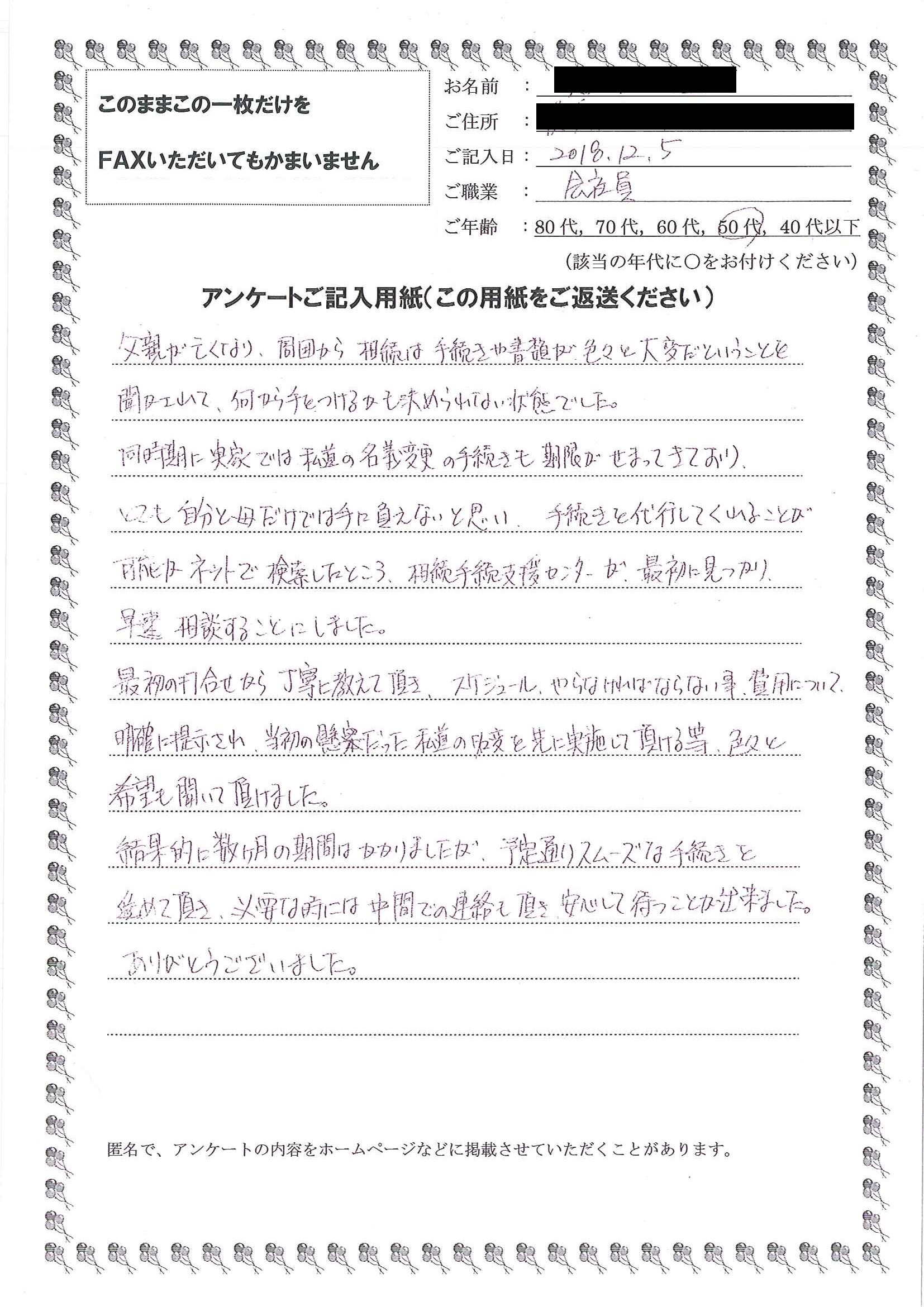 皆様のおかげで無事に手続きを終えることが出来ました。