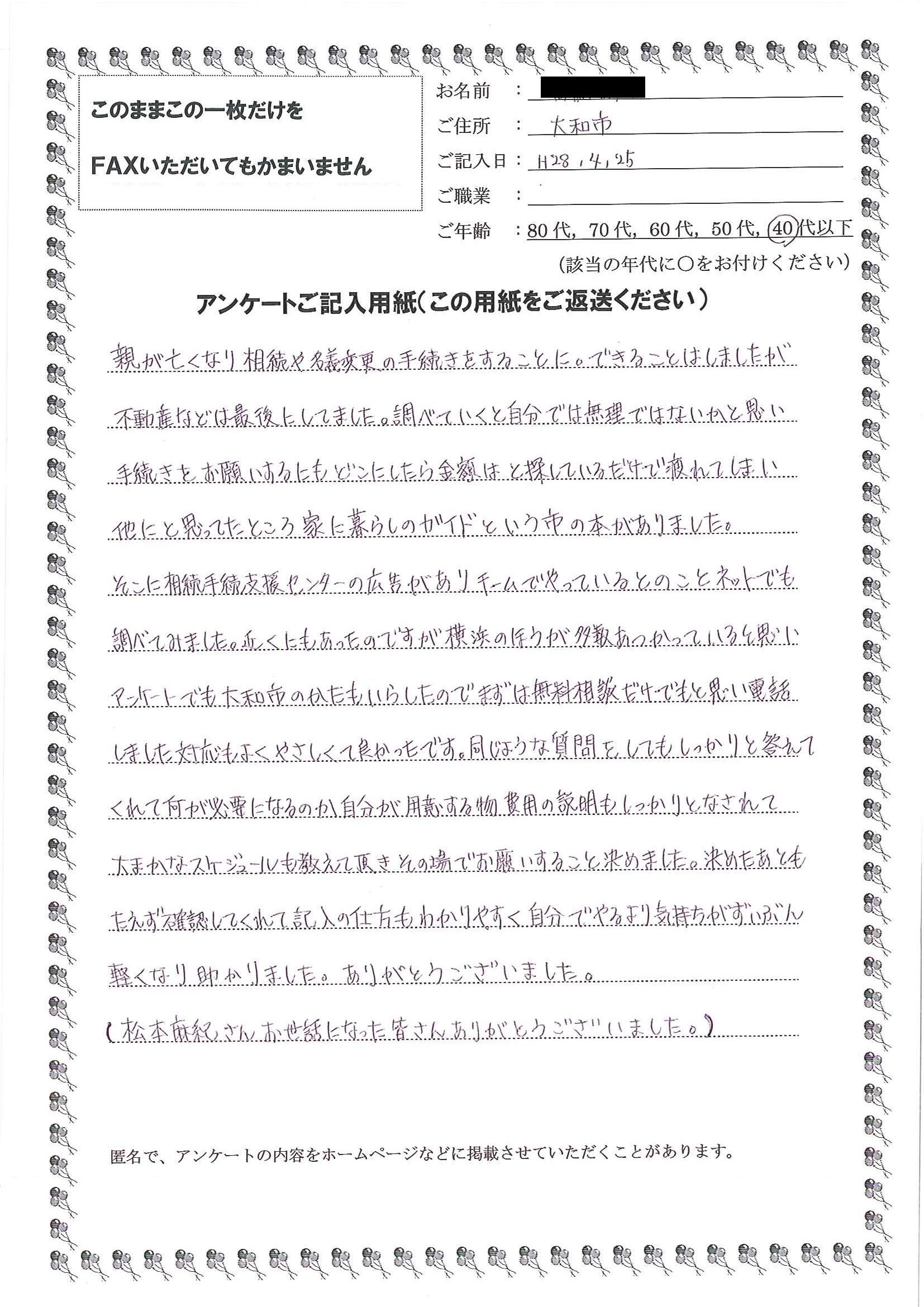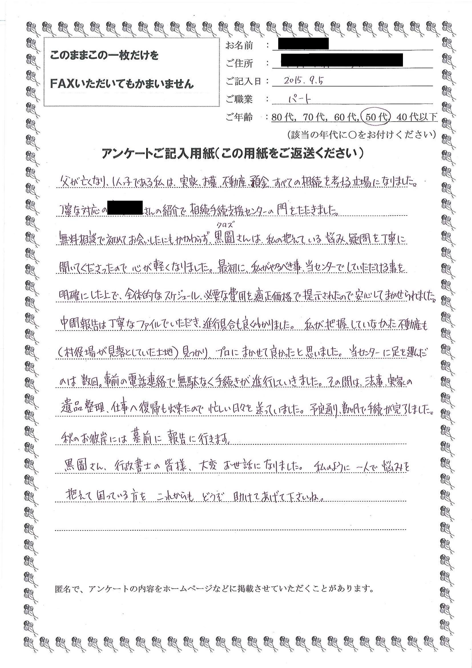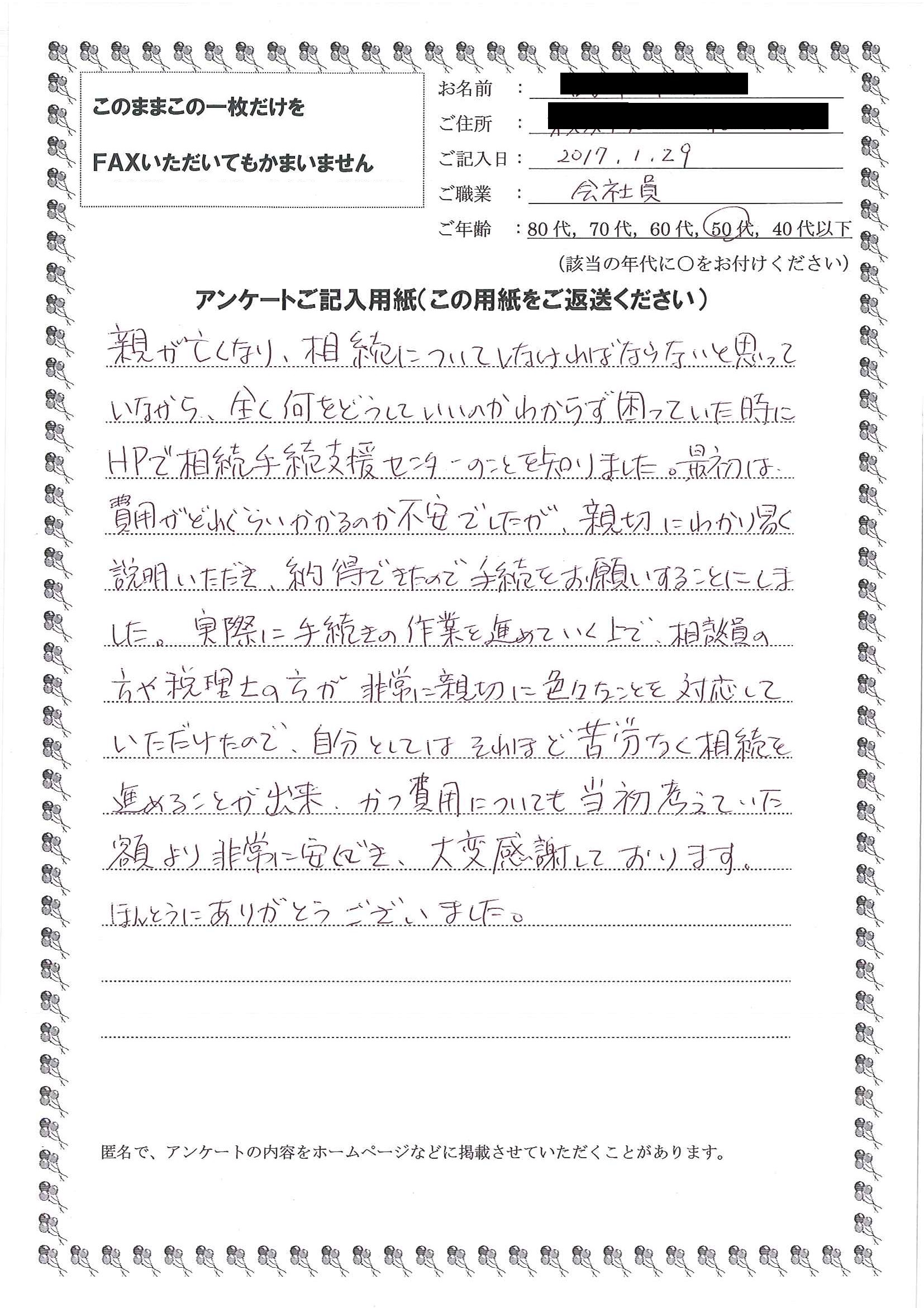 皆様のおかげで無事に手続きを終えることが出来ました。