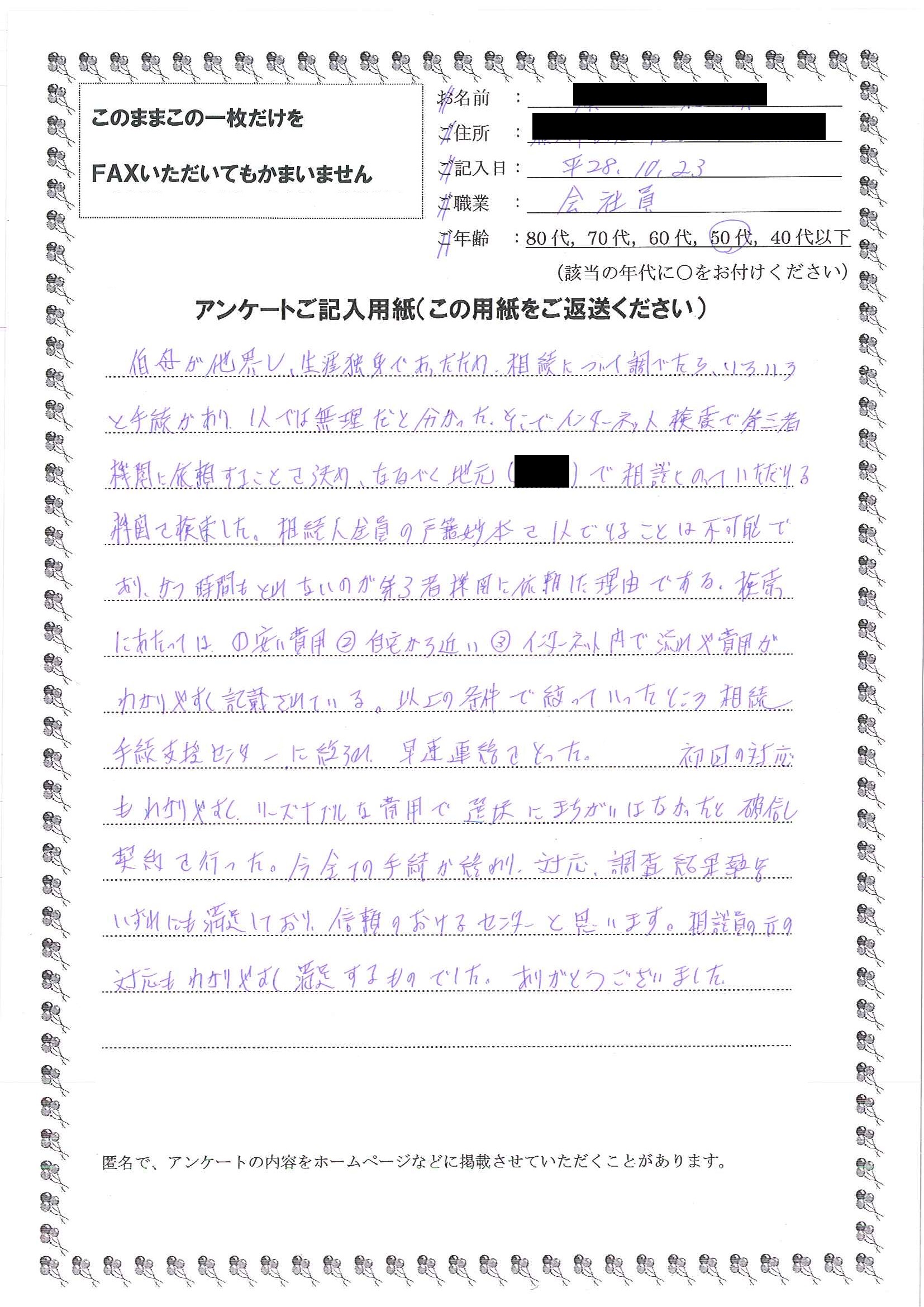 以上の条件で絞っていったところ、相続手続支援センター名古屋に絞られ、
