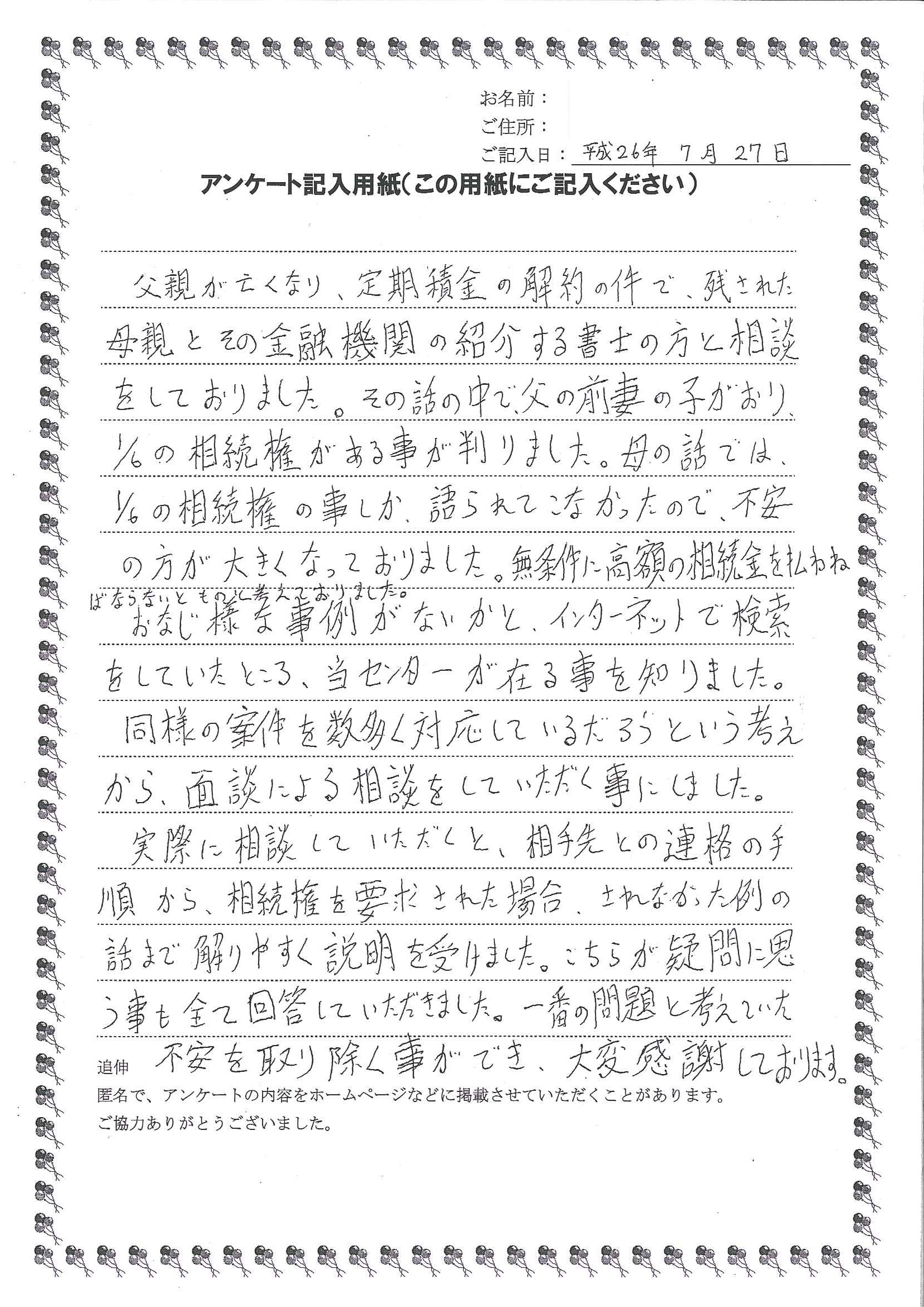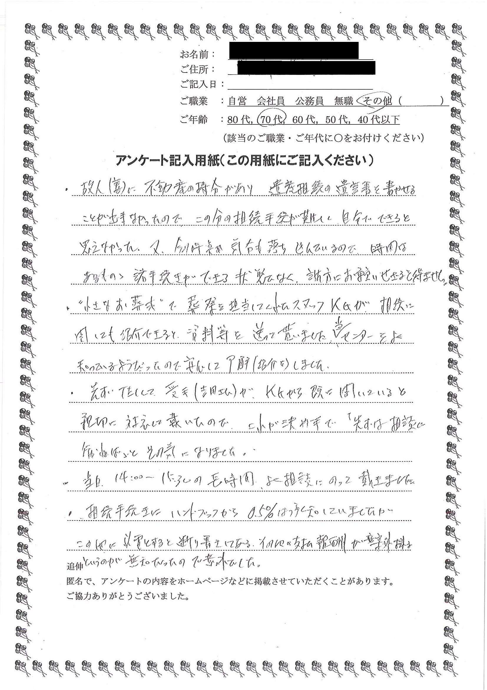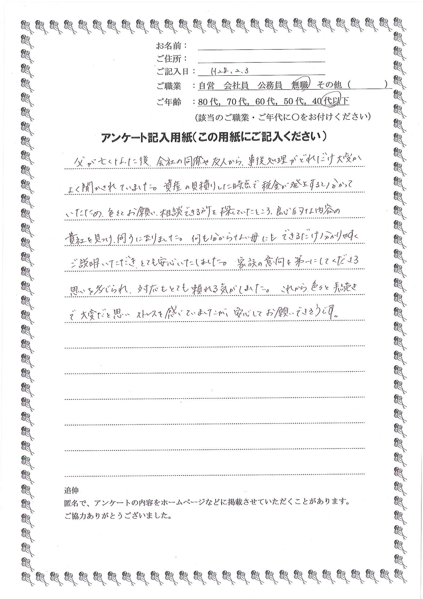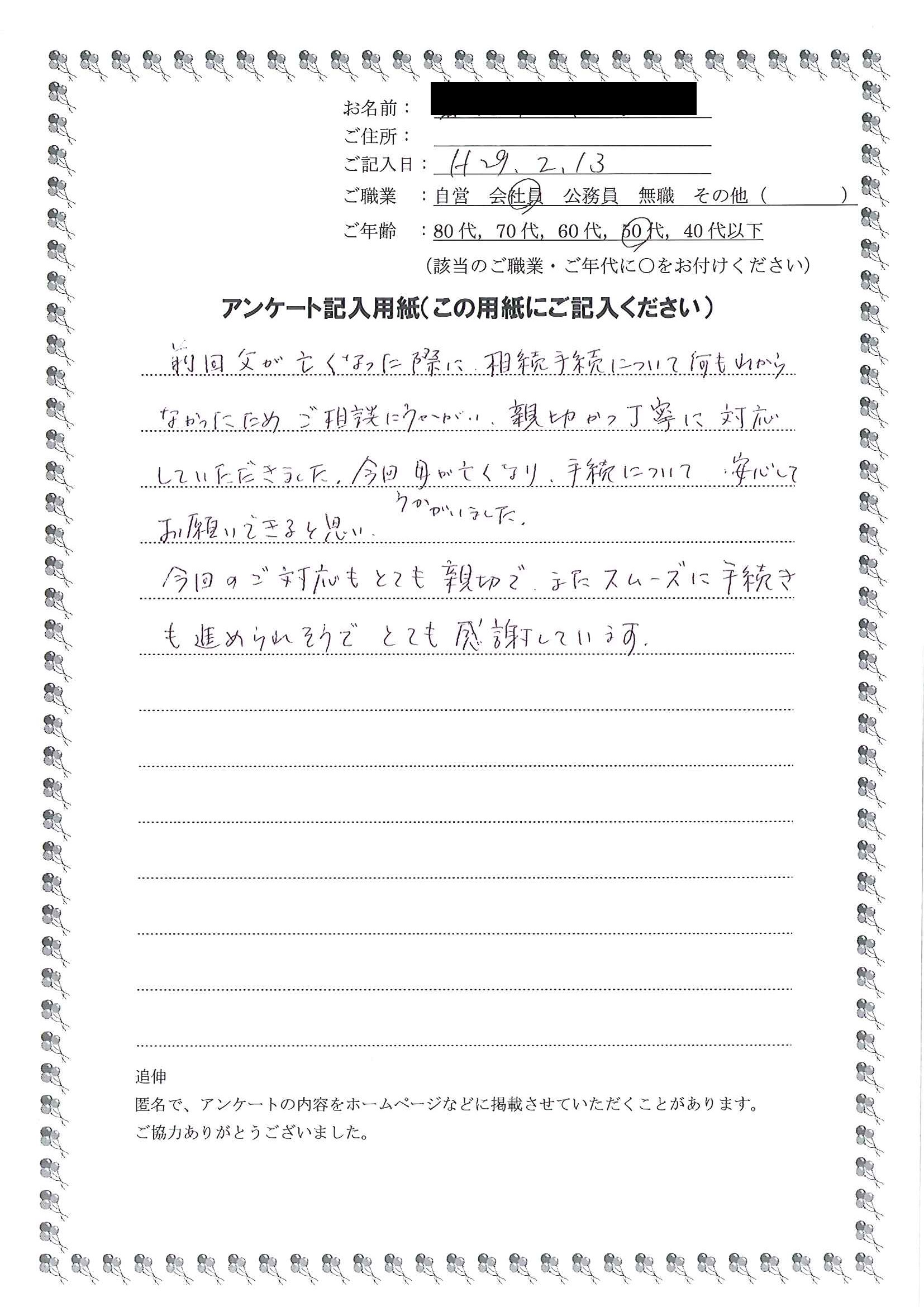 そのようななかでも父の相続手続を滞りなくしていただいた