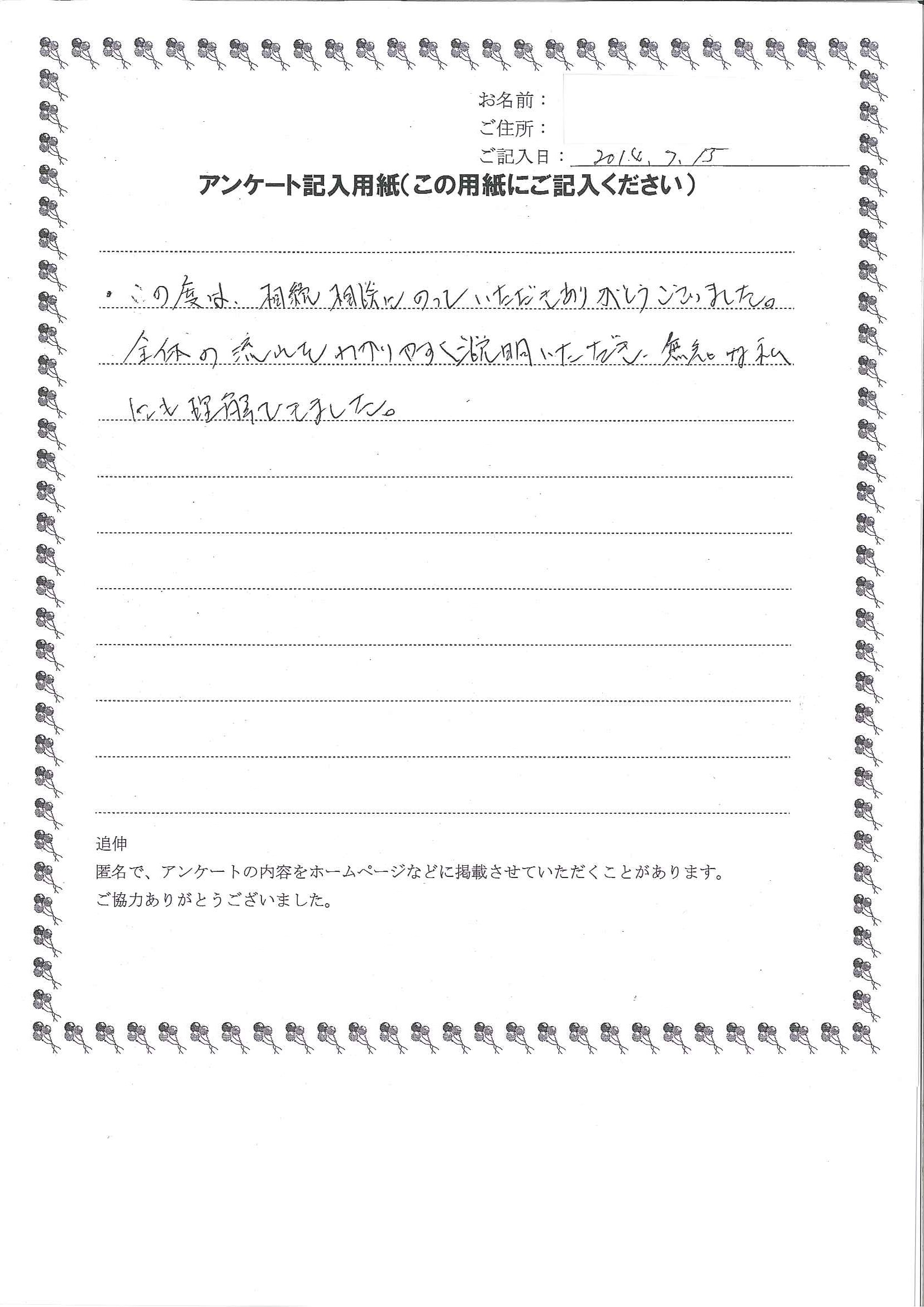 一番の問題と考えていた不安を取り除く事ができ、大変感謝しております。