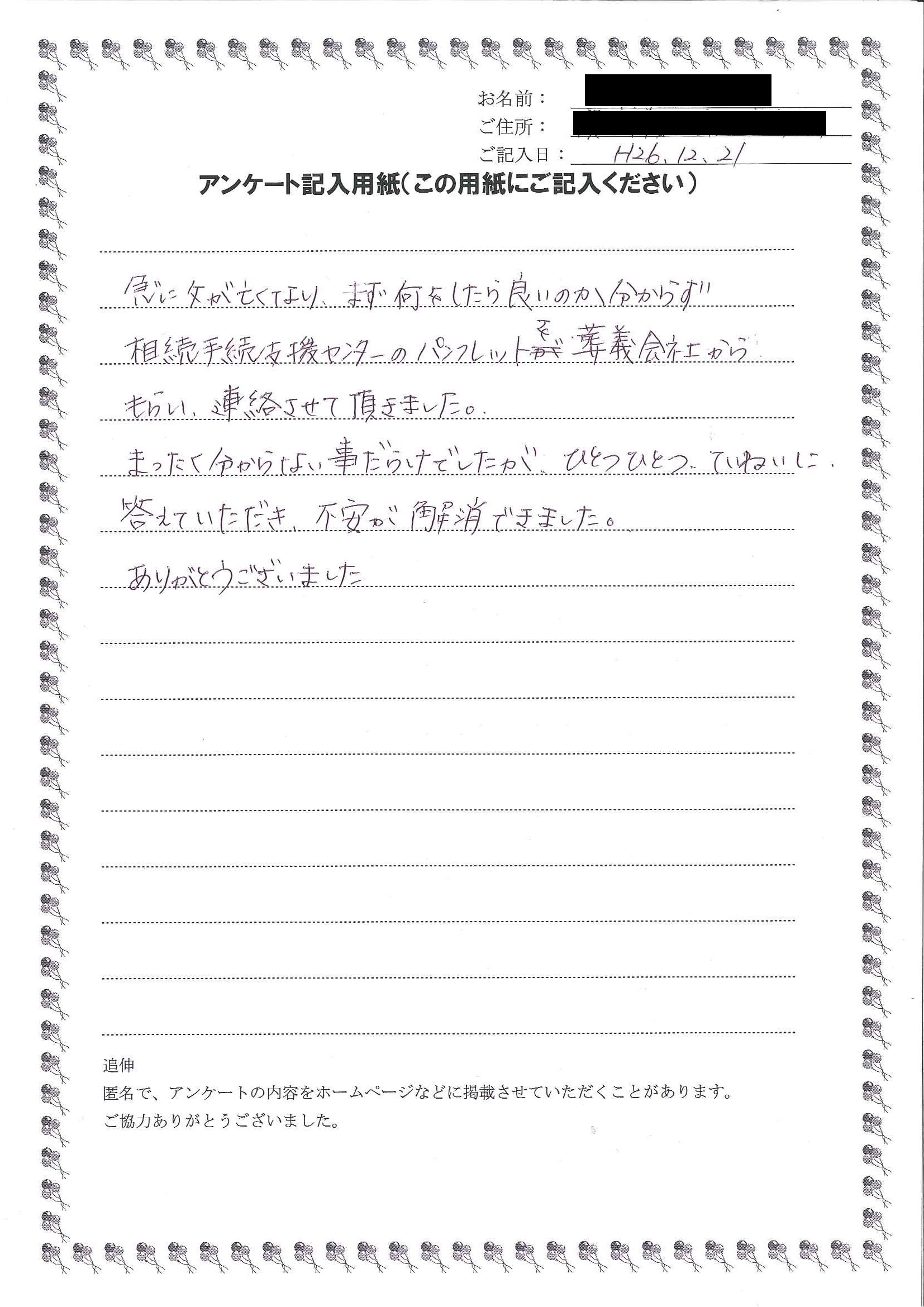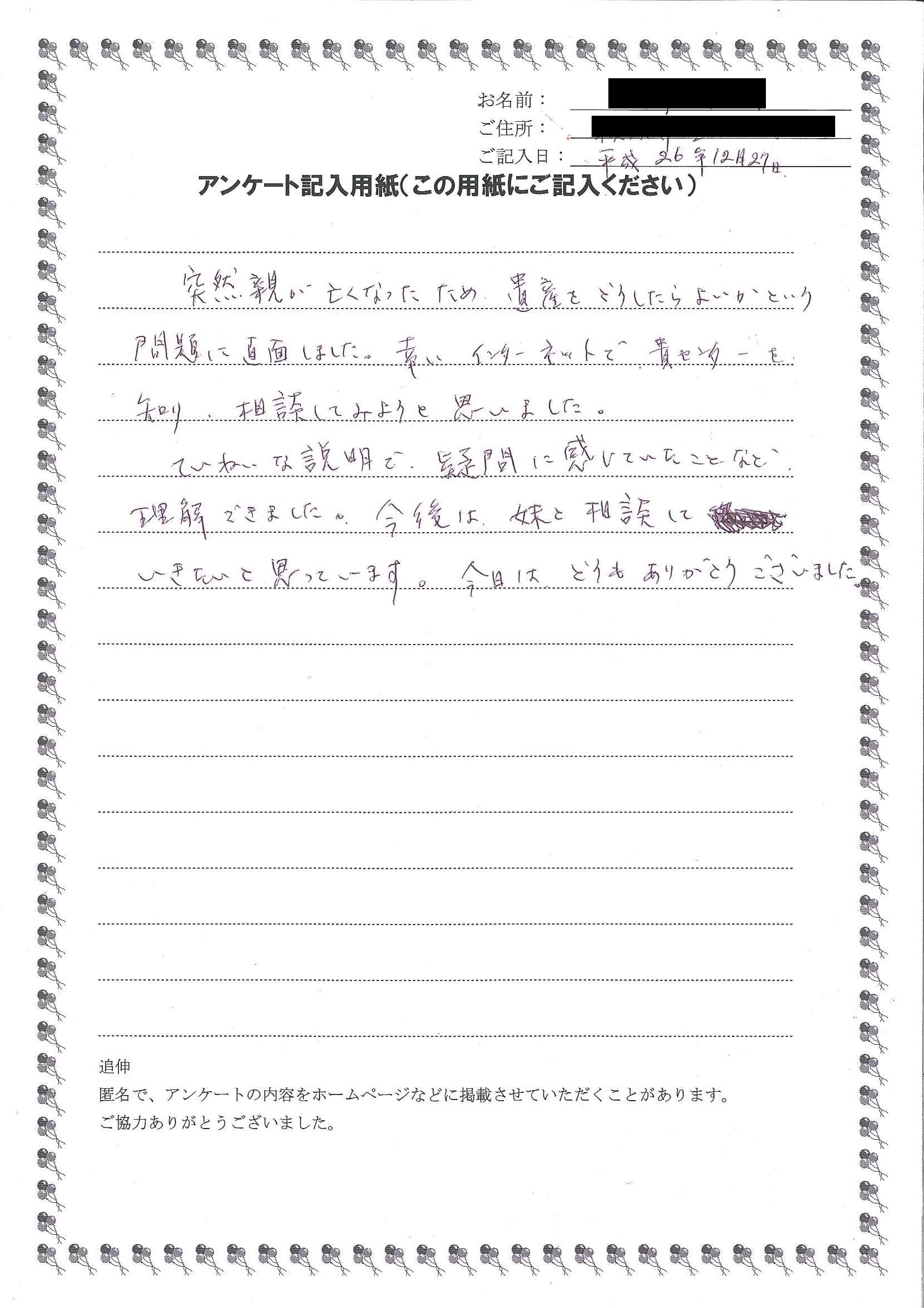 HOME > 無料相談者からいただいた声 > 無料相談者からいただいた声の10