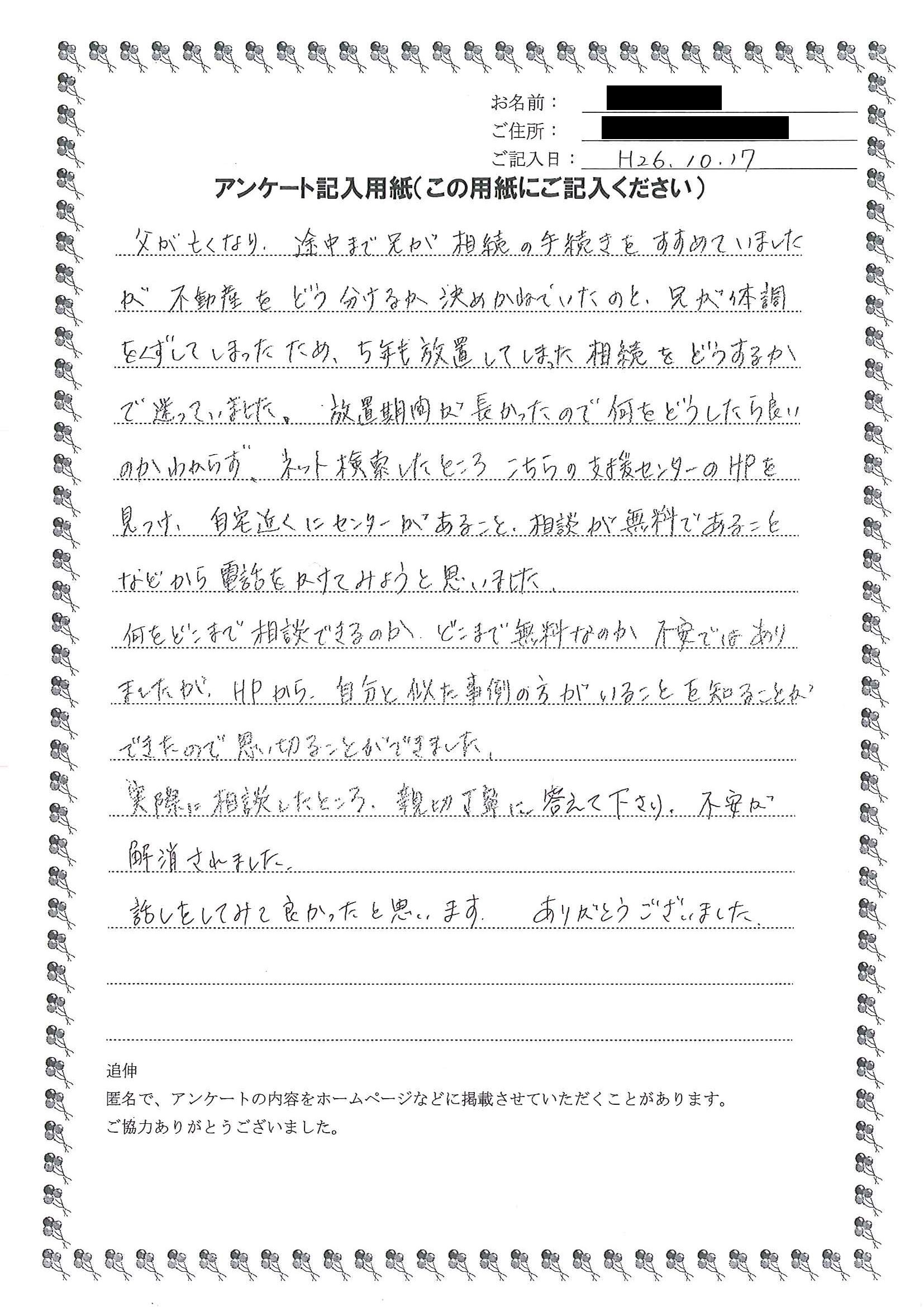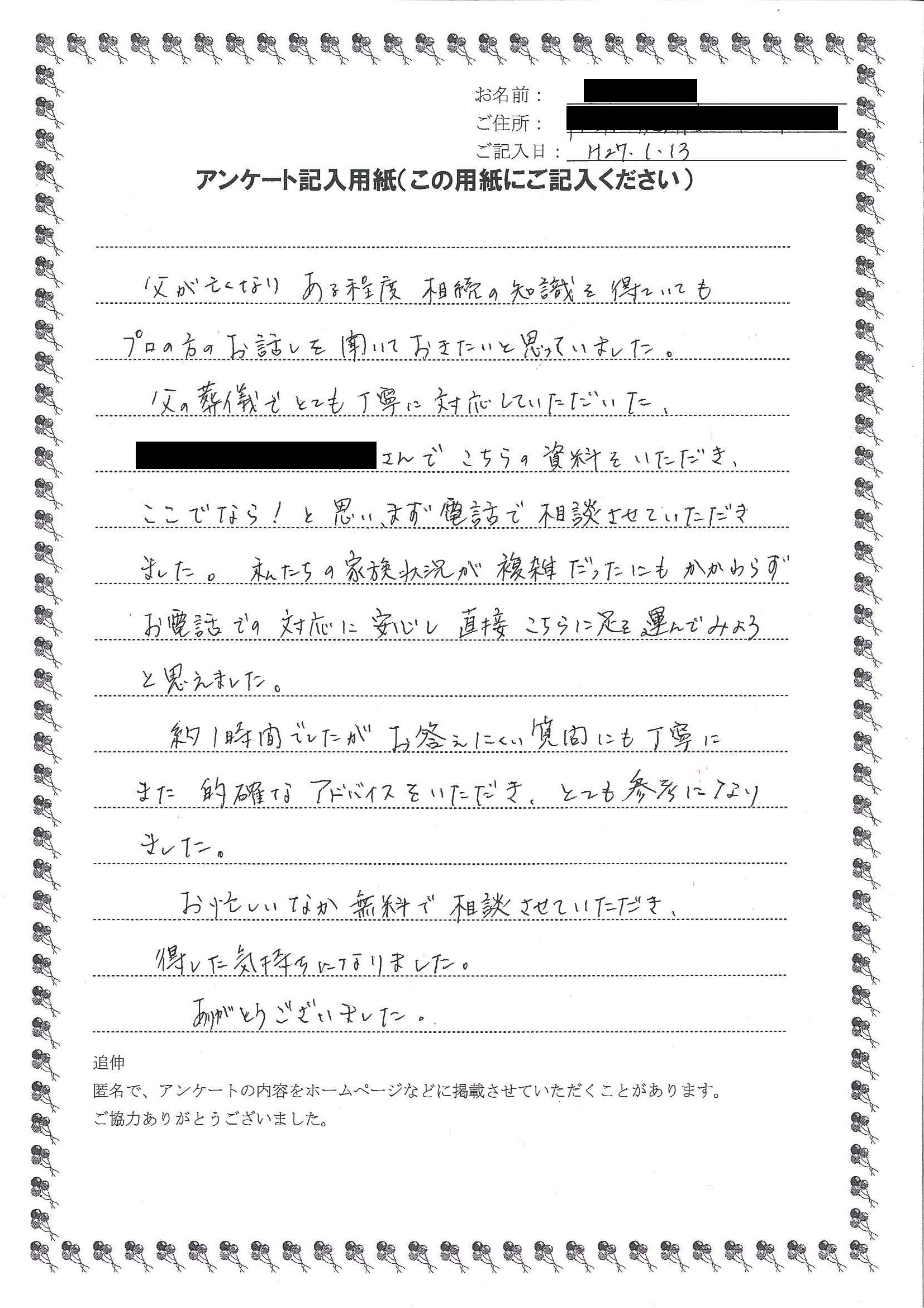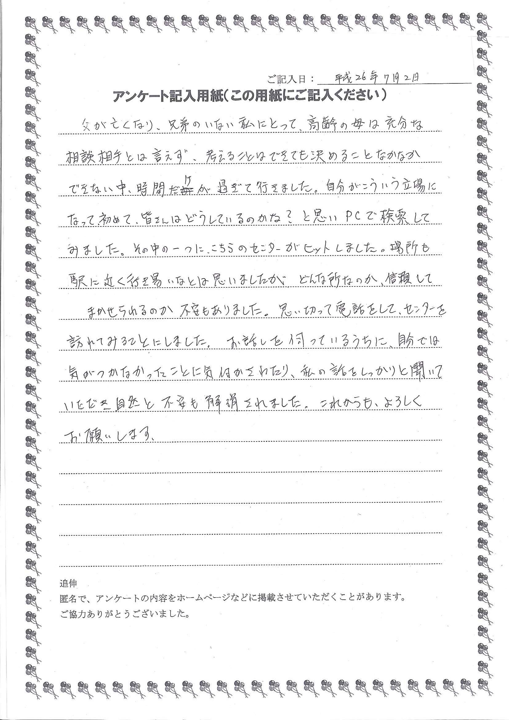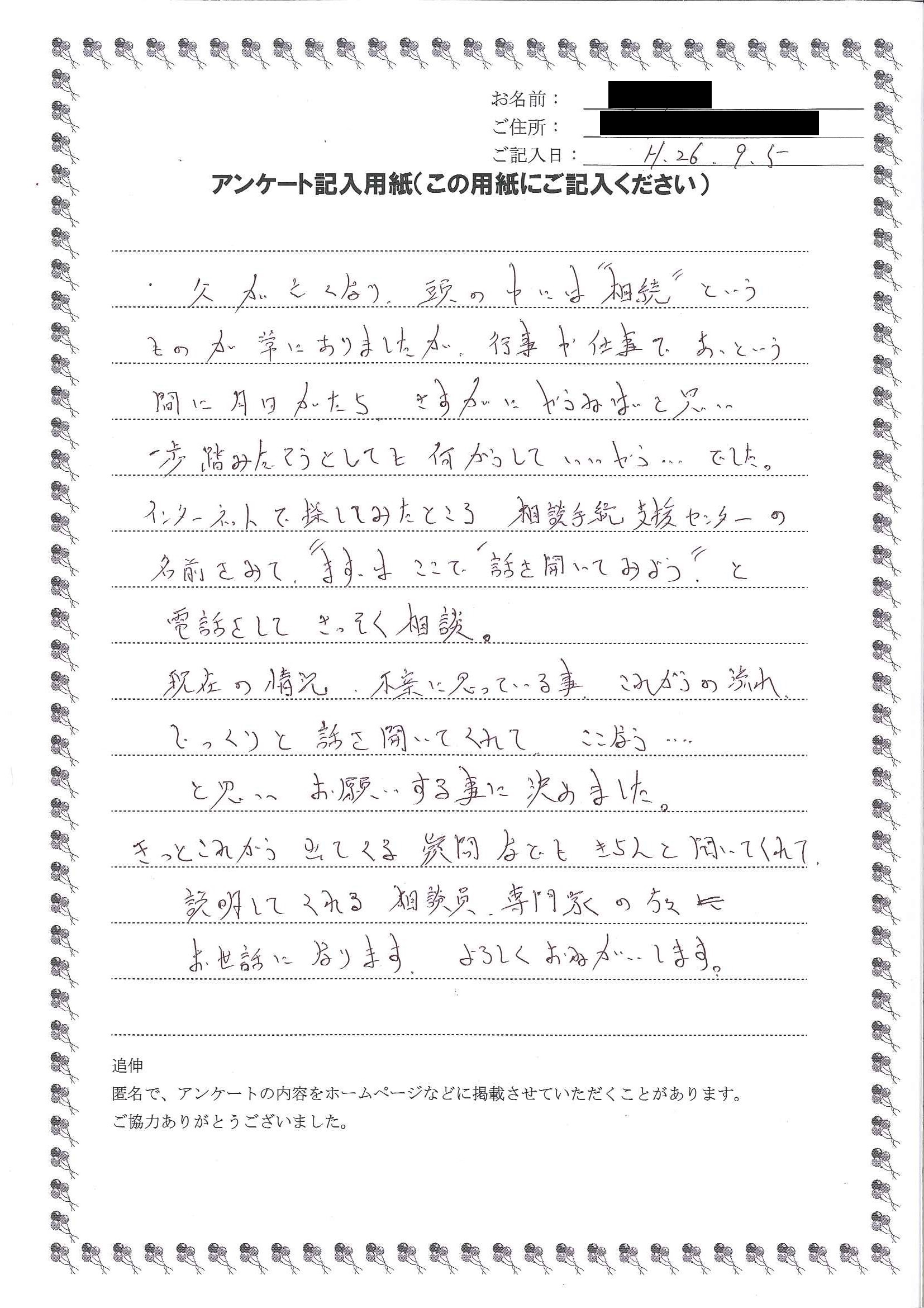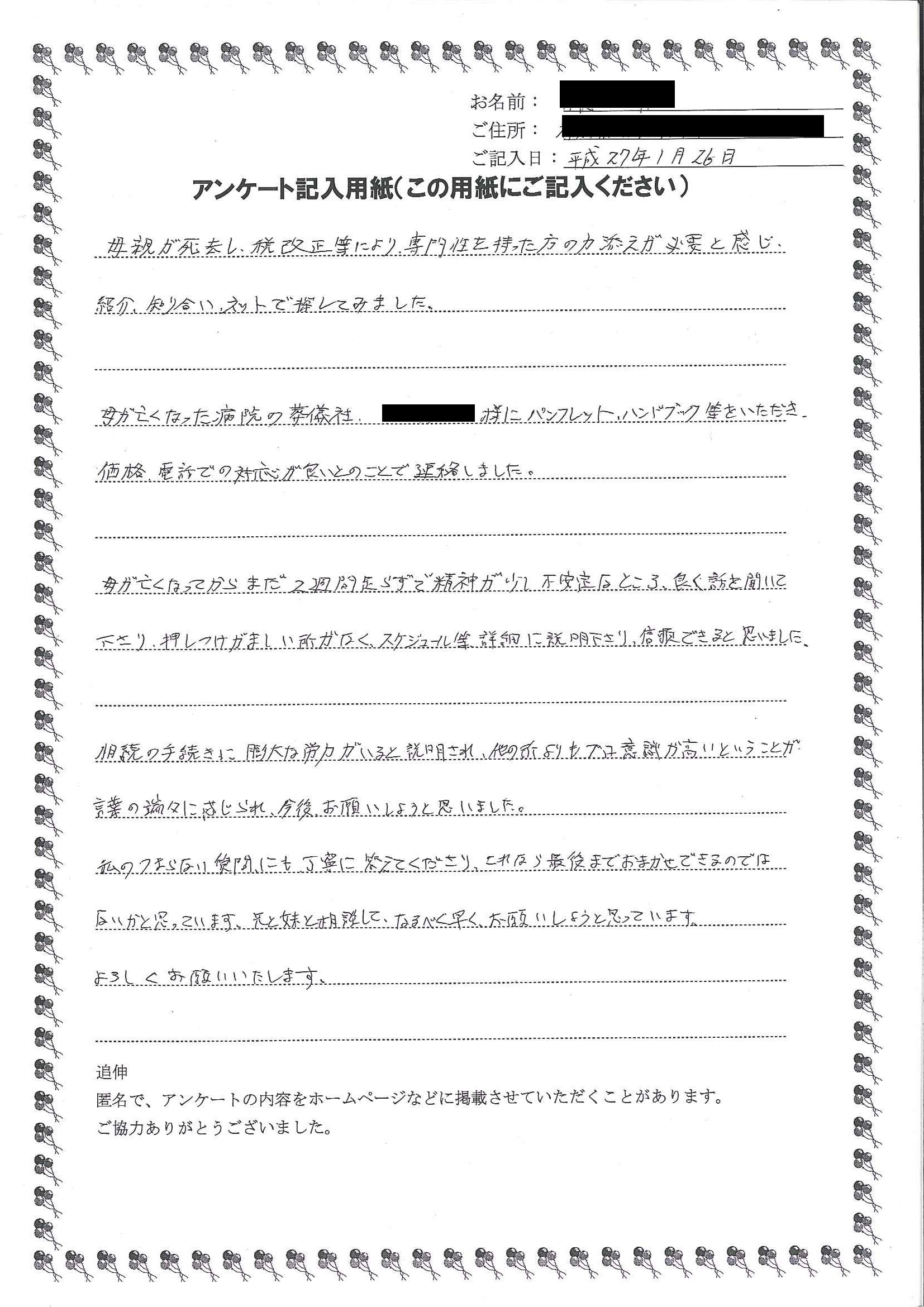 兄と妹と相談して、なるべく早くお願いしようと思っています。