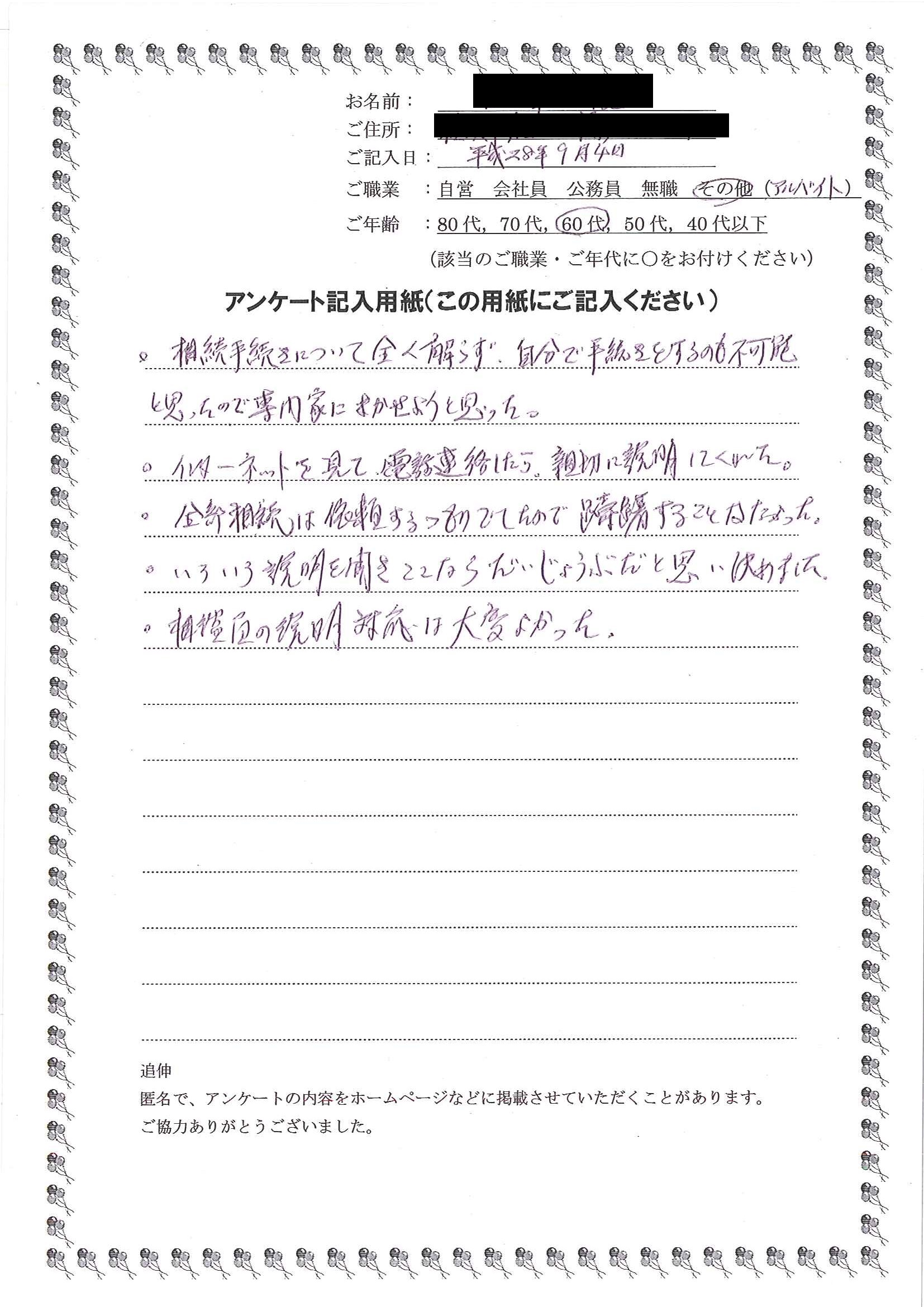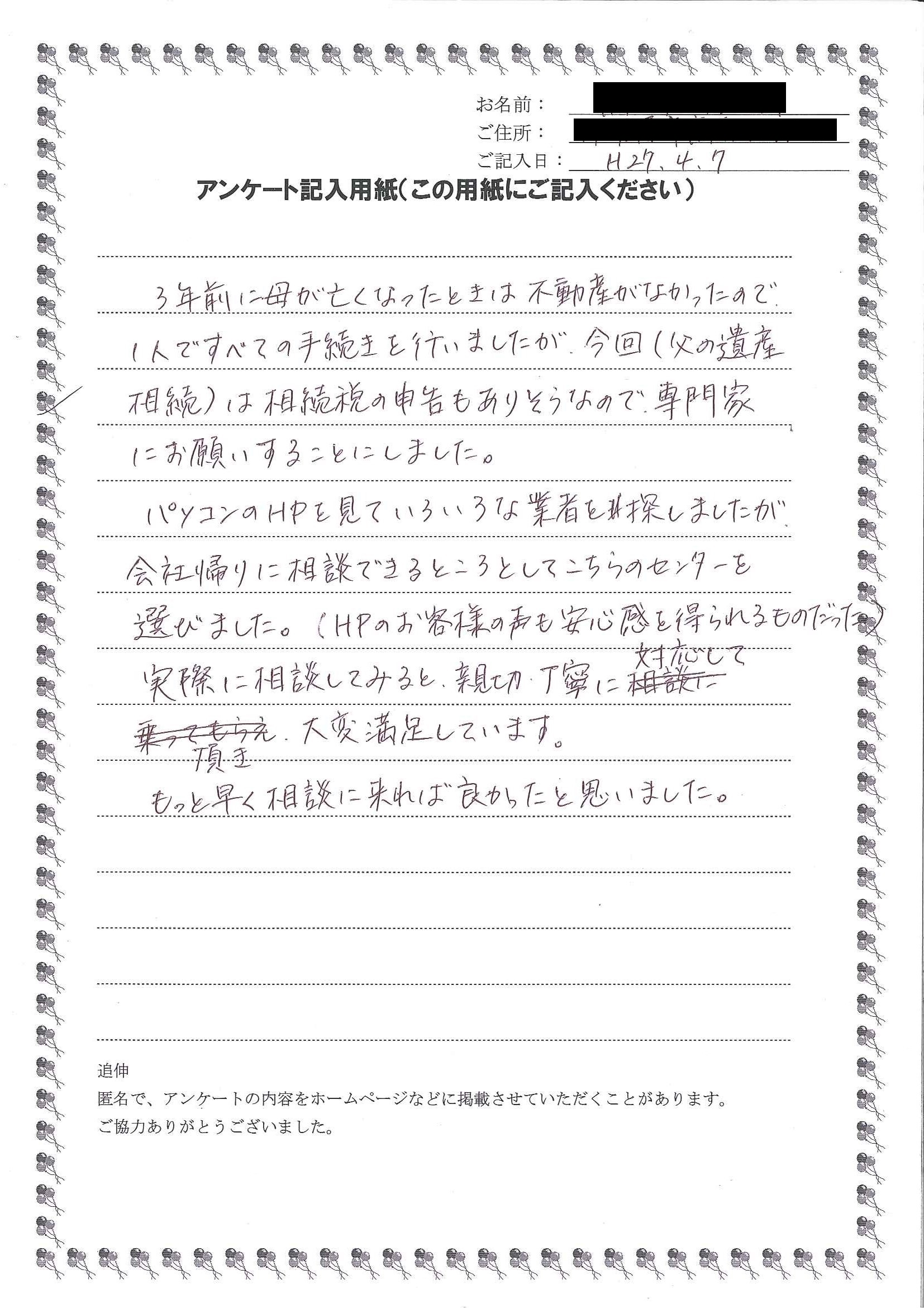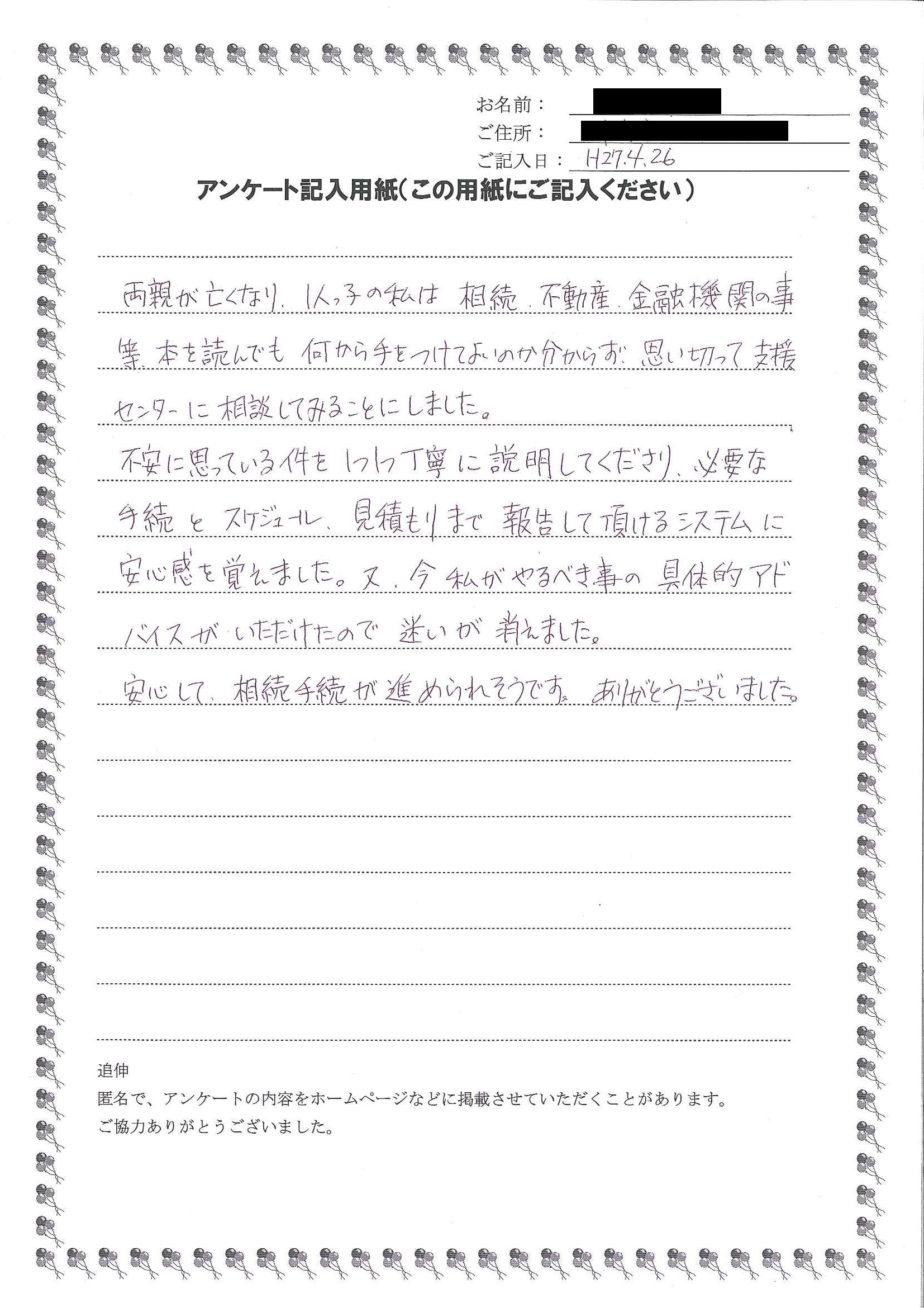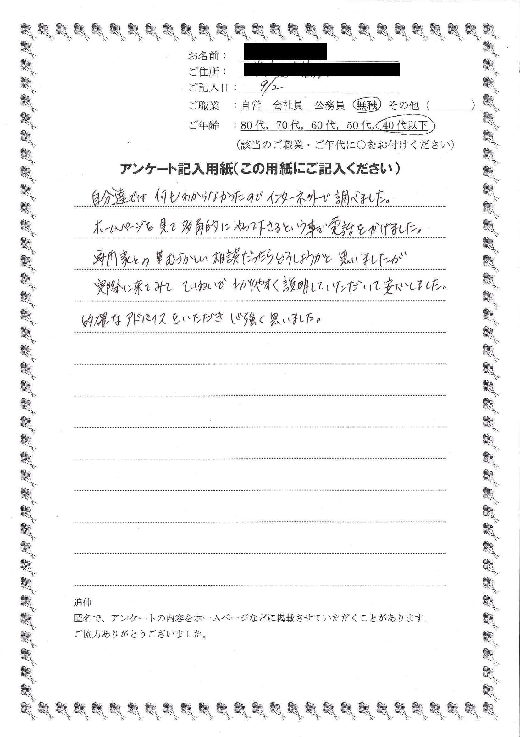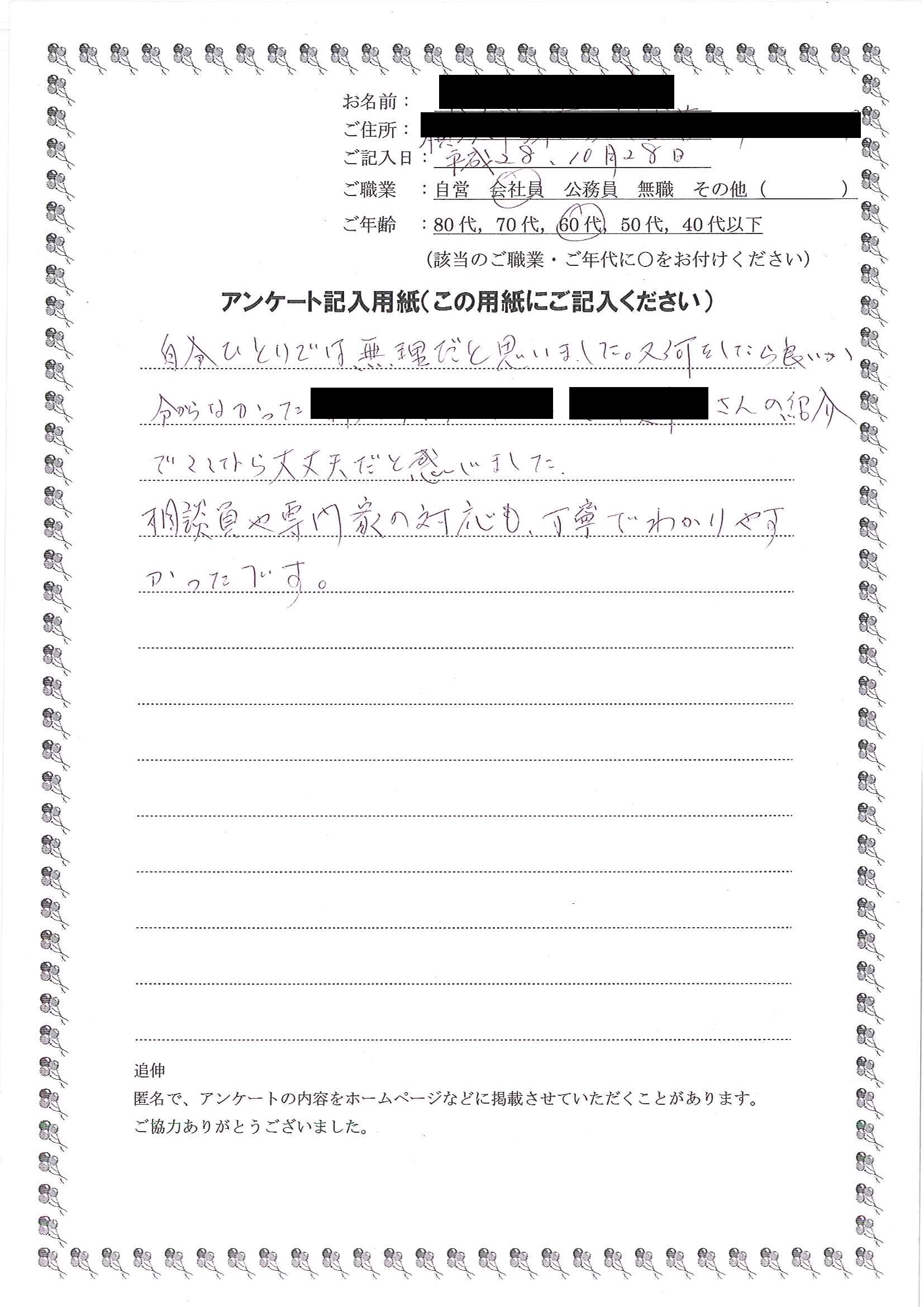 HOME > 無料相談者からいただいた声 > 無料相談者からいただいた声の24