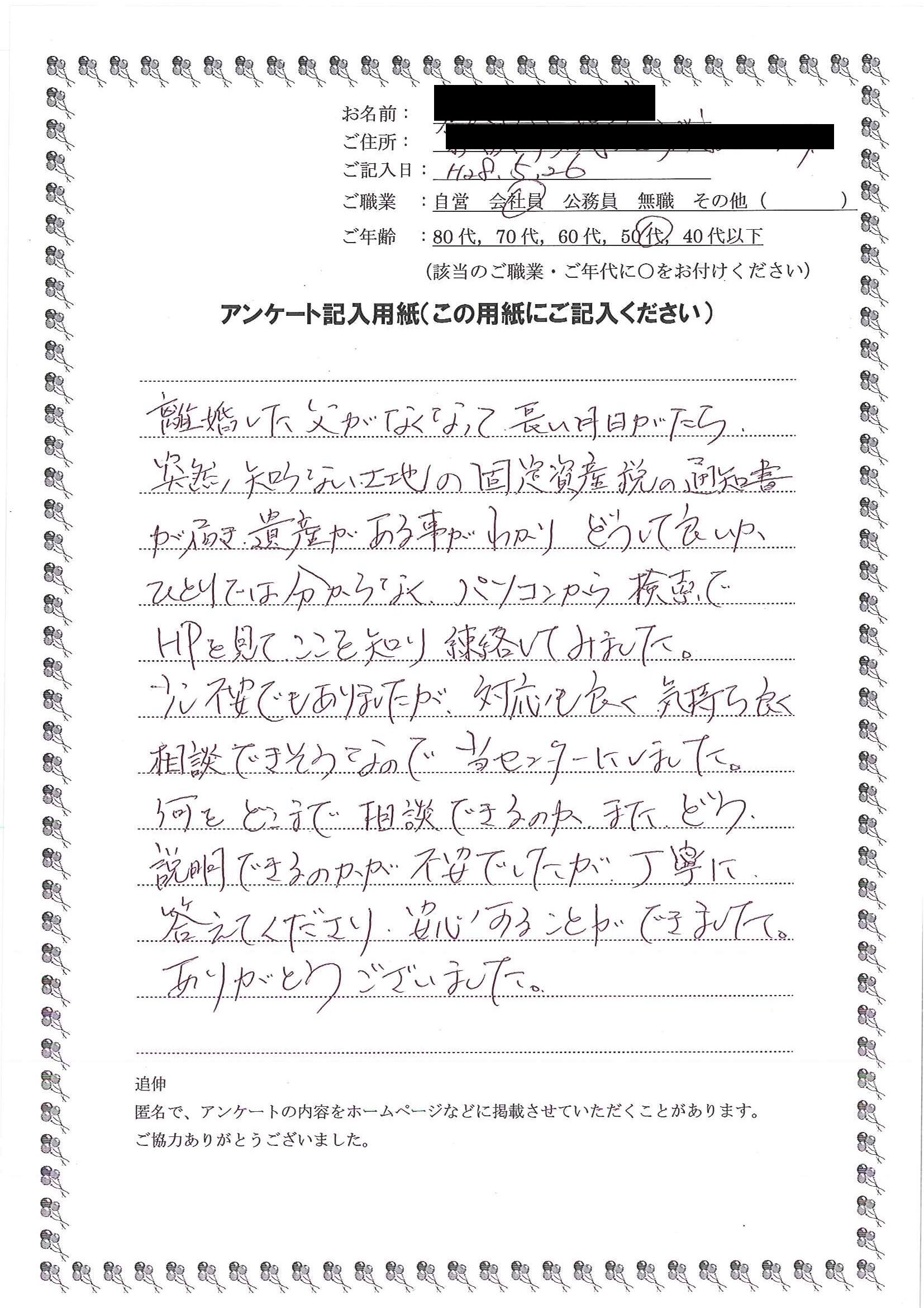 川村 久美子さま(仮名)名古屋市港区在住 50代女性 無職