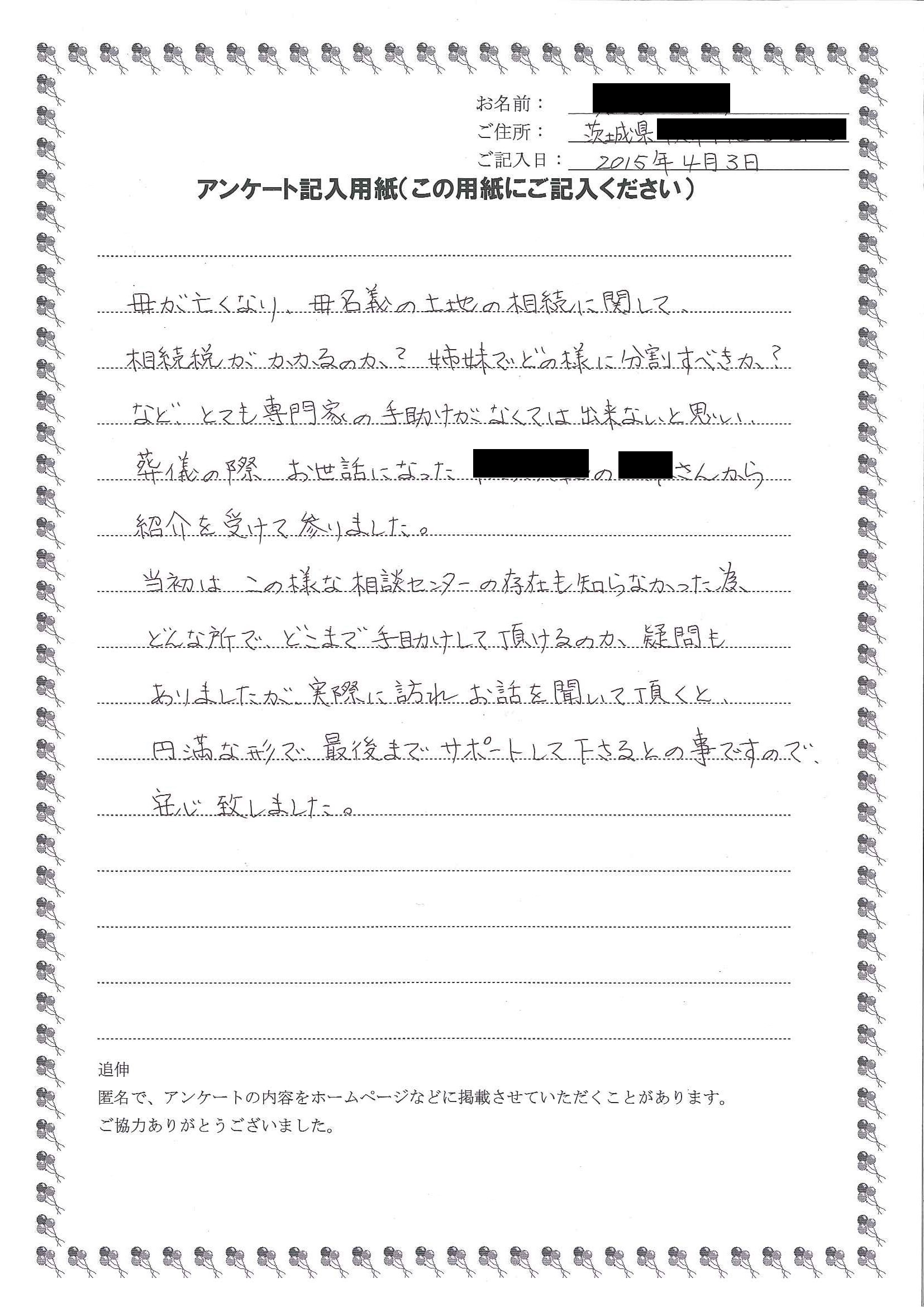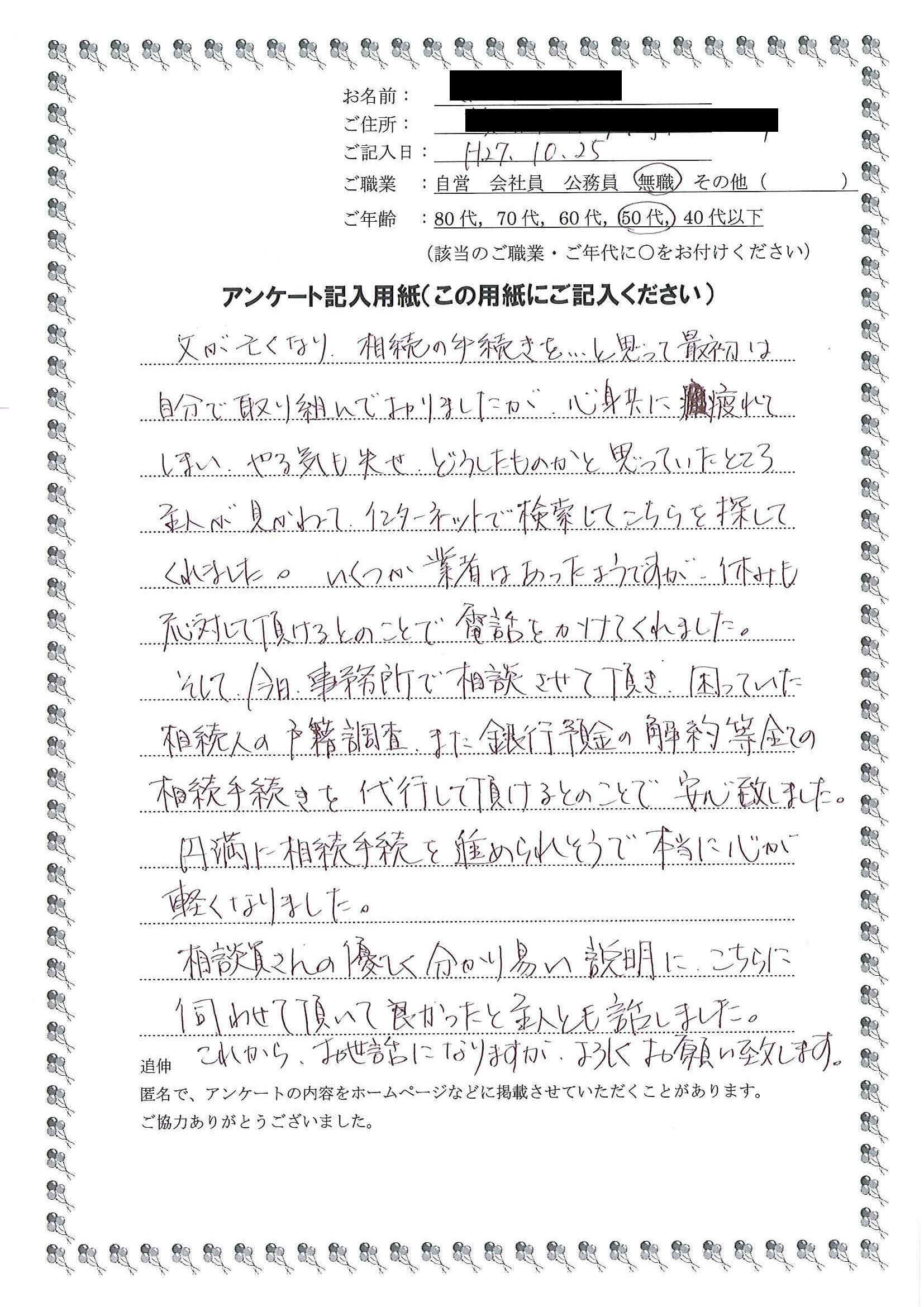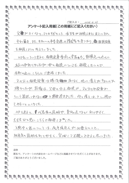 また銀行預金の解約等全ての相続手続きを代行して頂けるとのことで、