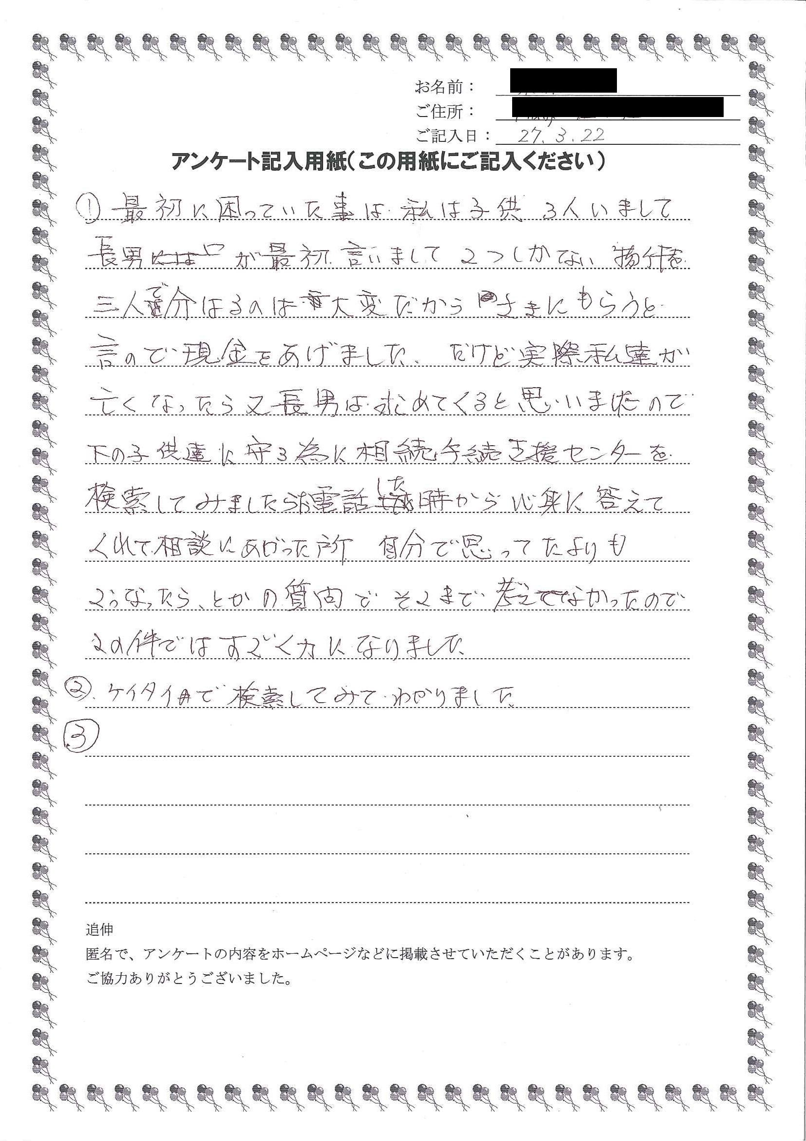 そして今日、事務所で相談させて頂き、困っていた相続人の戸籍調査、