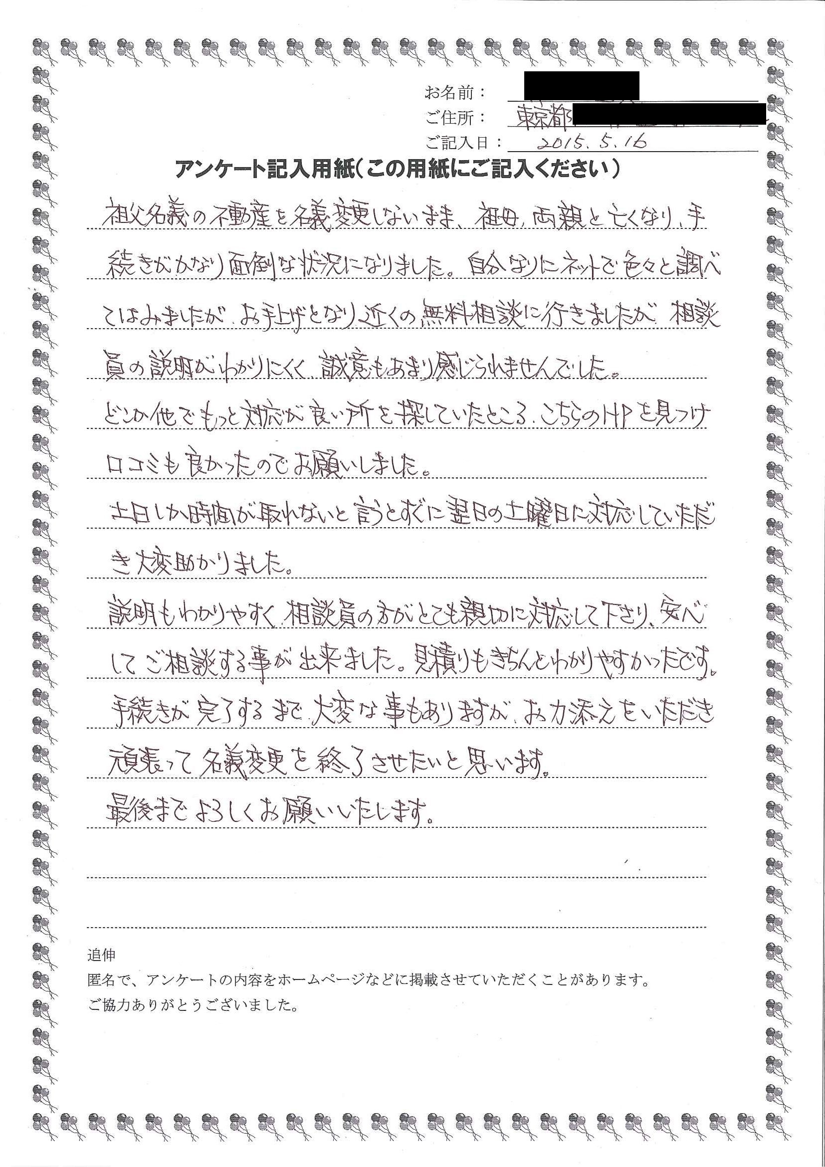 お力添えをいただき頑張って名義変更を終了させたいと思います。