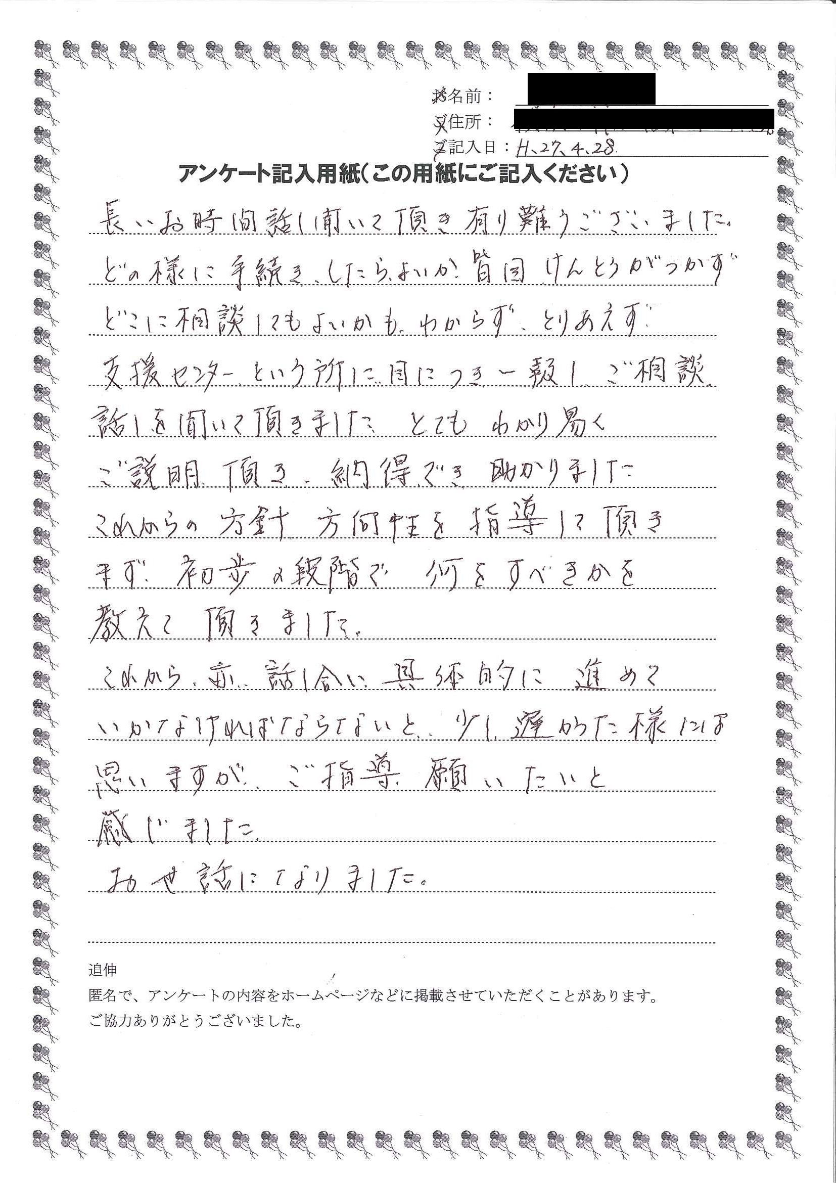 君澤 静香さま(仮名)春日井市在住 40代男性 無職