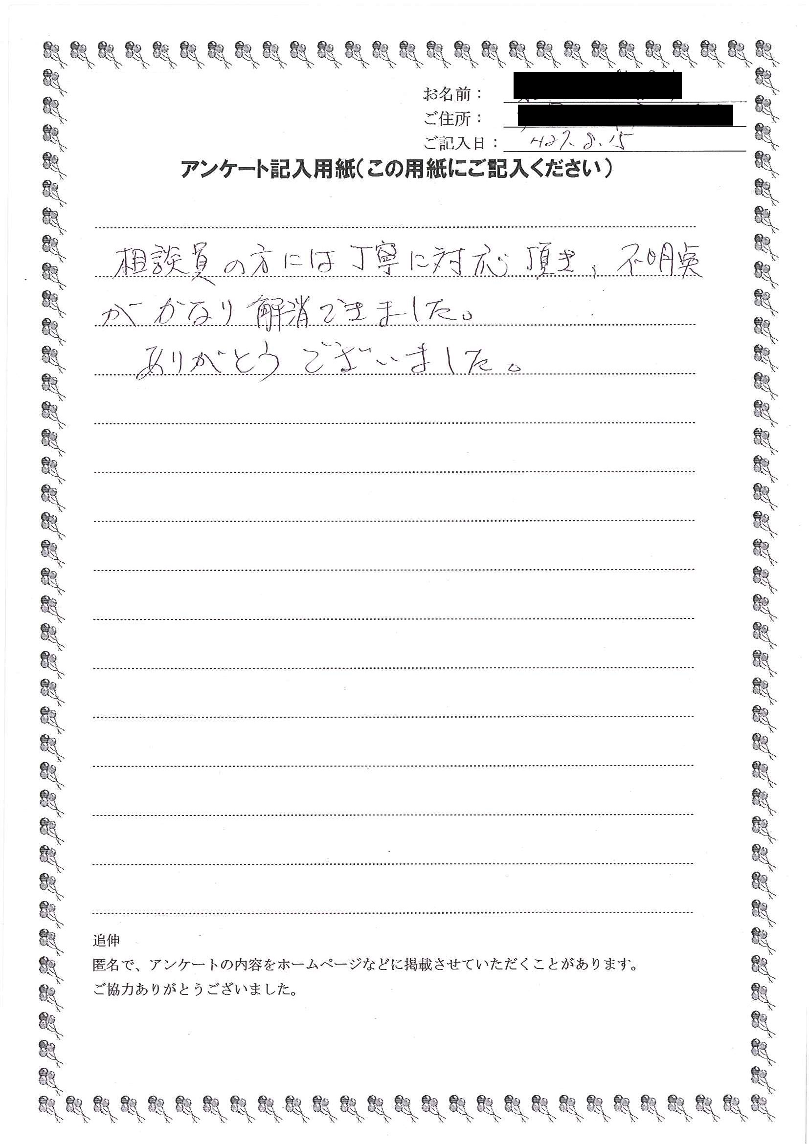 ご相談をして頂け、やはりプロの方に相談してよかったと思いました。