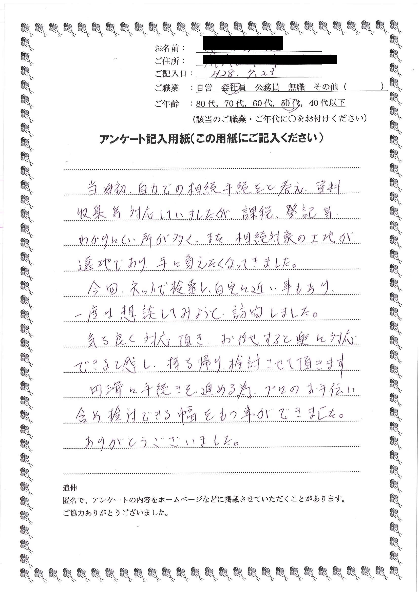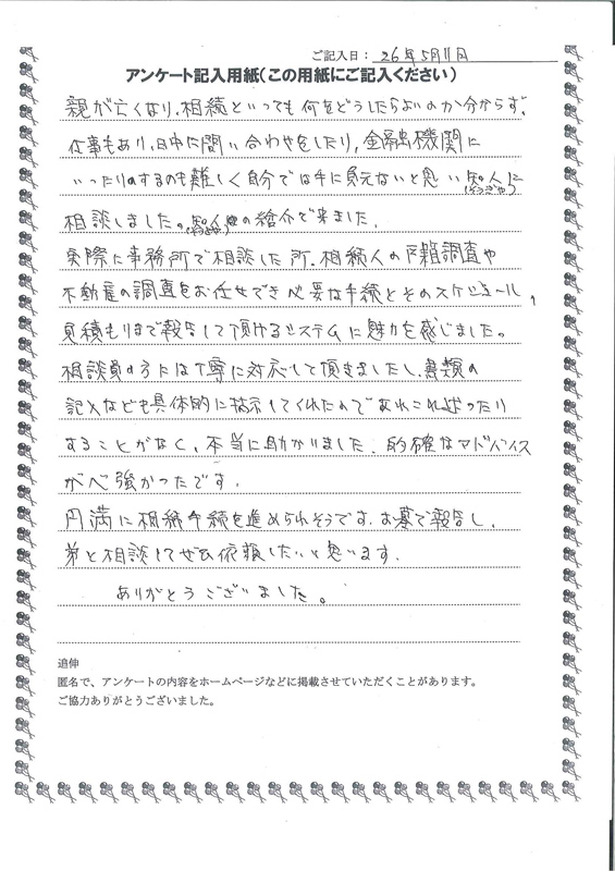 相続をどのようにしたらよいのかと途方にくれていました。