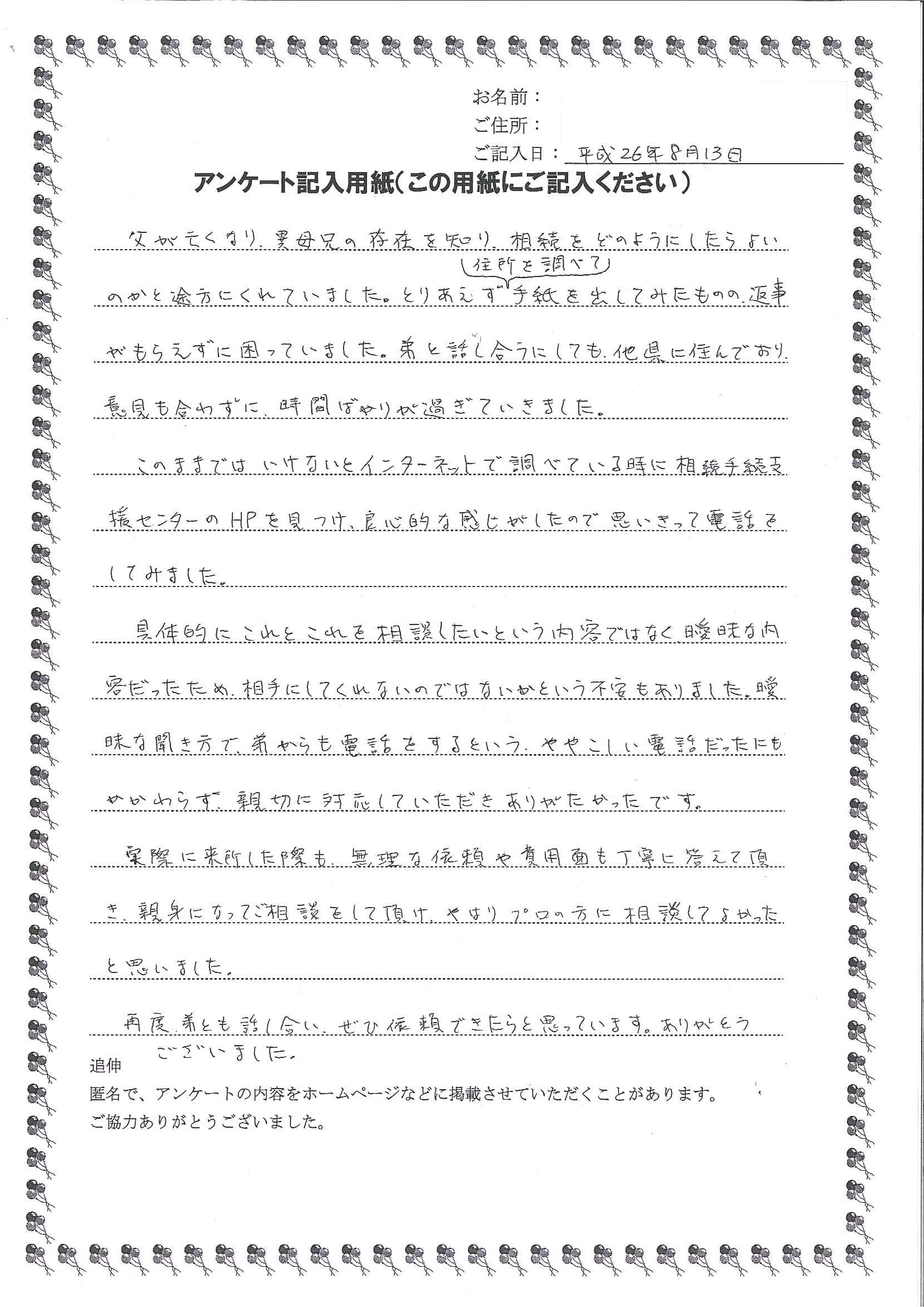 再度、弟とも話し合い、ぜひ依頼できたらと思っています。
