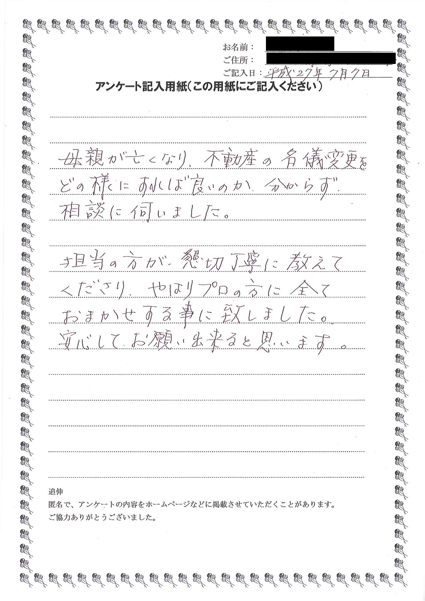 結果として手続をおまかせいただければ幸いですが、