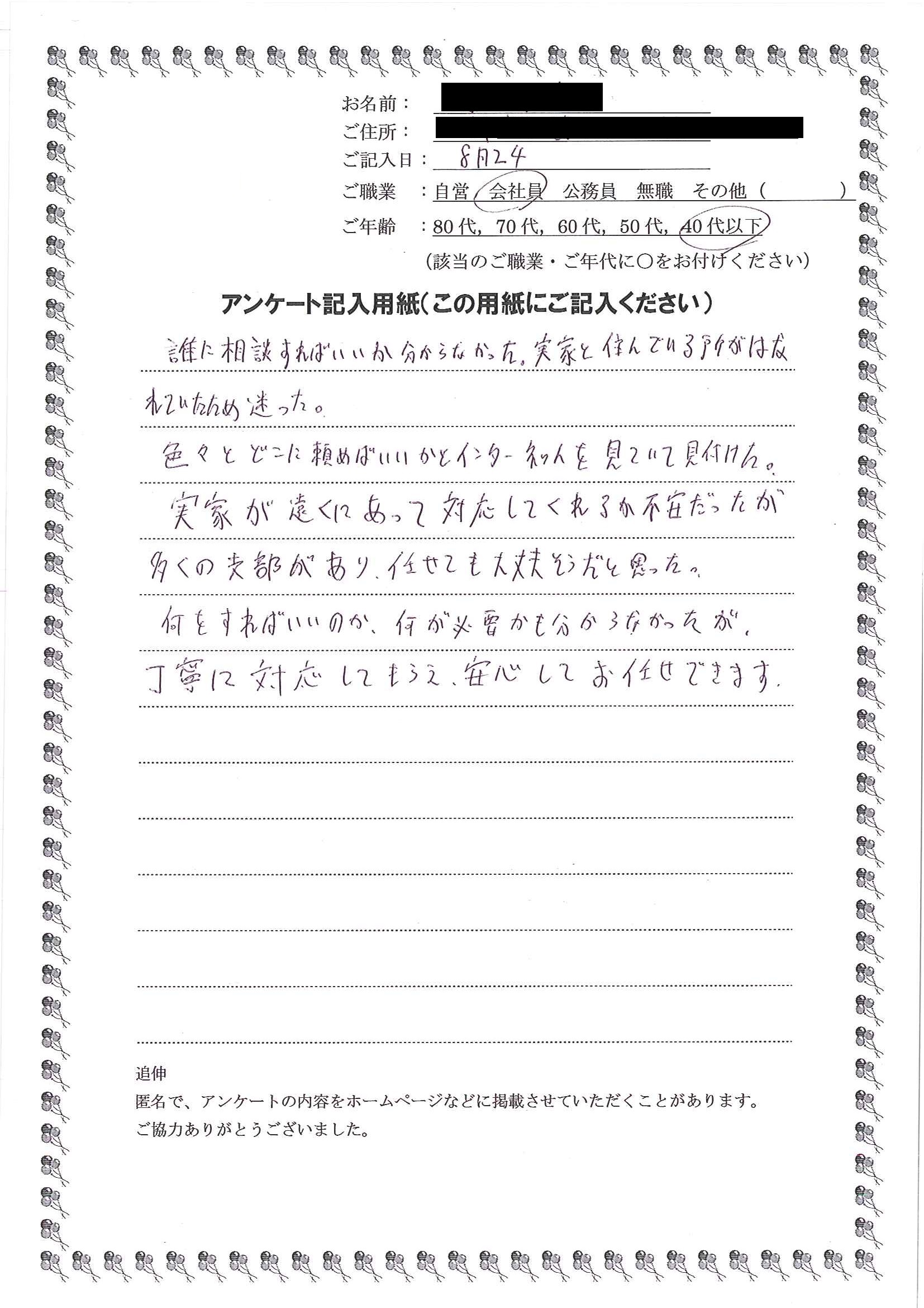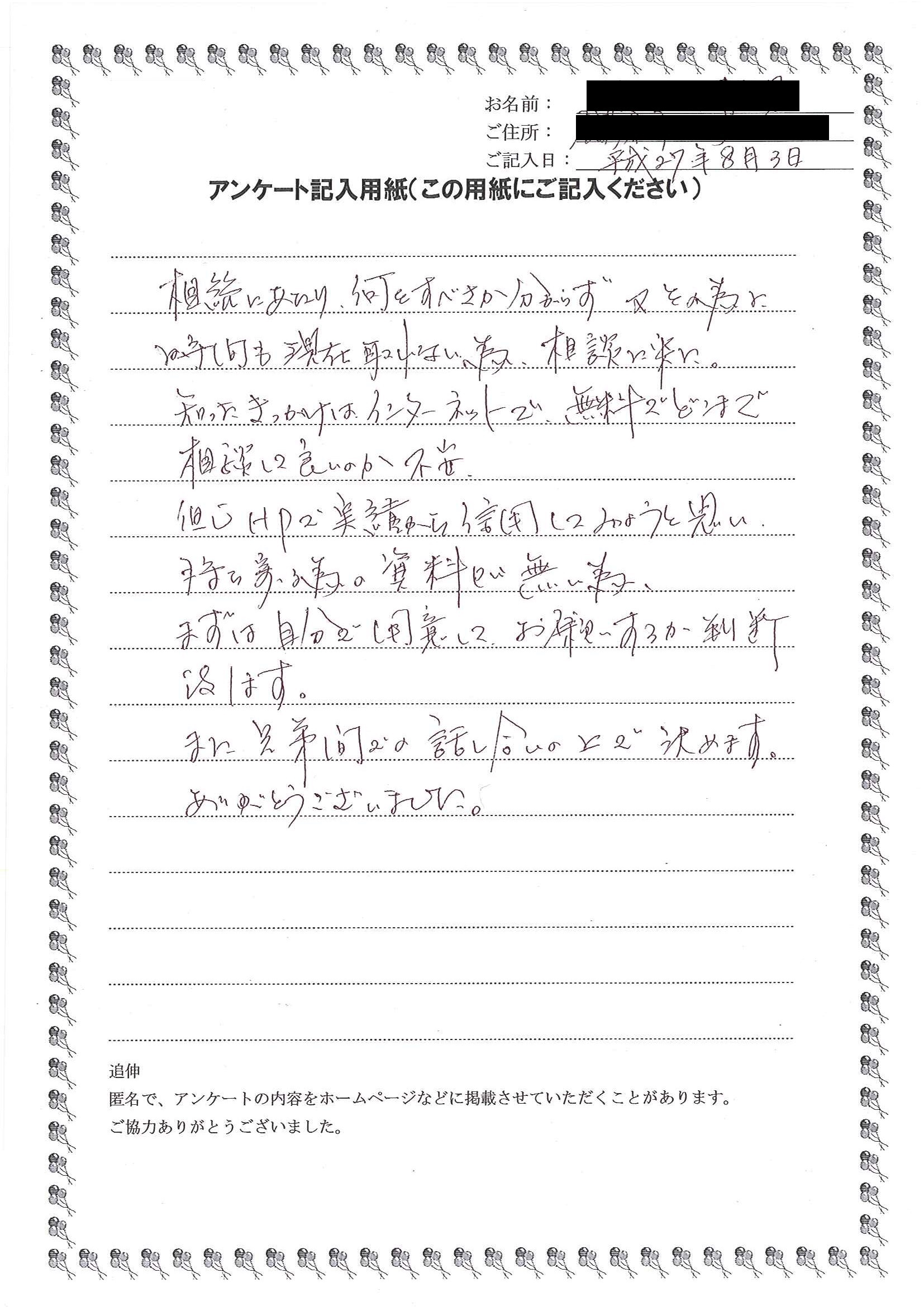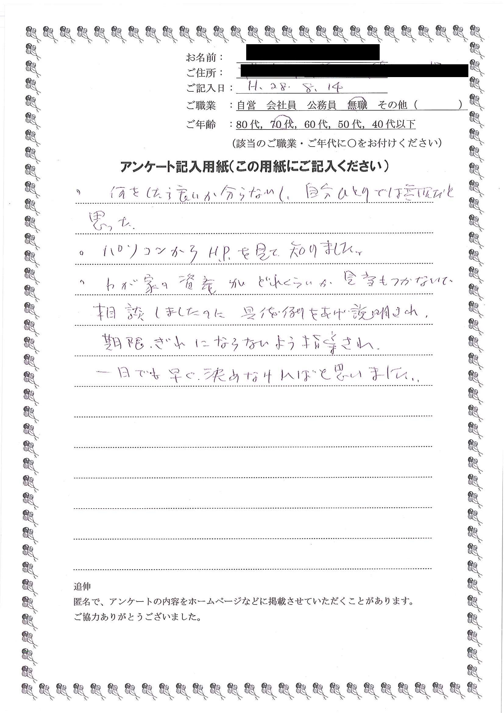 HOME > 無料相談者からいただいた声 > 無料相談者からいただいた声の31