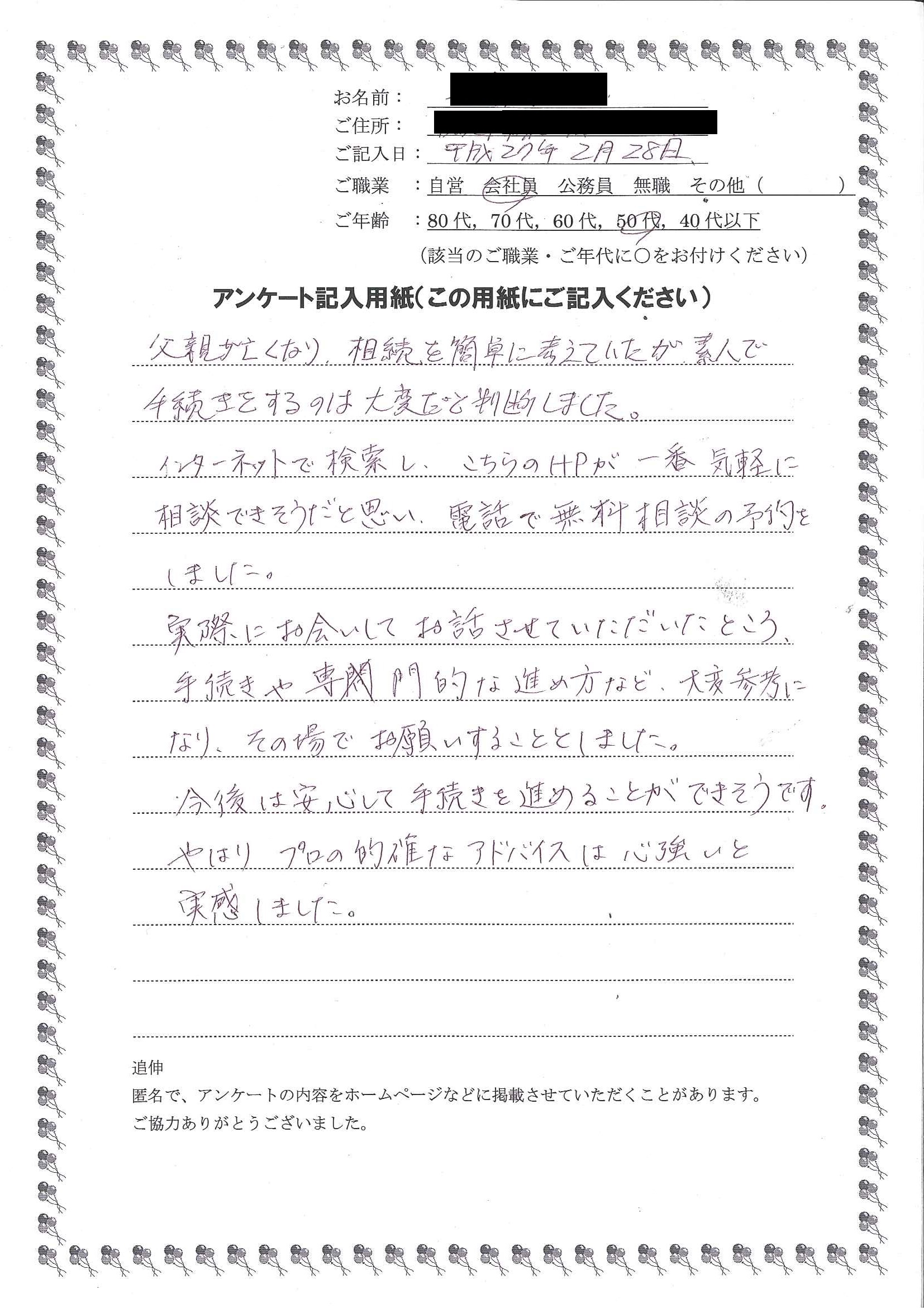 自分は相続人間の調整役に徹する事が良いという事を気付かせて頂きました。