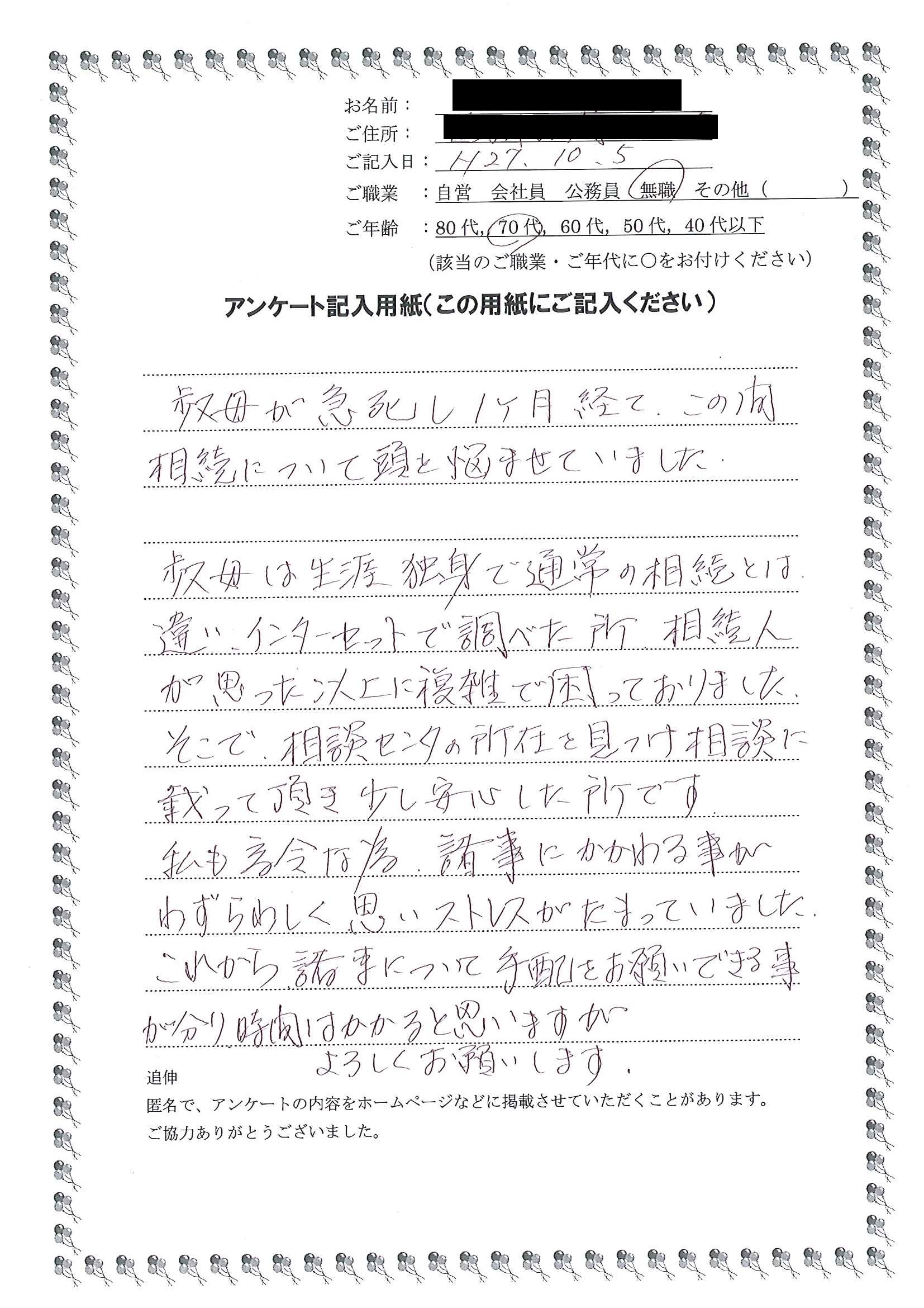 土地、家屋の相続については手続きを自分では手に負えないと感じていたので、