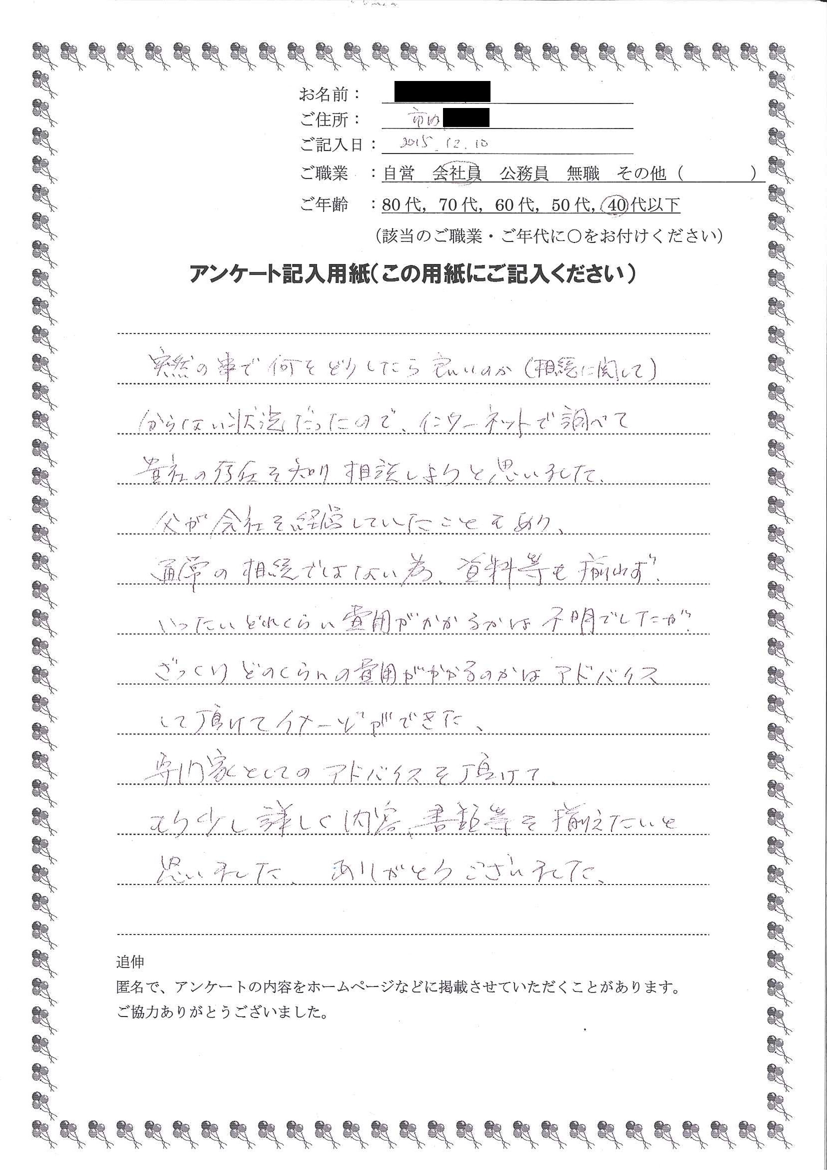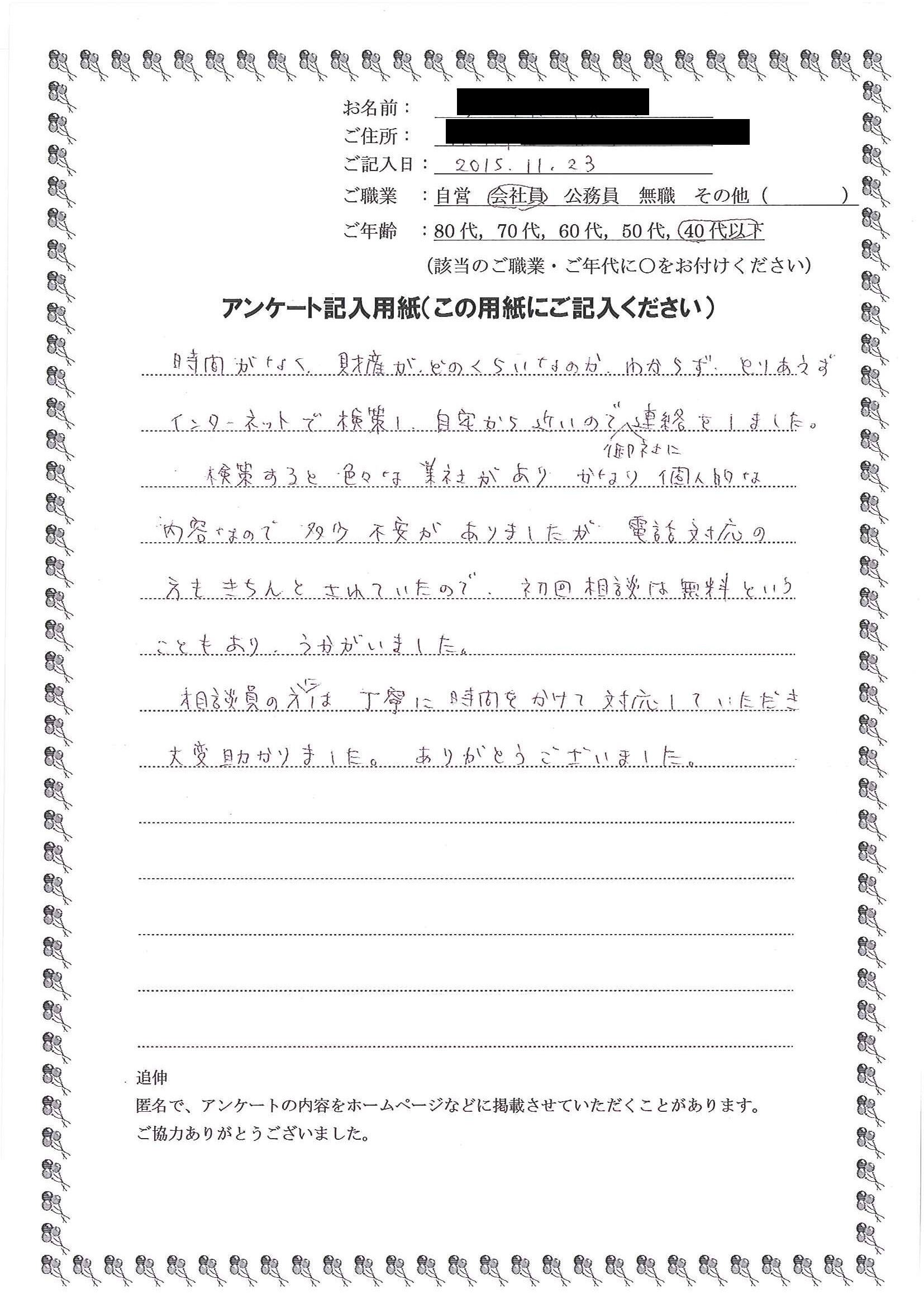 HOME > 無料相談者からいただいた声 > 無料相談者からいただいた声の41