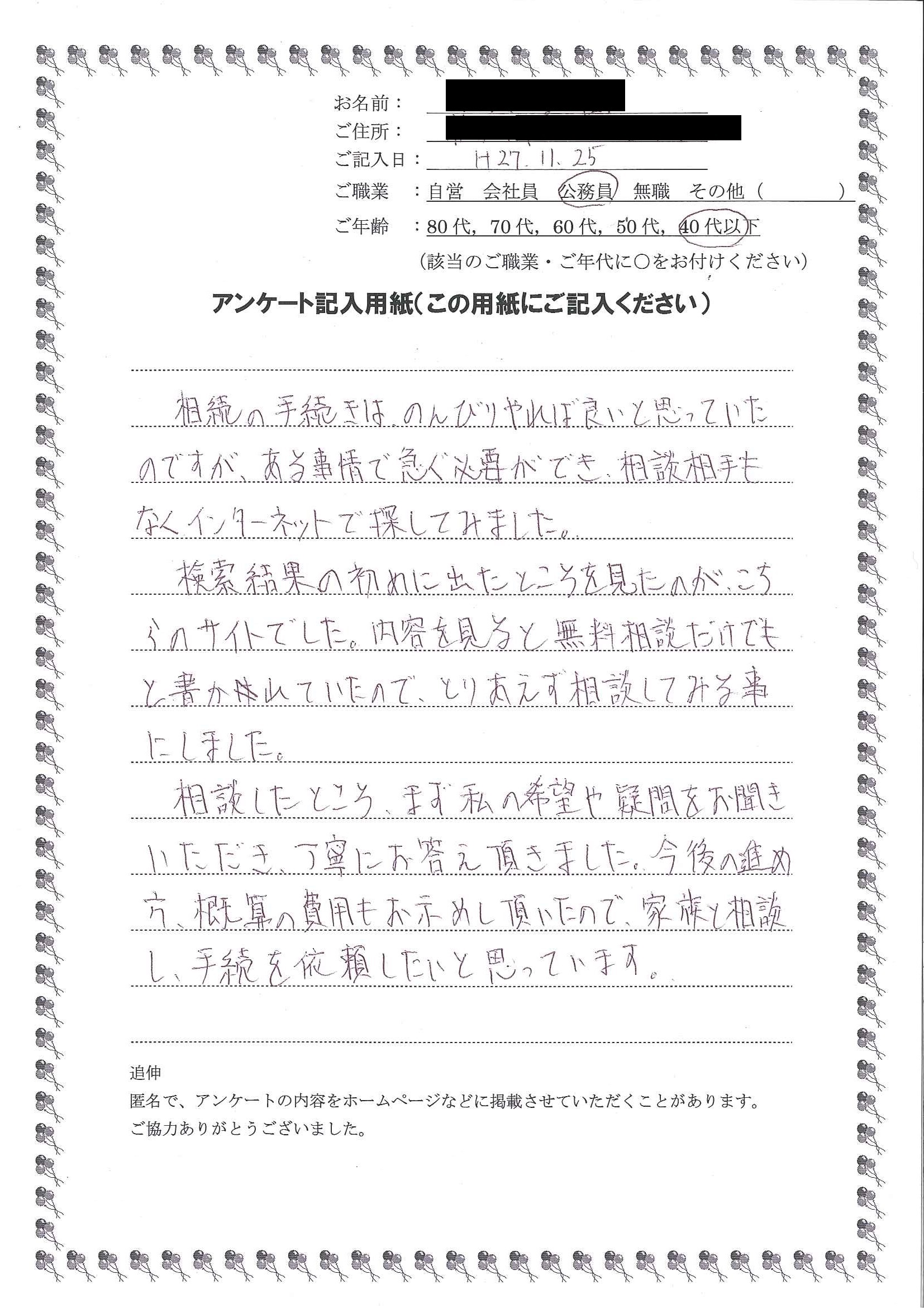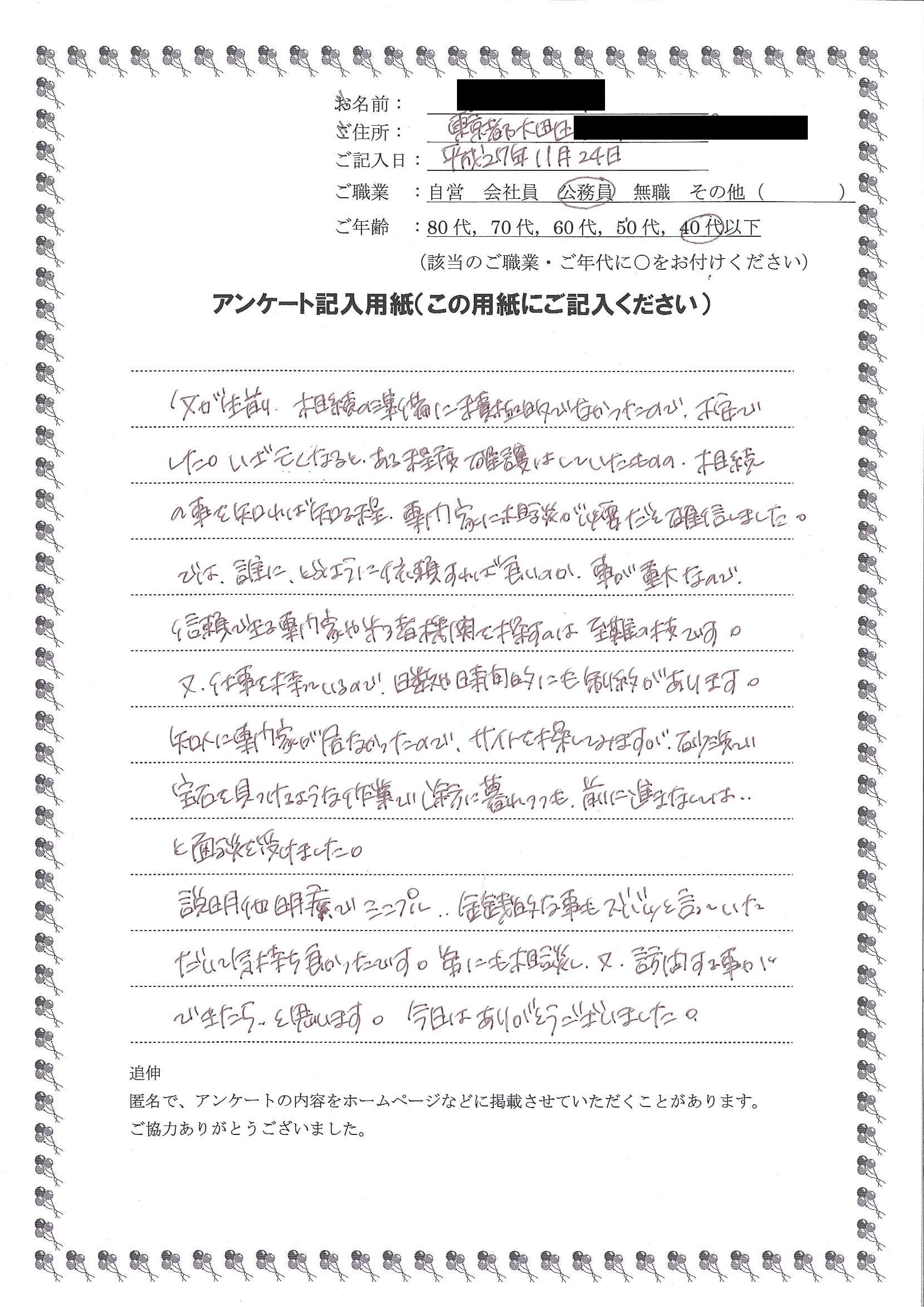 日野 一郎さま(仮名)名古屋市港区在住 40代以下男性 会社員