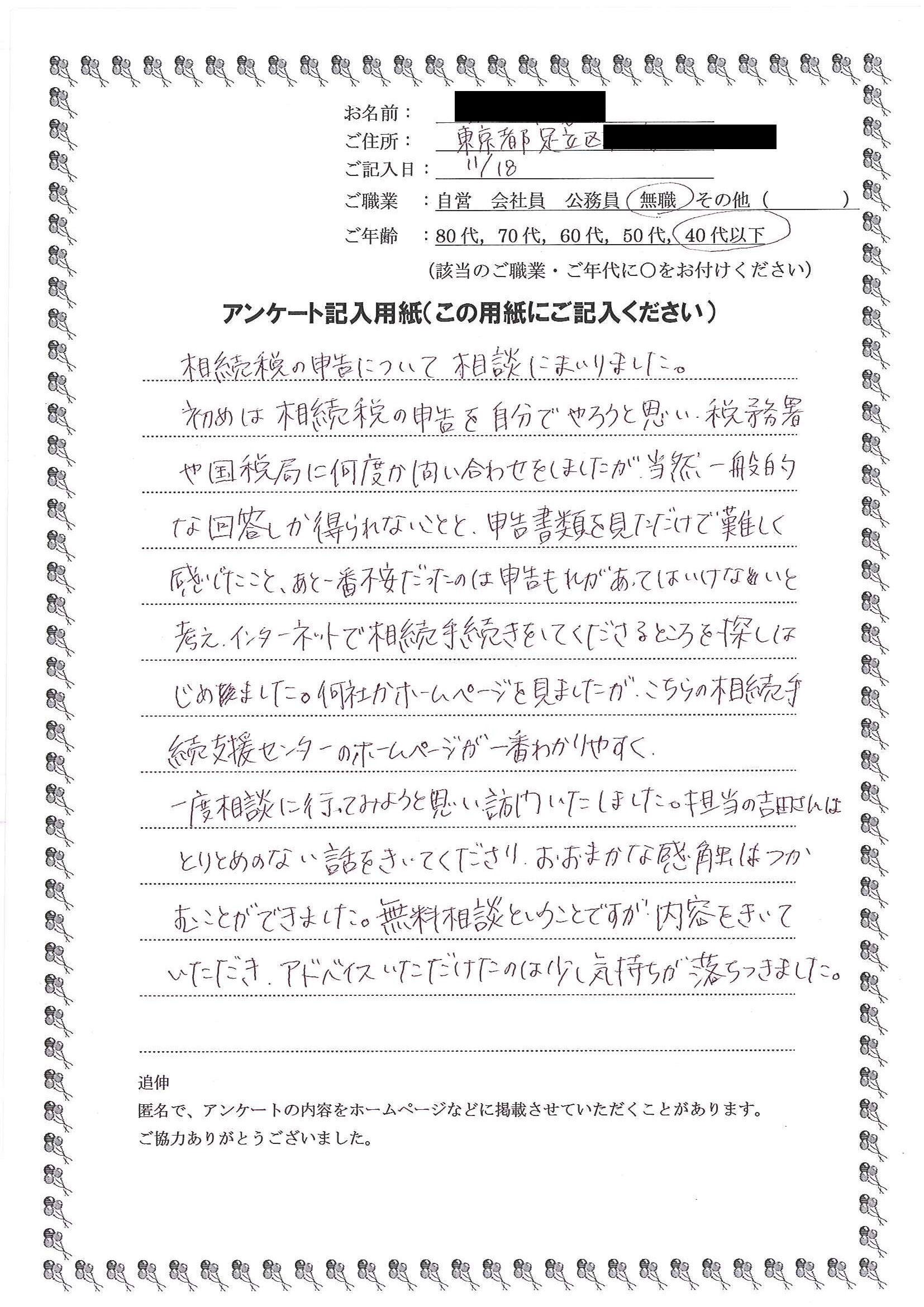 吉本敦子さま(仮名)東京都足立区在住 40代以下女性 無職