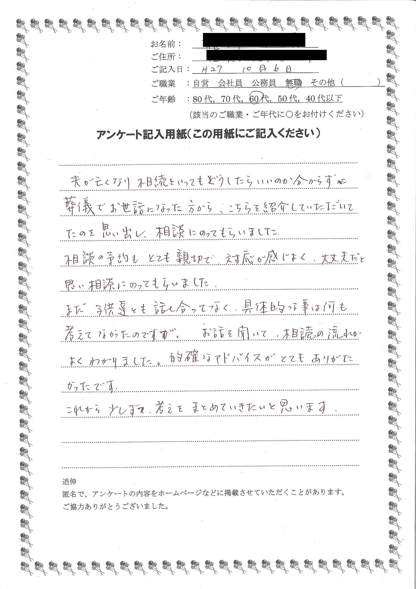 高田麻美さま(仮名)東京都大田区在住 40代以下女性 公務員