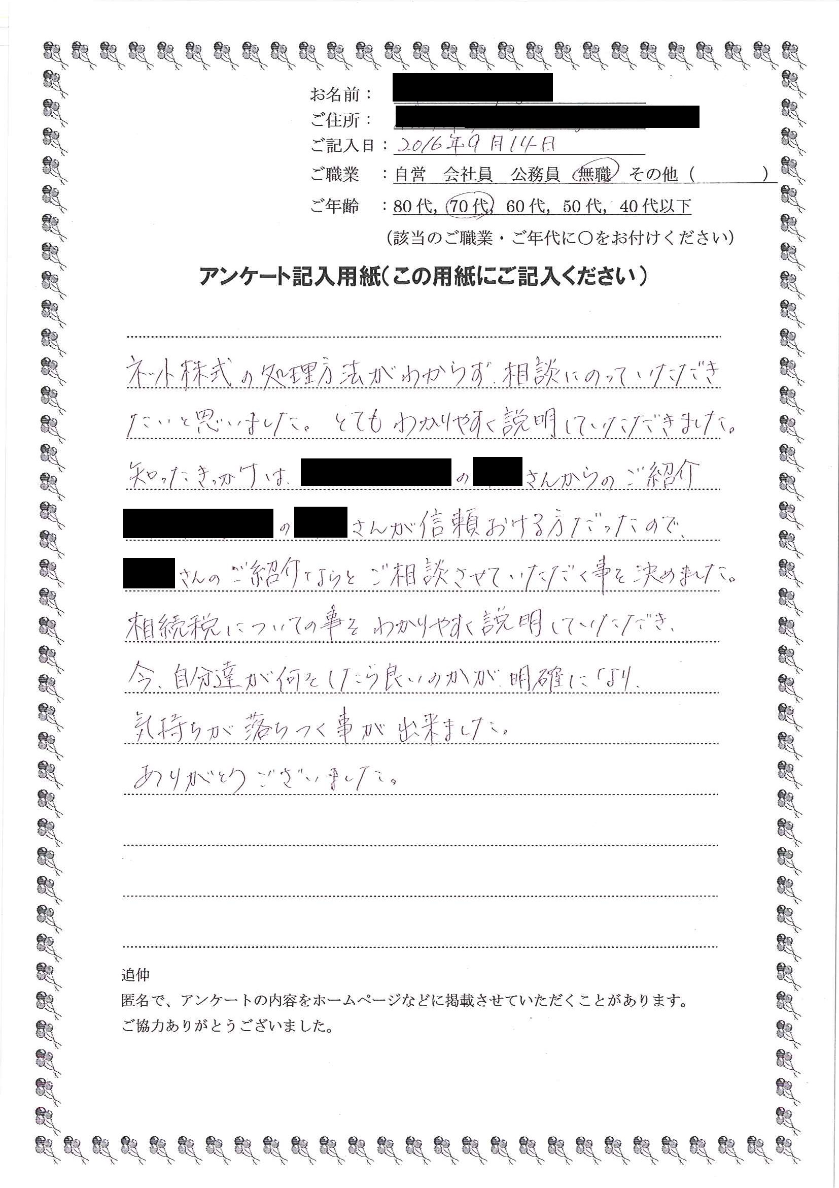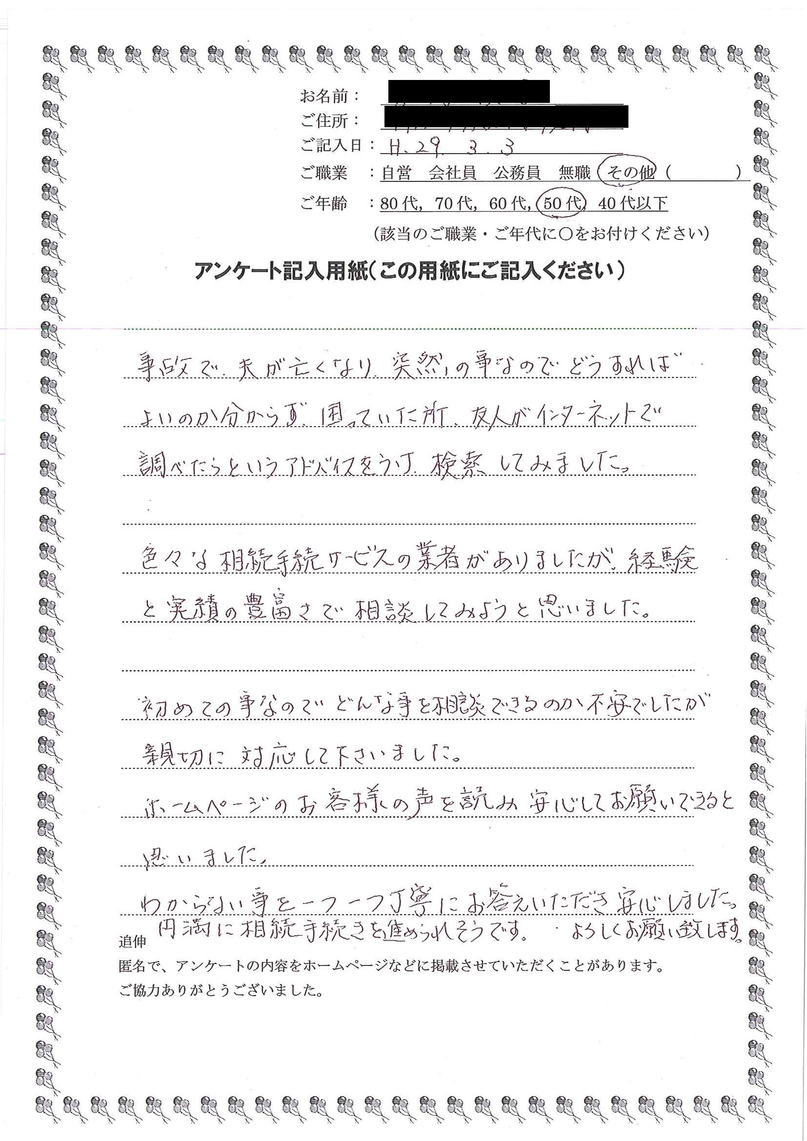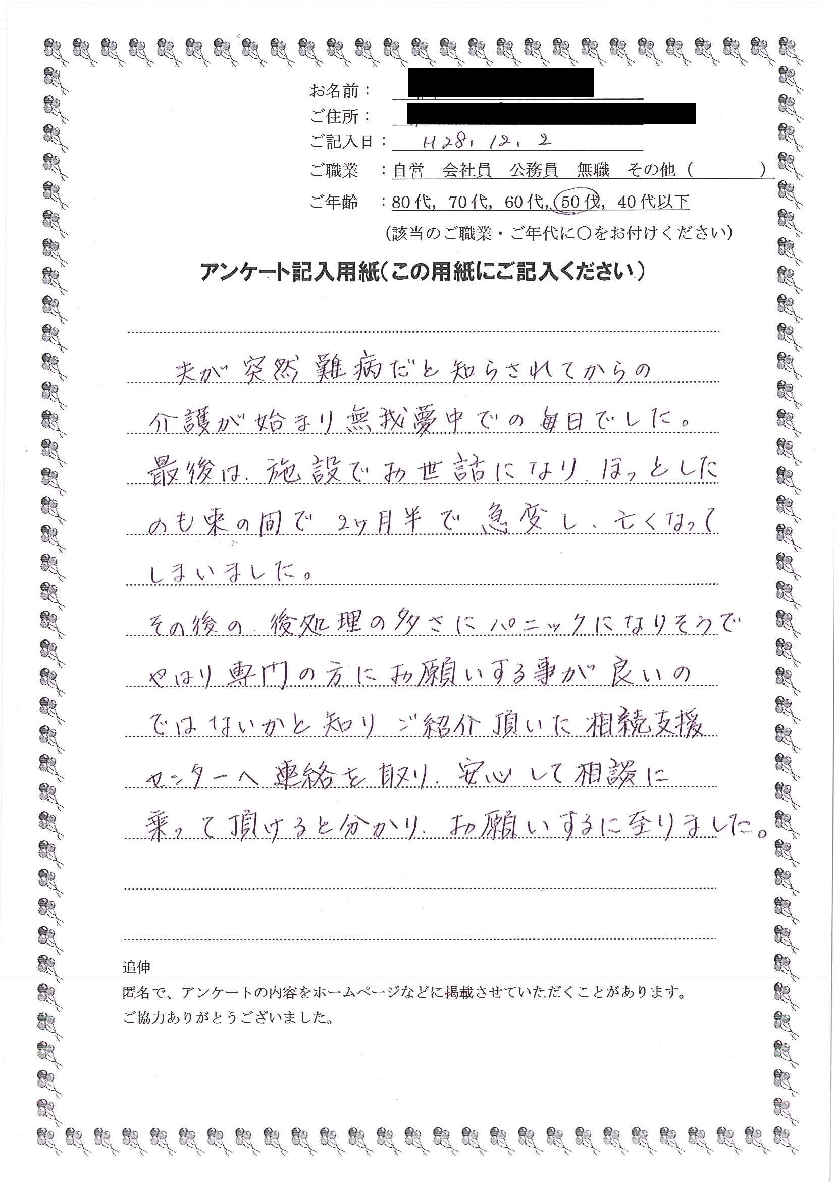 冨田喜美枝さま(仮名)北名古屋市在住 50代女性 その他