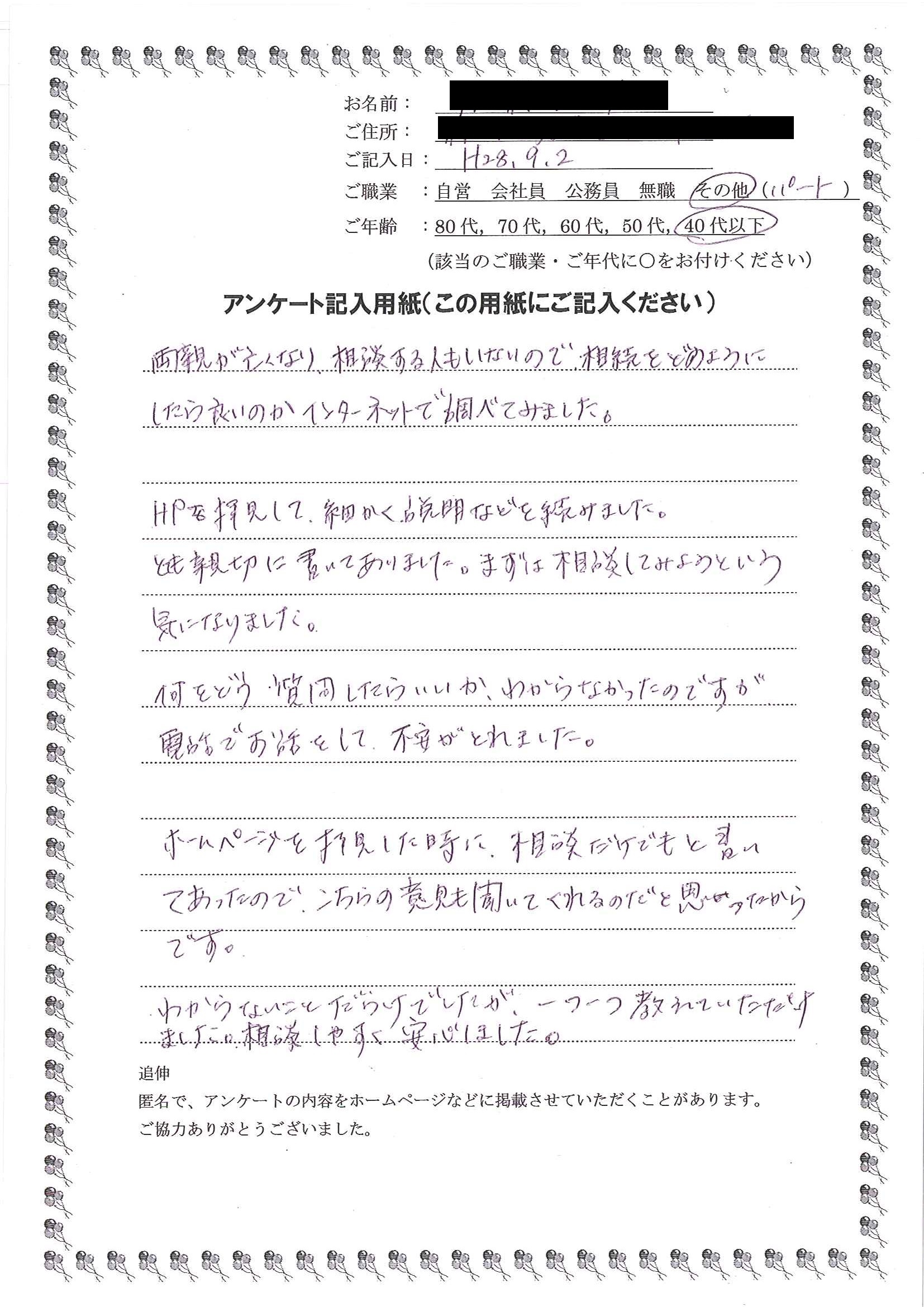 和田理沙さま(仮名)名古屋市港区在住 40代以下女性 その他