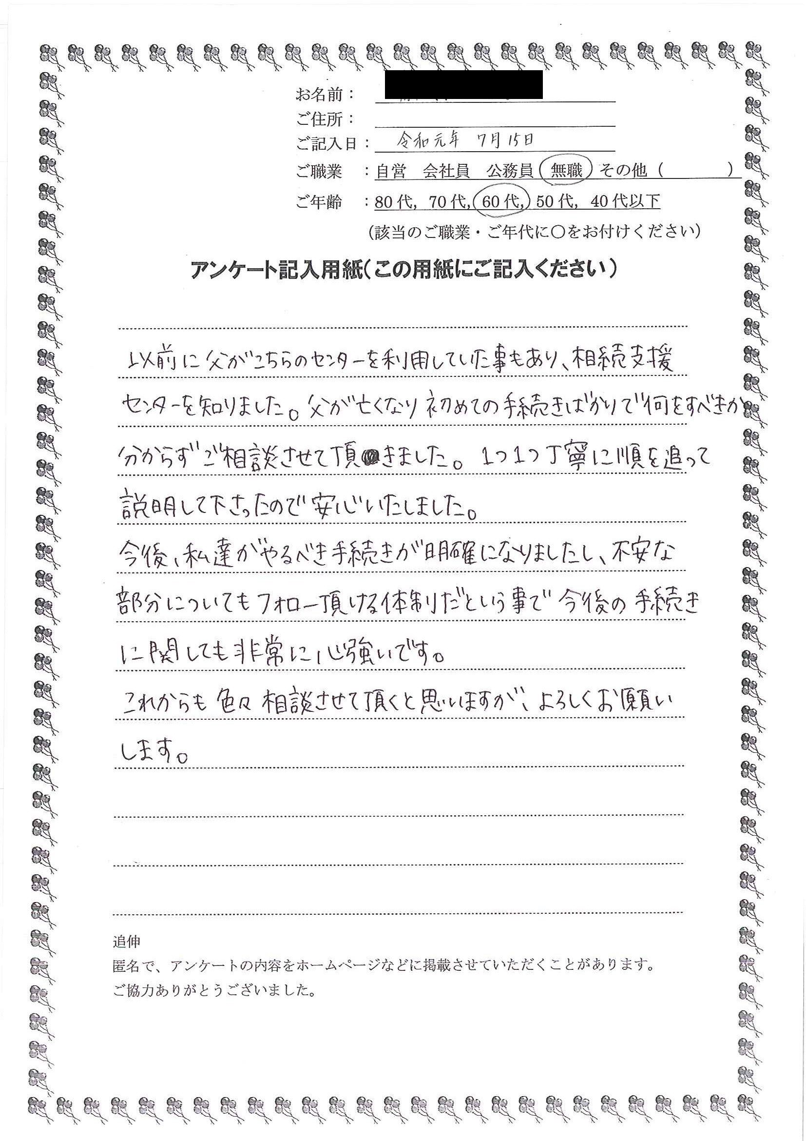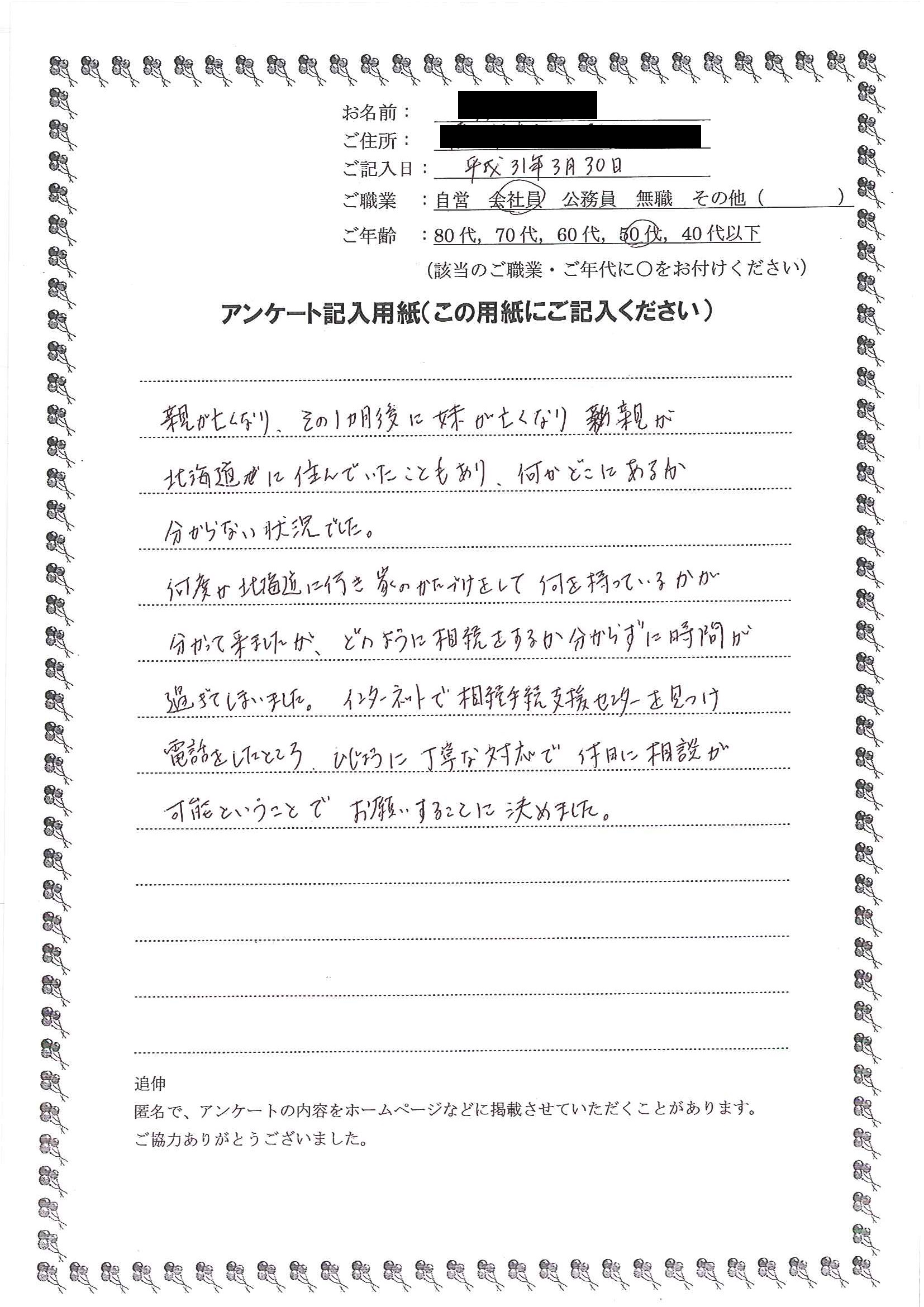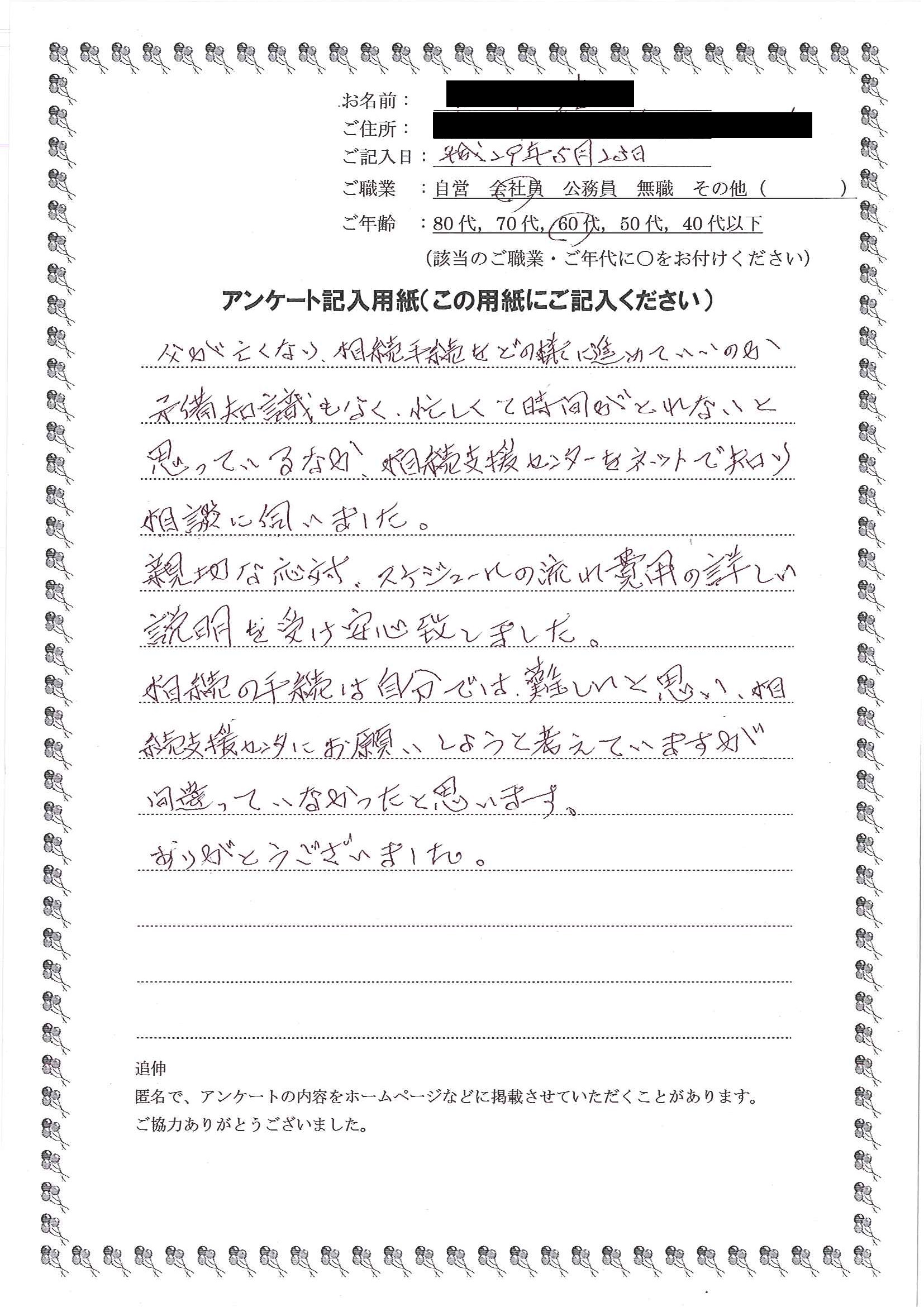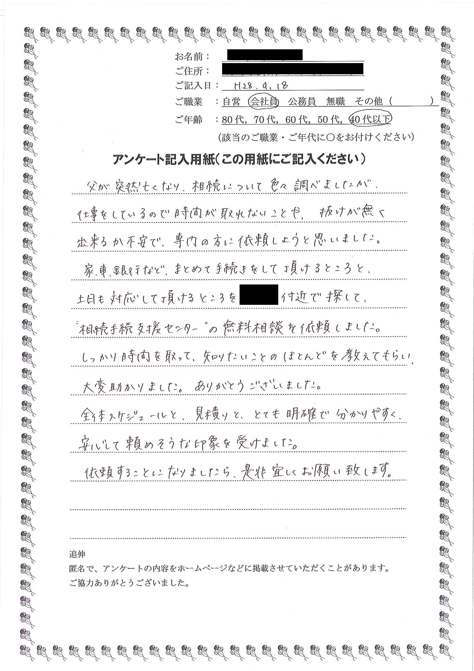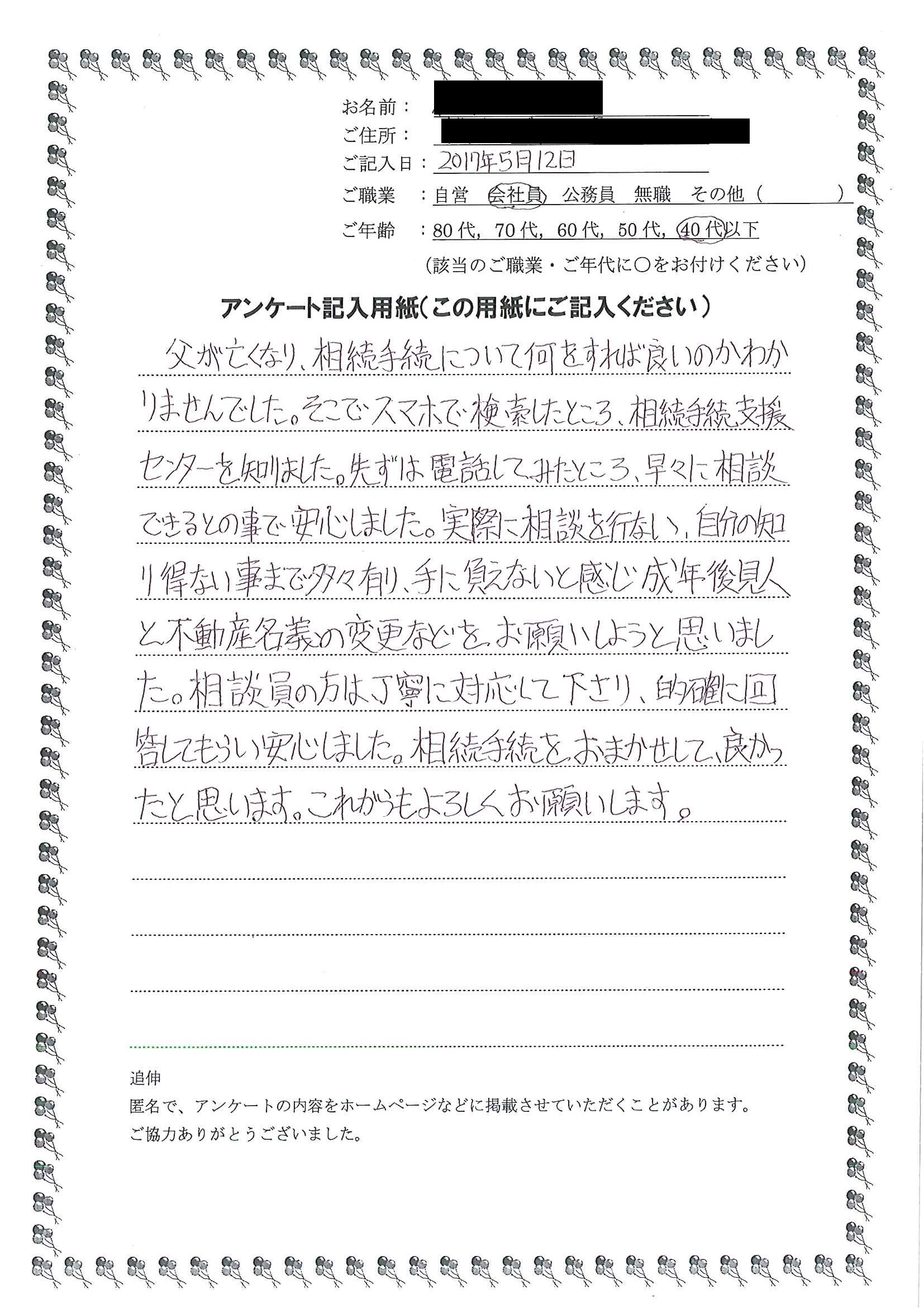 “相続手続支援センター”の無料相談を依頼しました。