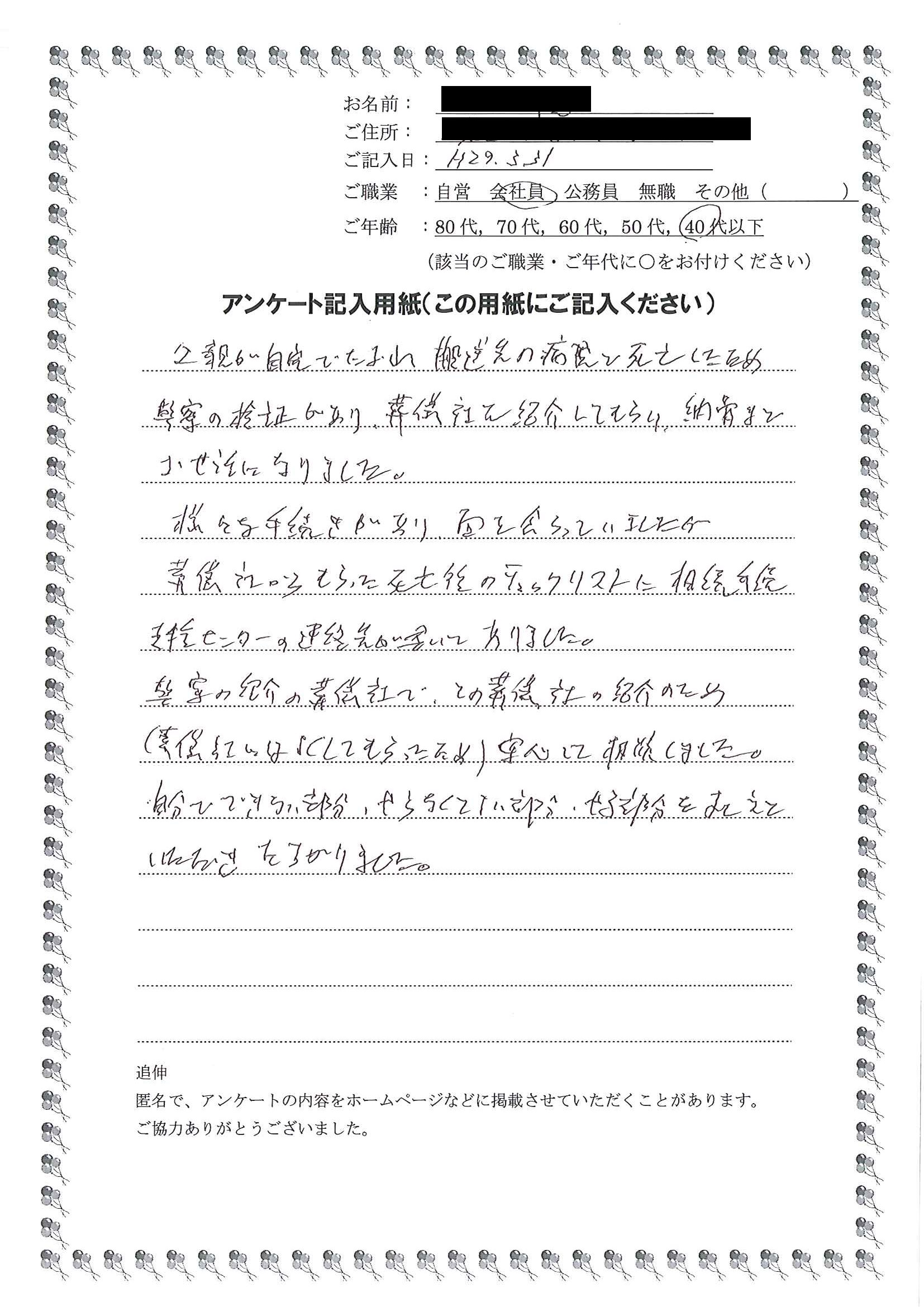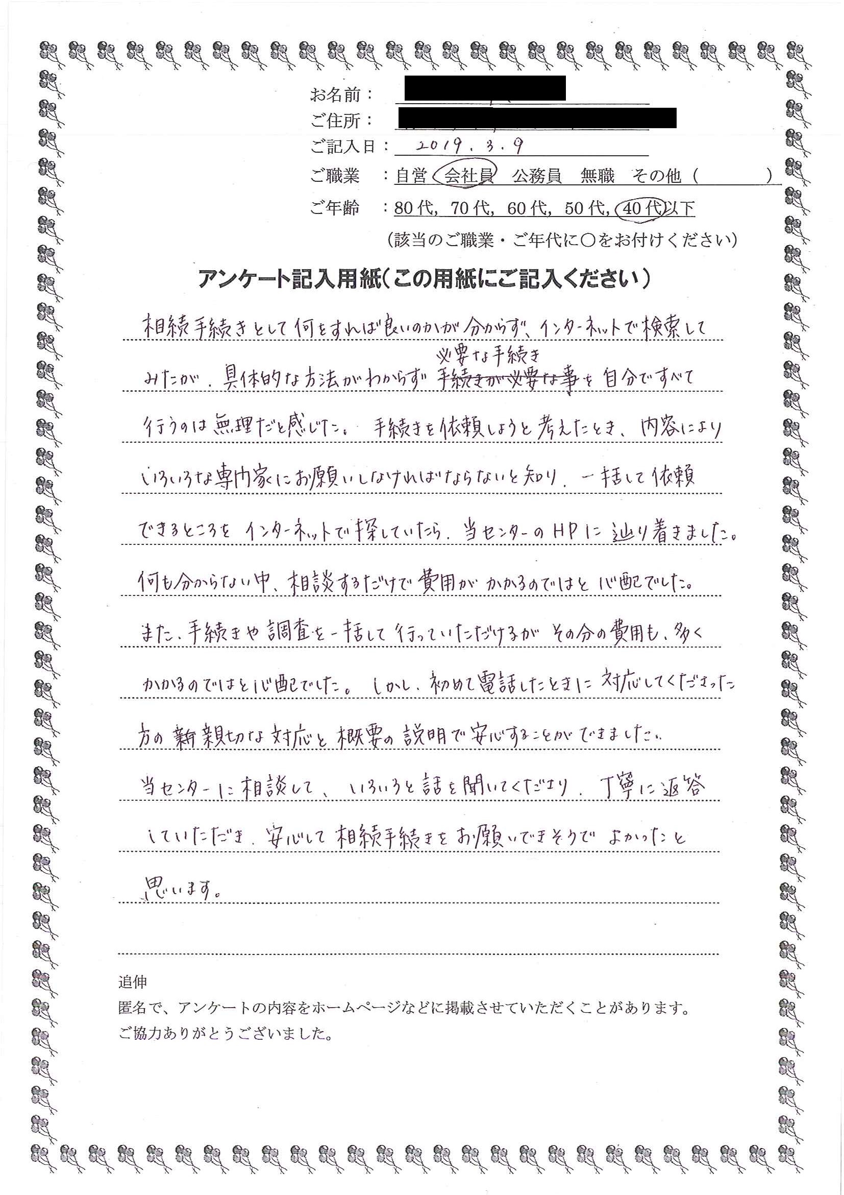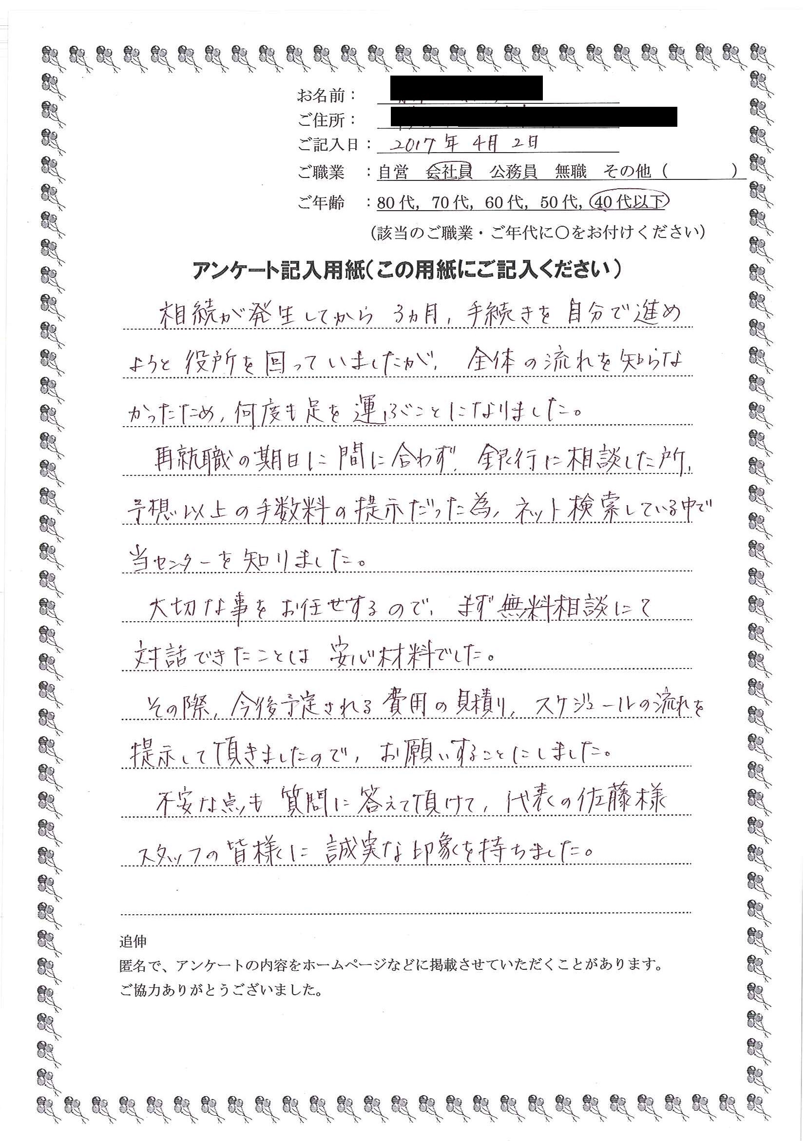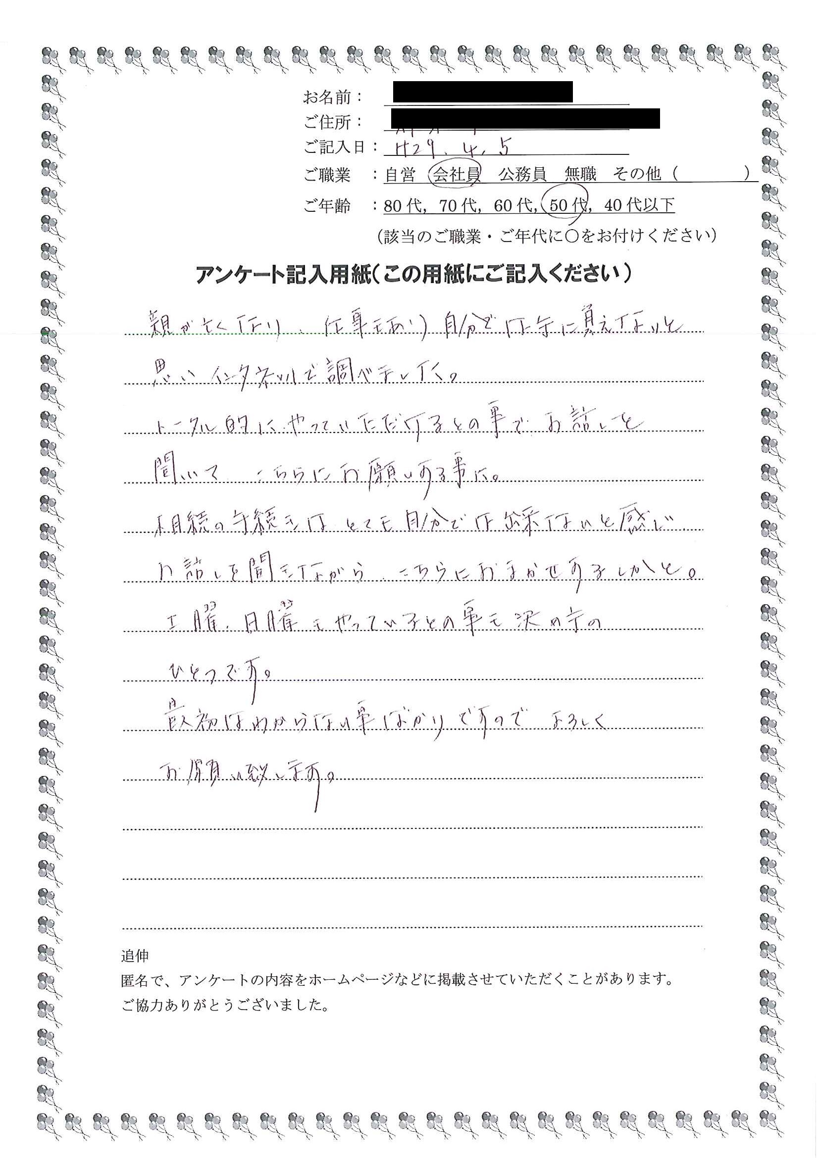 安心して手続きをお任せできると思いました。
