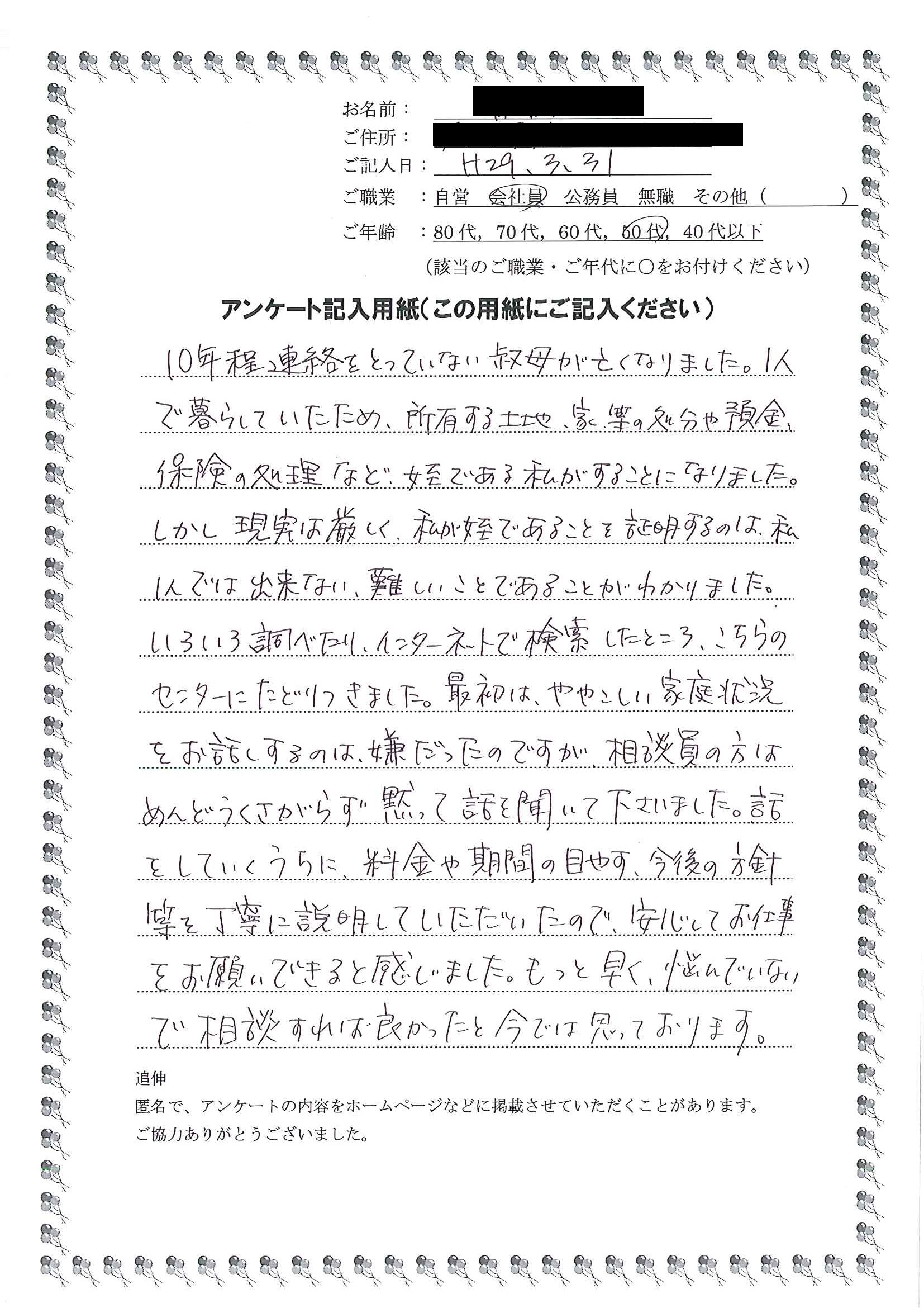 相続手続支援センターに相談して、いろいろと話を聞いてくださり、