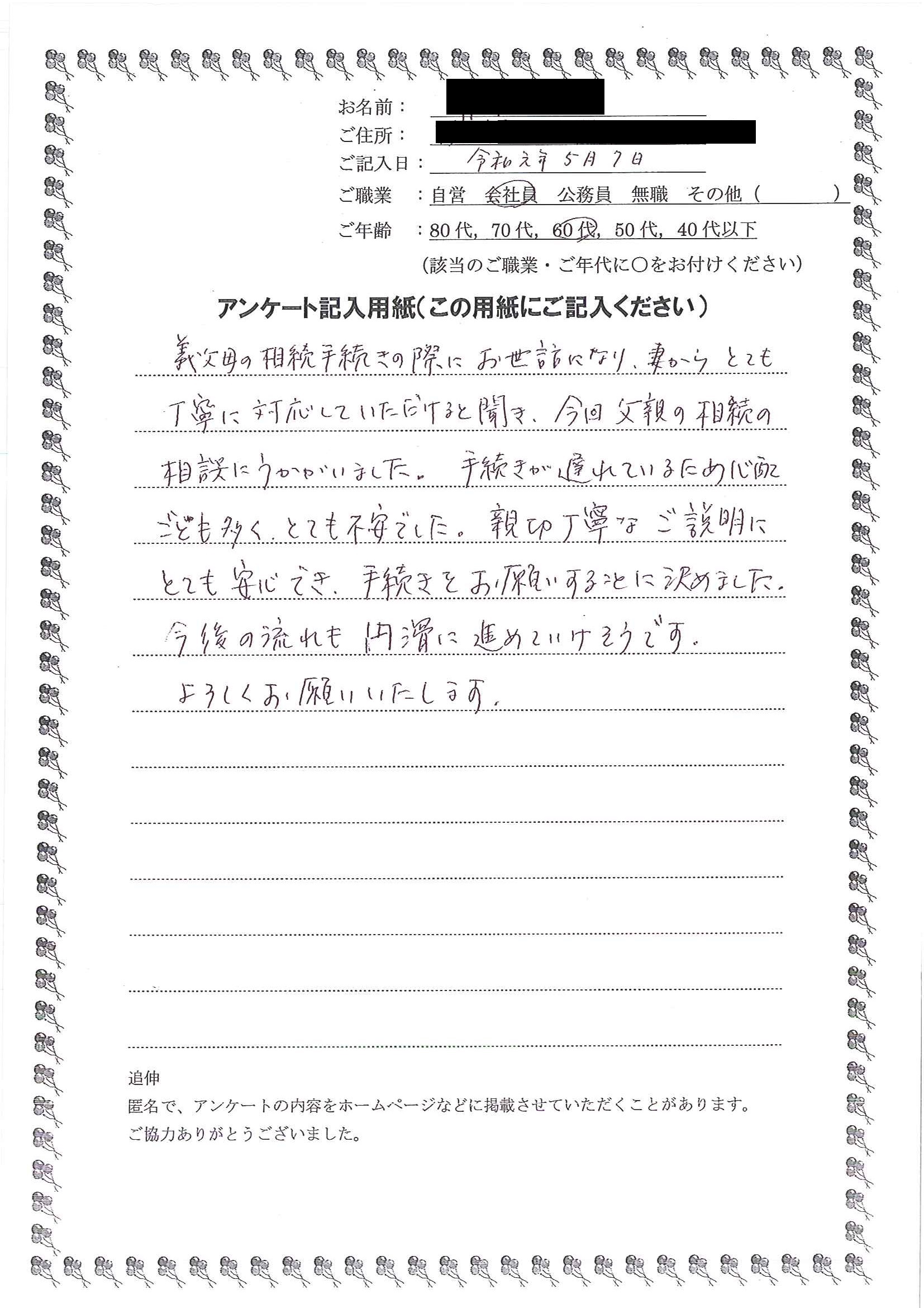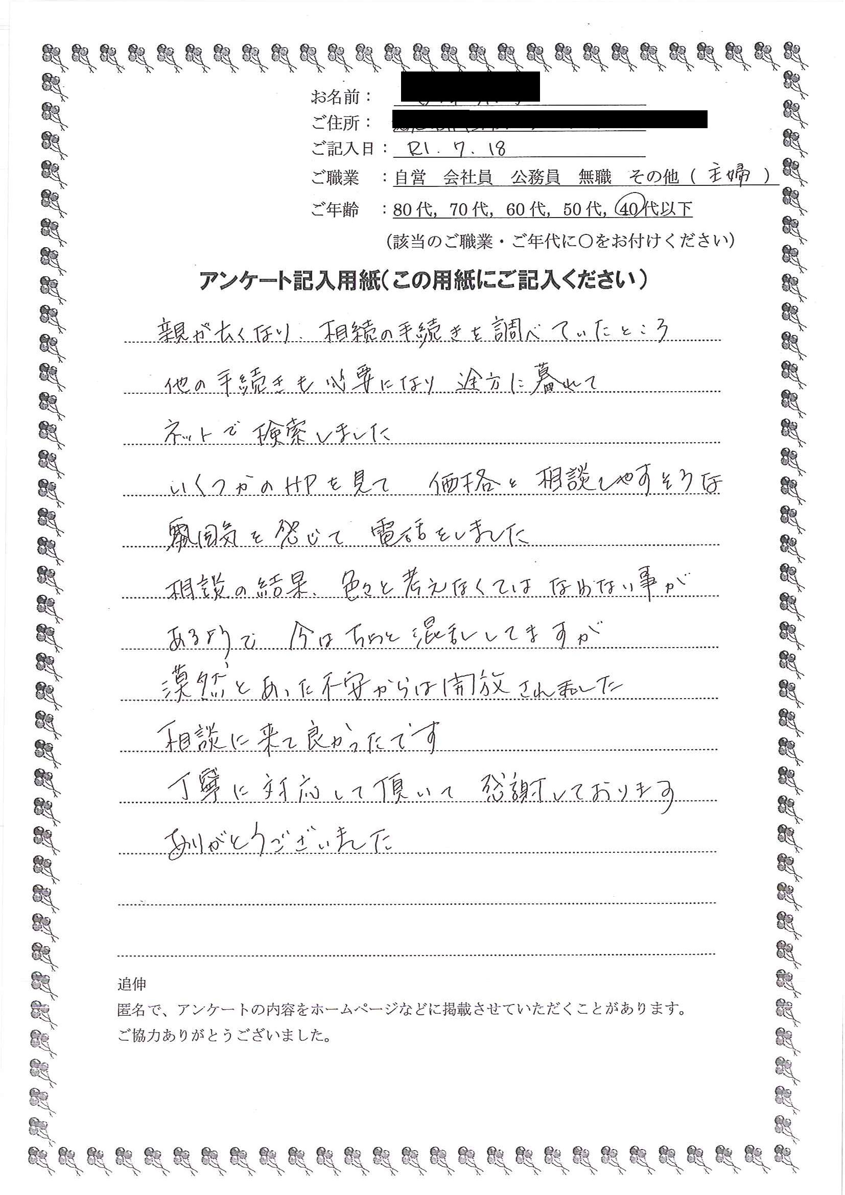 三浦 久美子さま(仮名)名古屋市西区在住 40代以下女性 自営