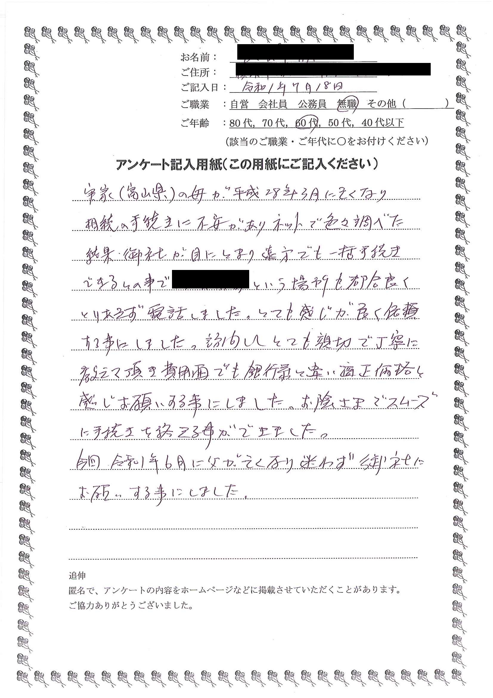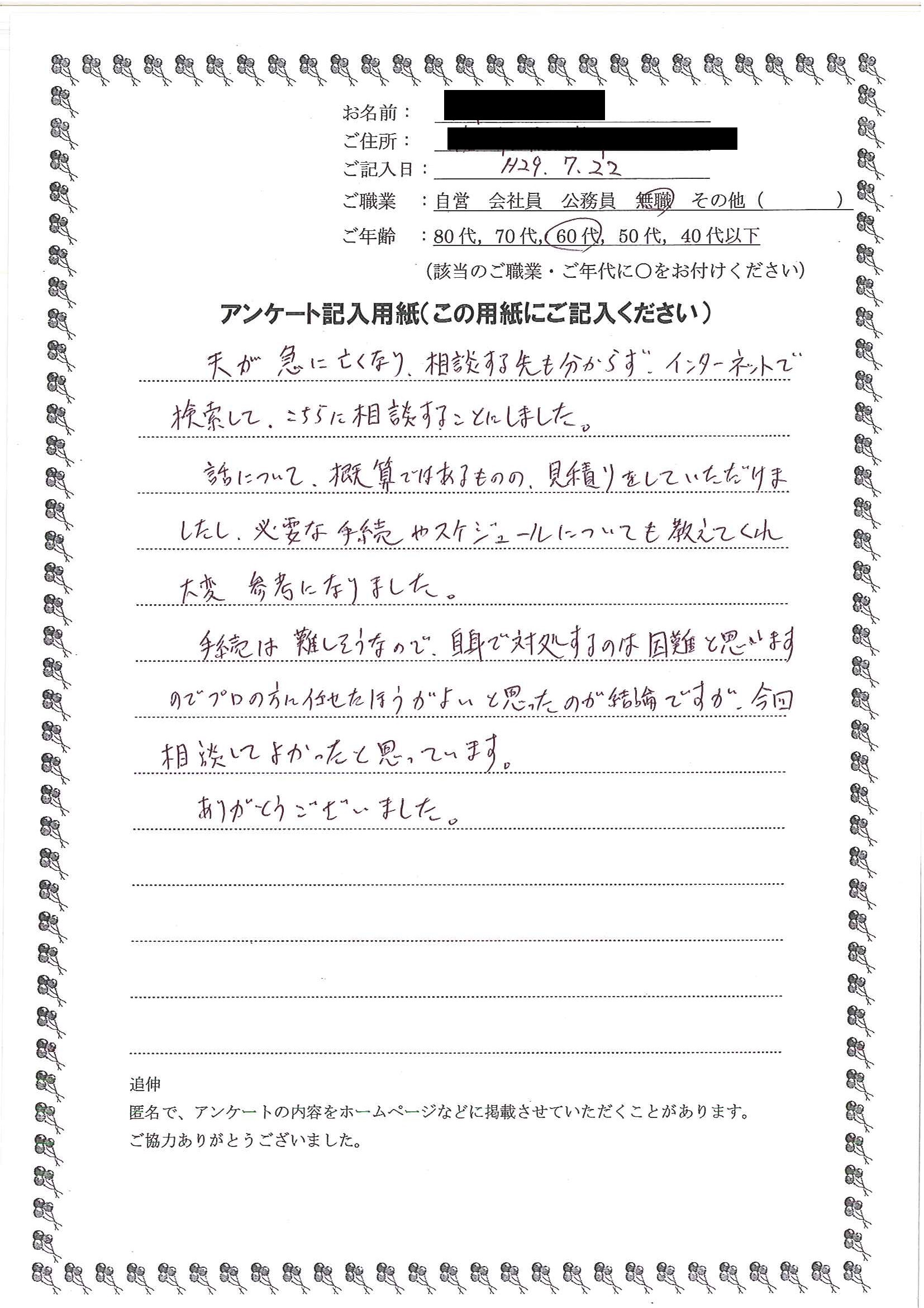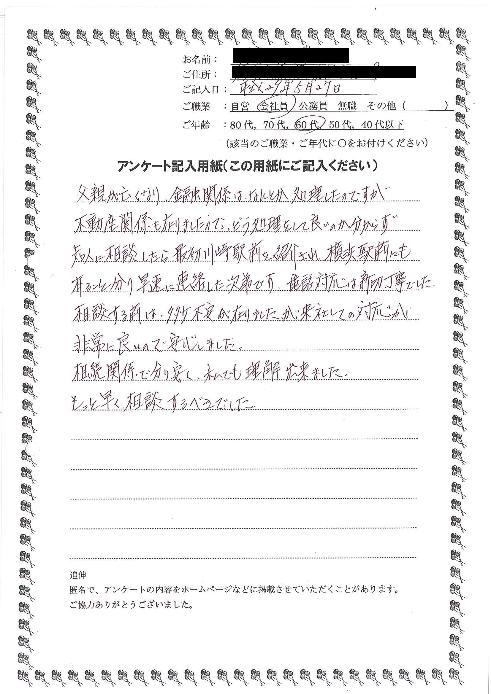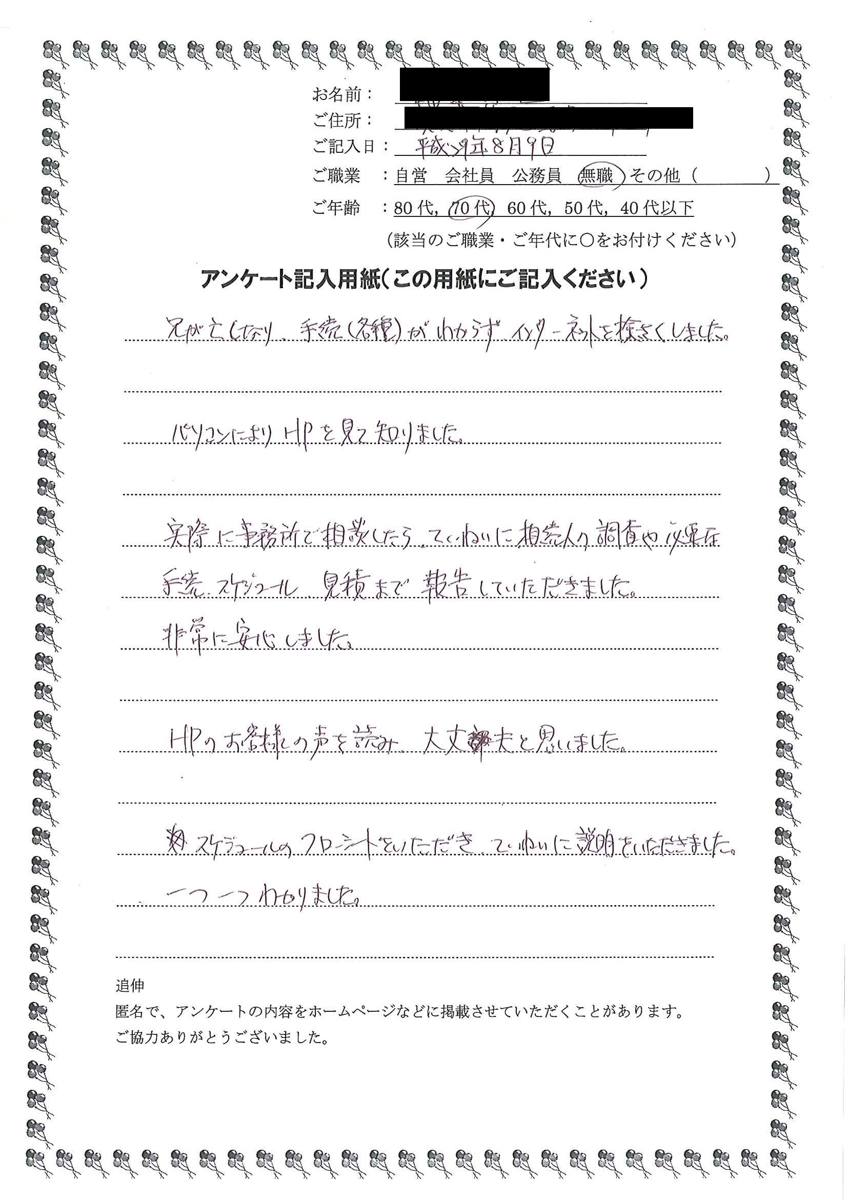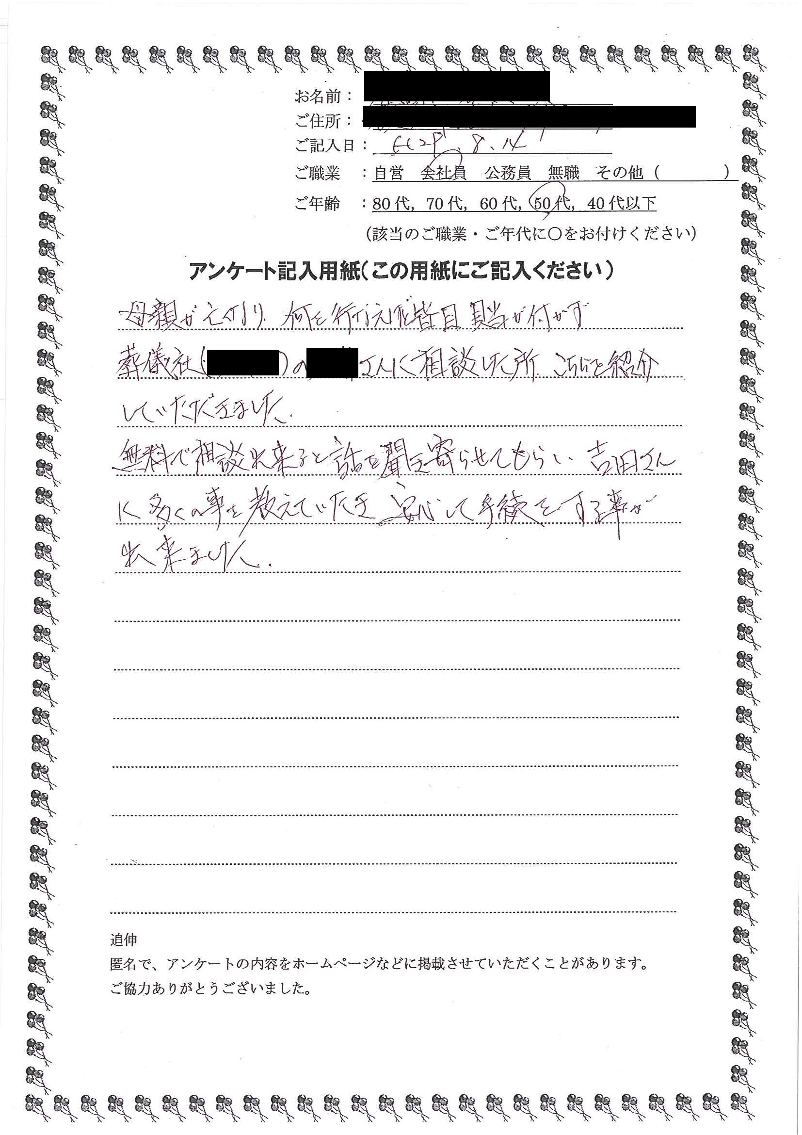 親切かつ丁寧に対応して頂き、安心してお任せすることができました。
