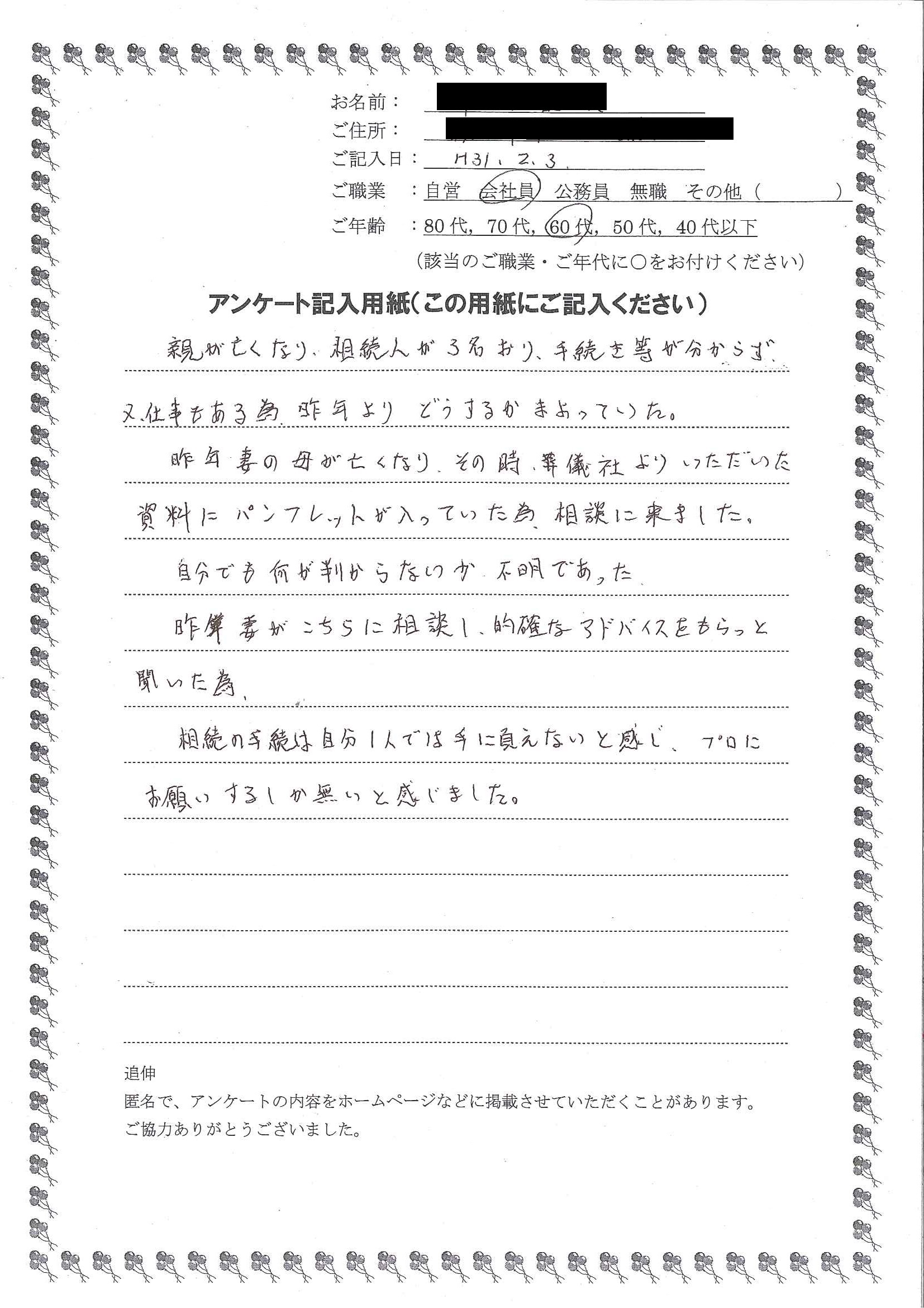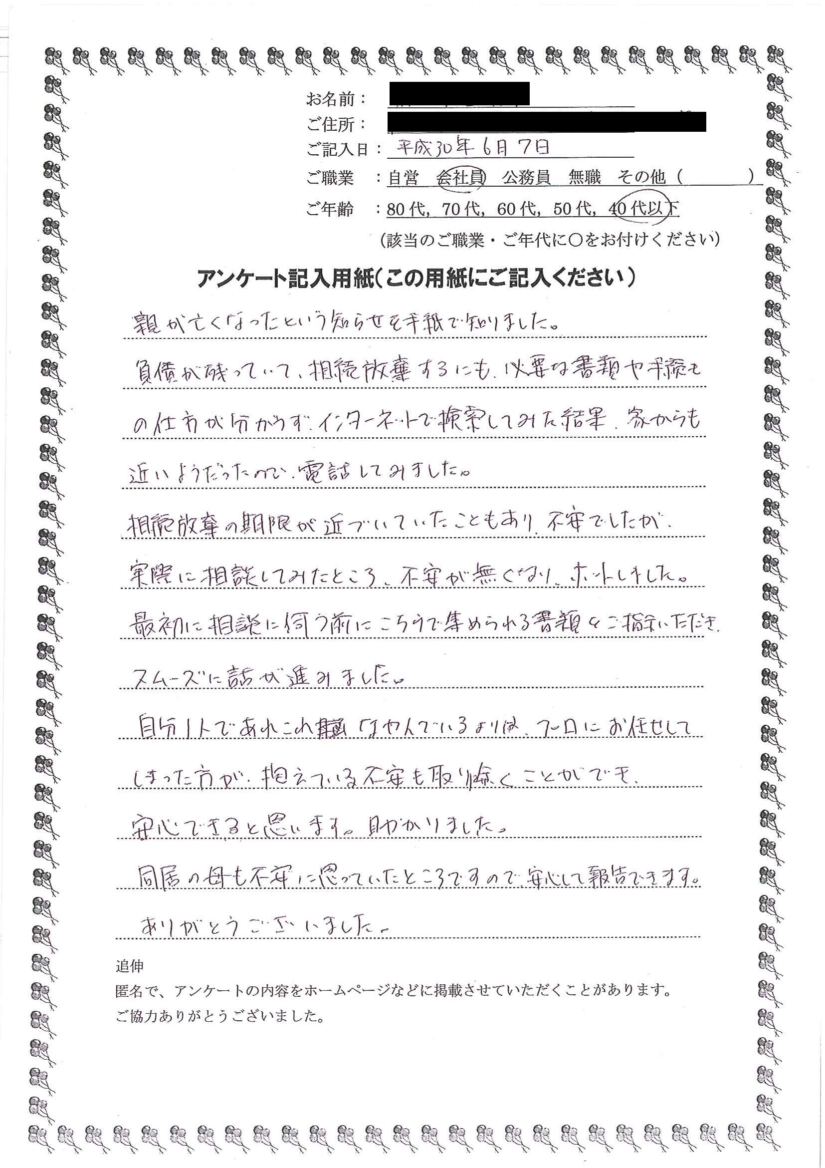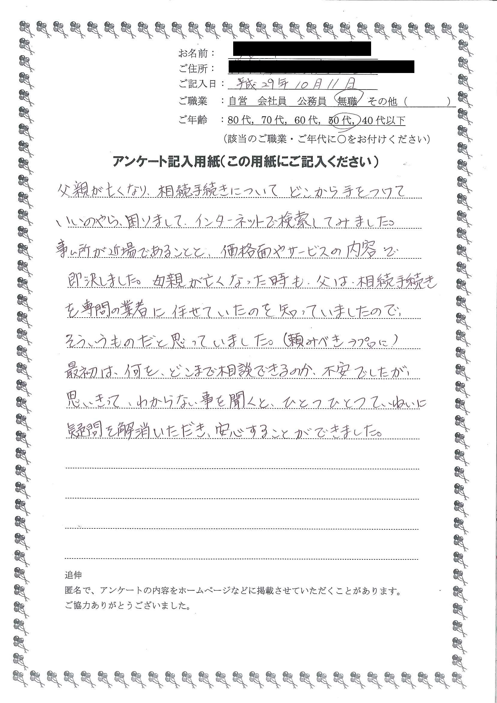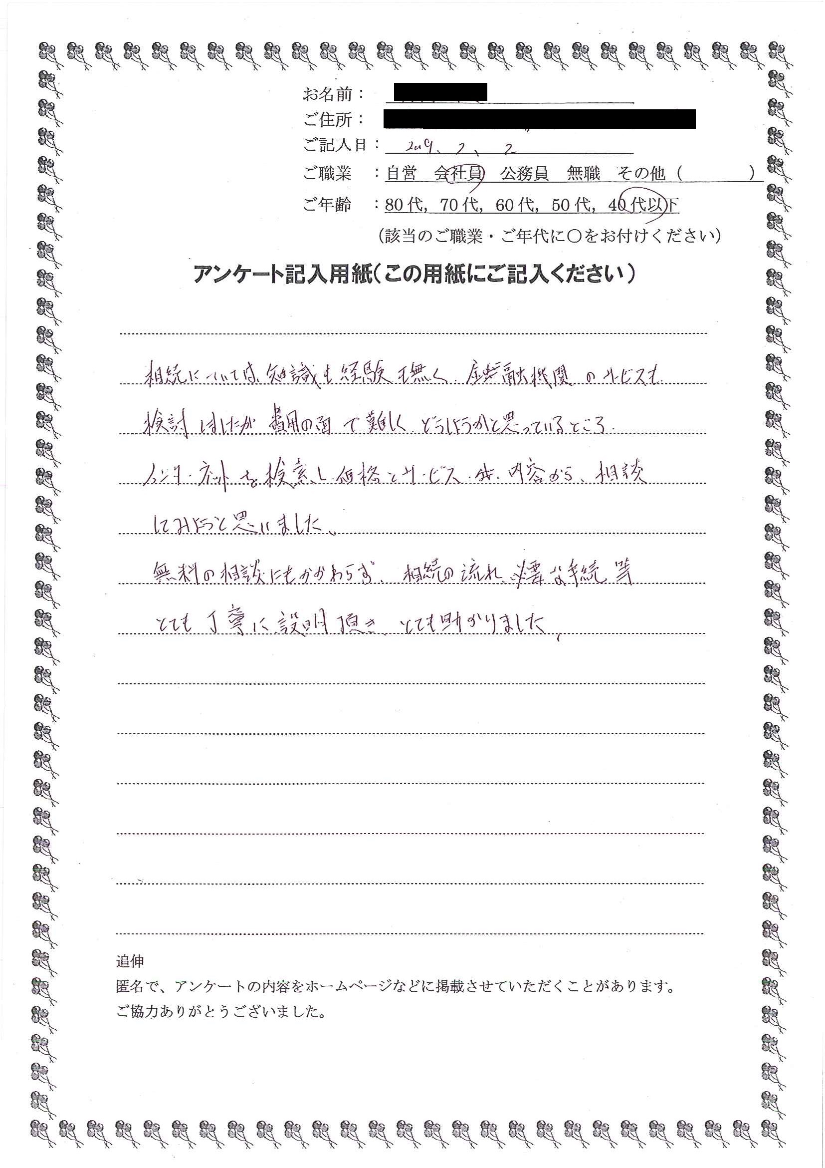 手続きをお願いすることにしました。