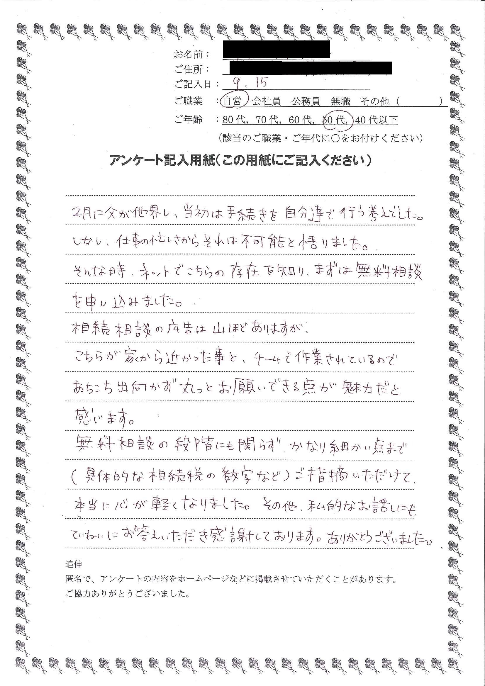 宮野 伊代子さま(仮名)名古屋市千種区在住 50代女性 自営業