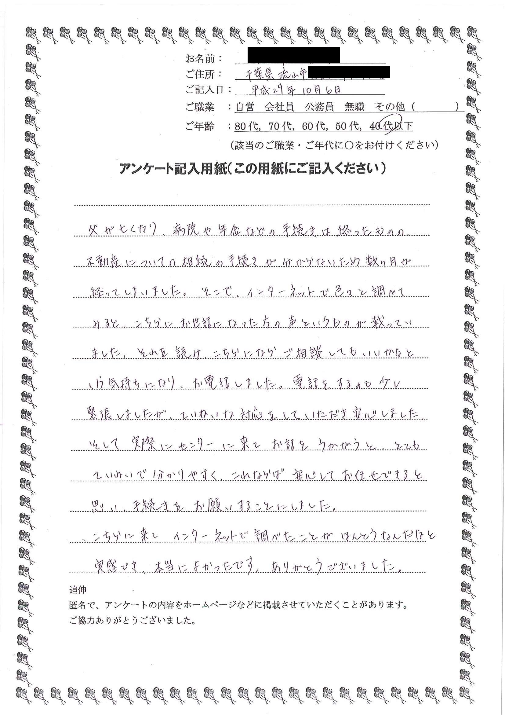 油井 音花さま(仮名)千葉県流山市在住 40代以下女性