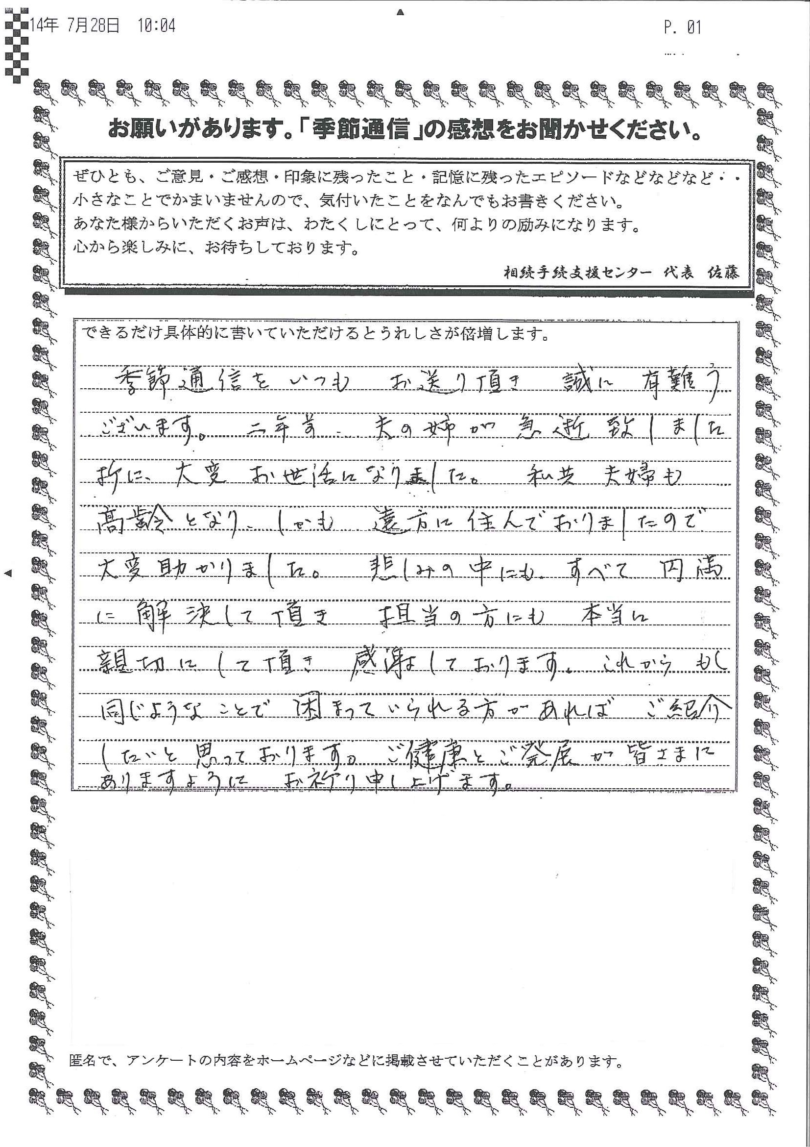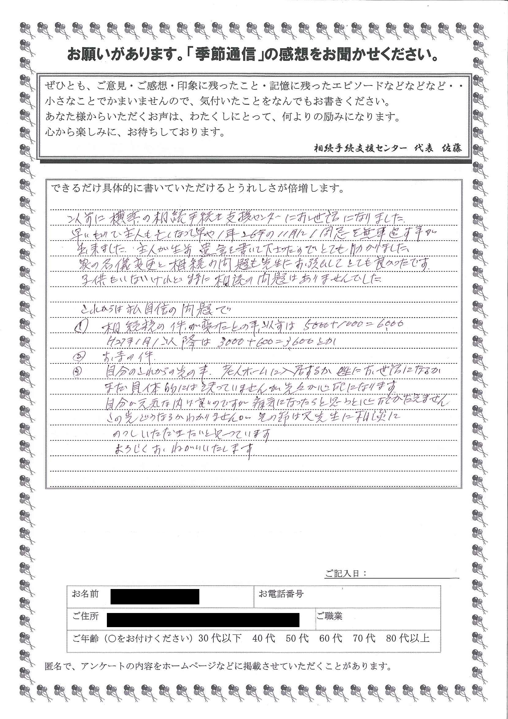 以前に横浜の相続手続支援センターにお世話になりました。