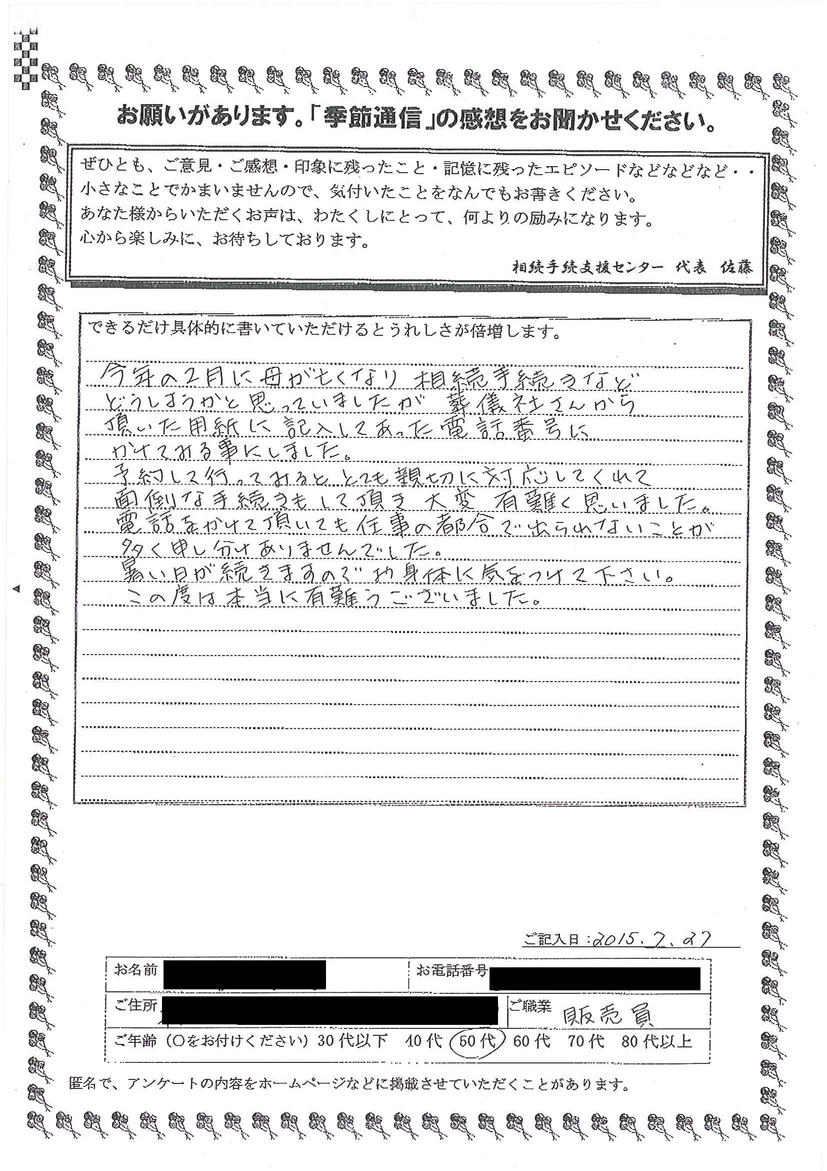 季節通信の読者の声その3
