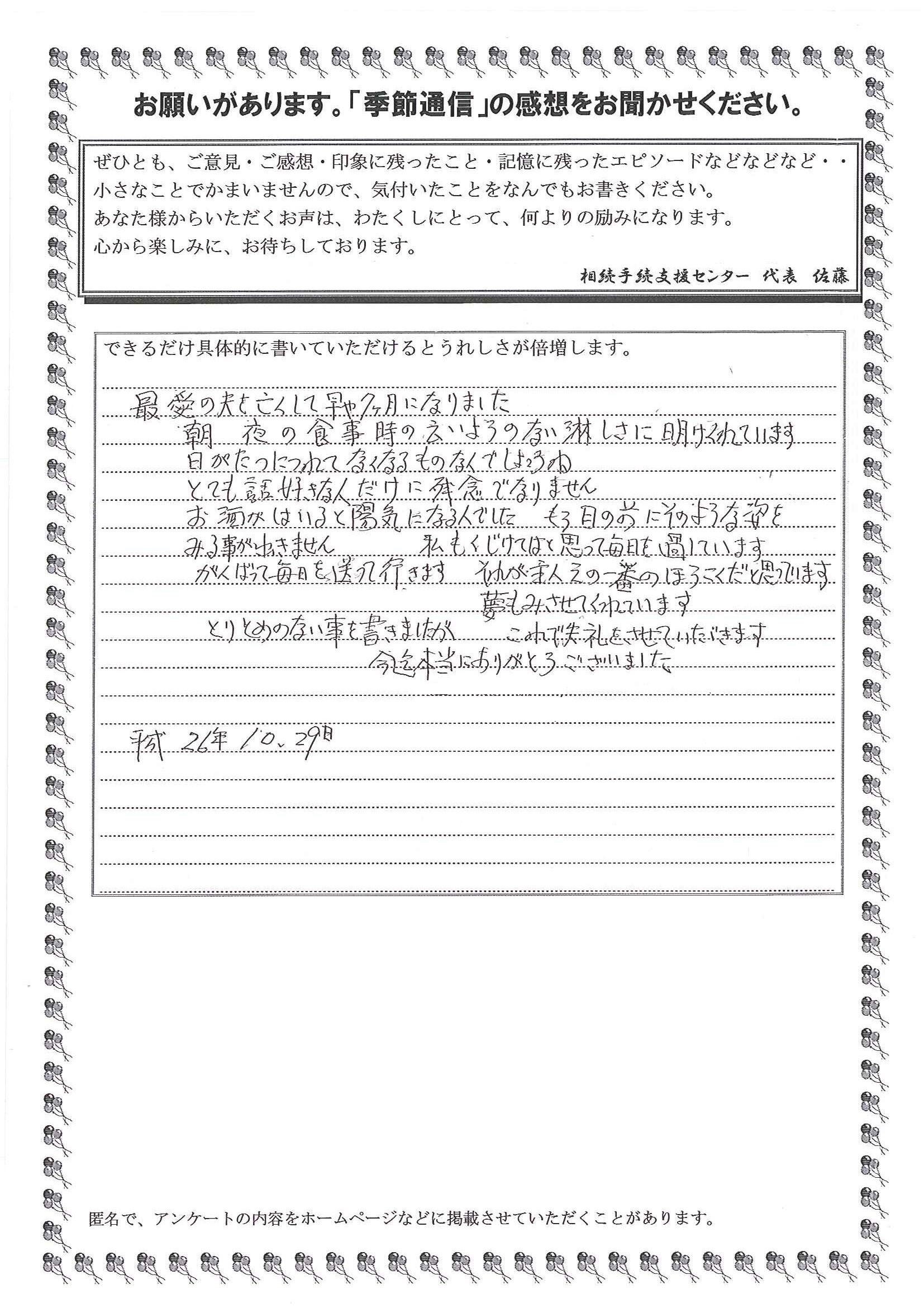 主人が生前、遺言を書いて下さったので