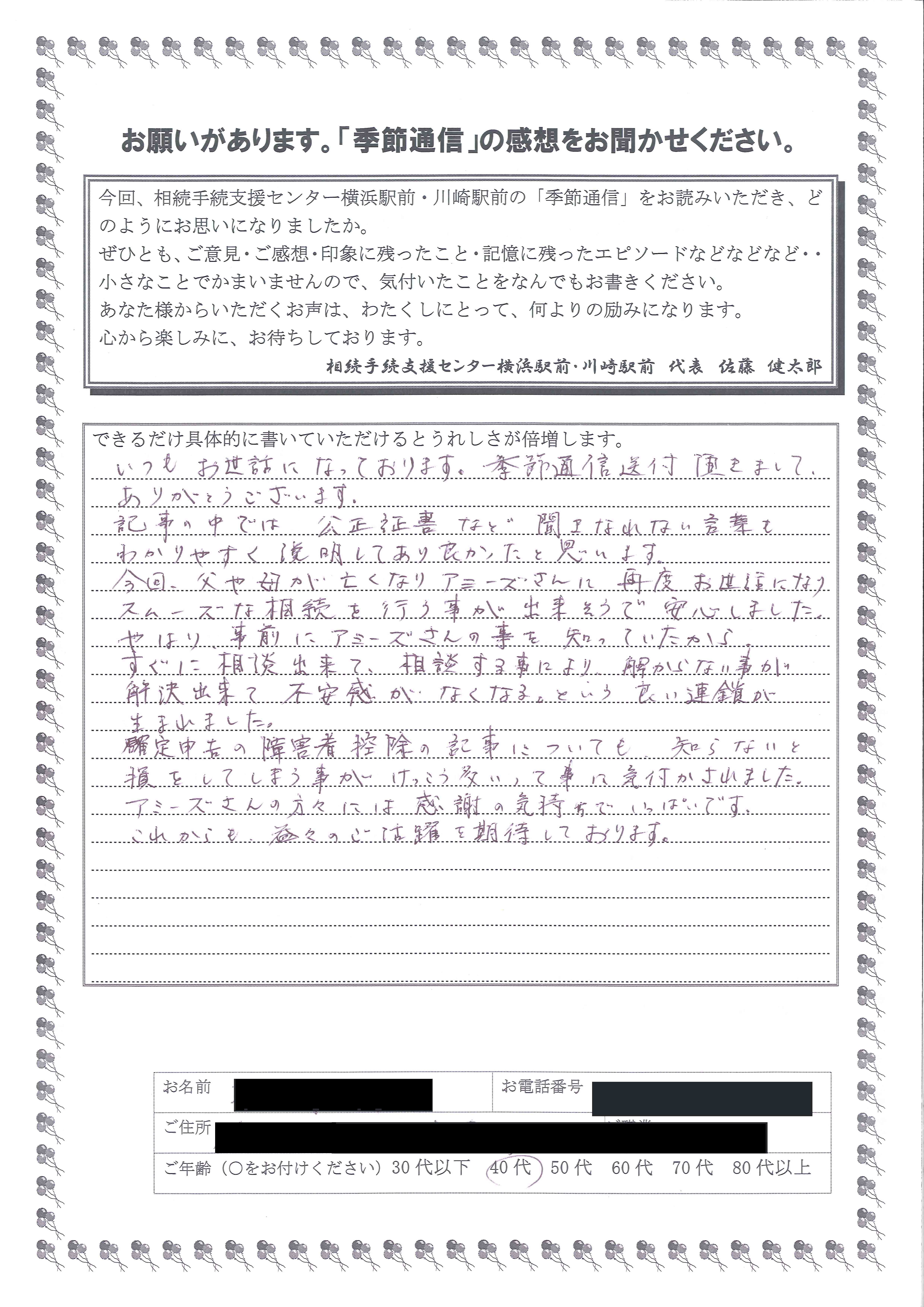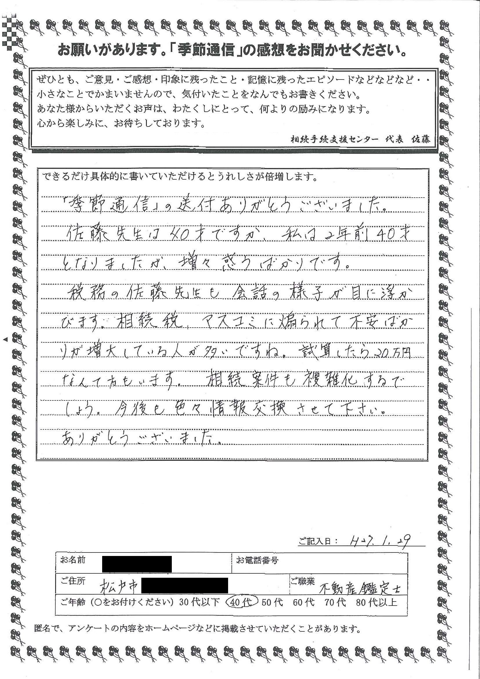 季節通信の読者の声その1