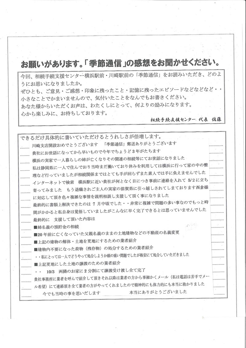 西倉様に対応して頂き、色々複雑な事情を説明相談し