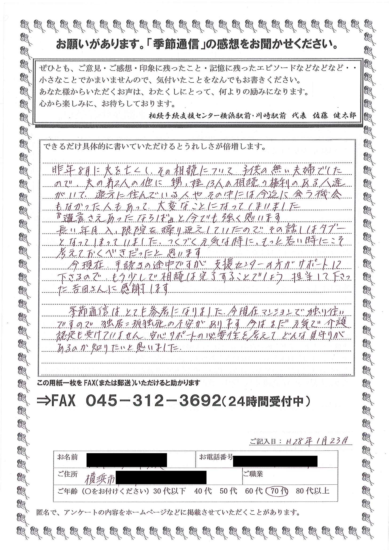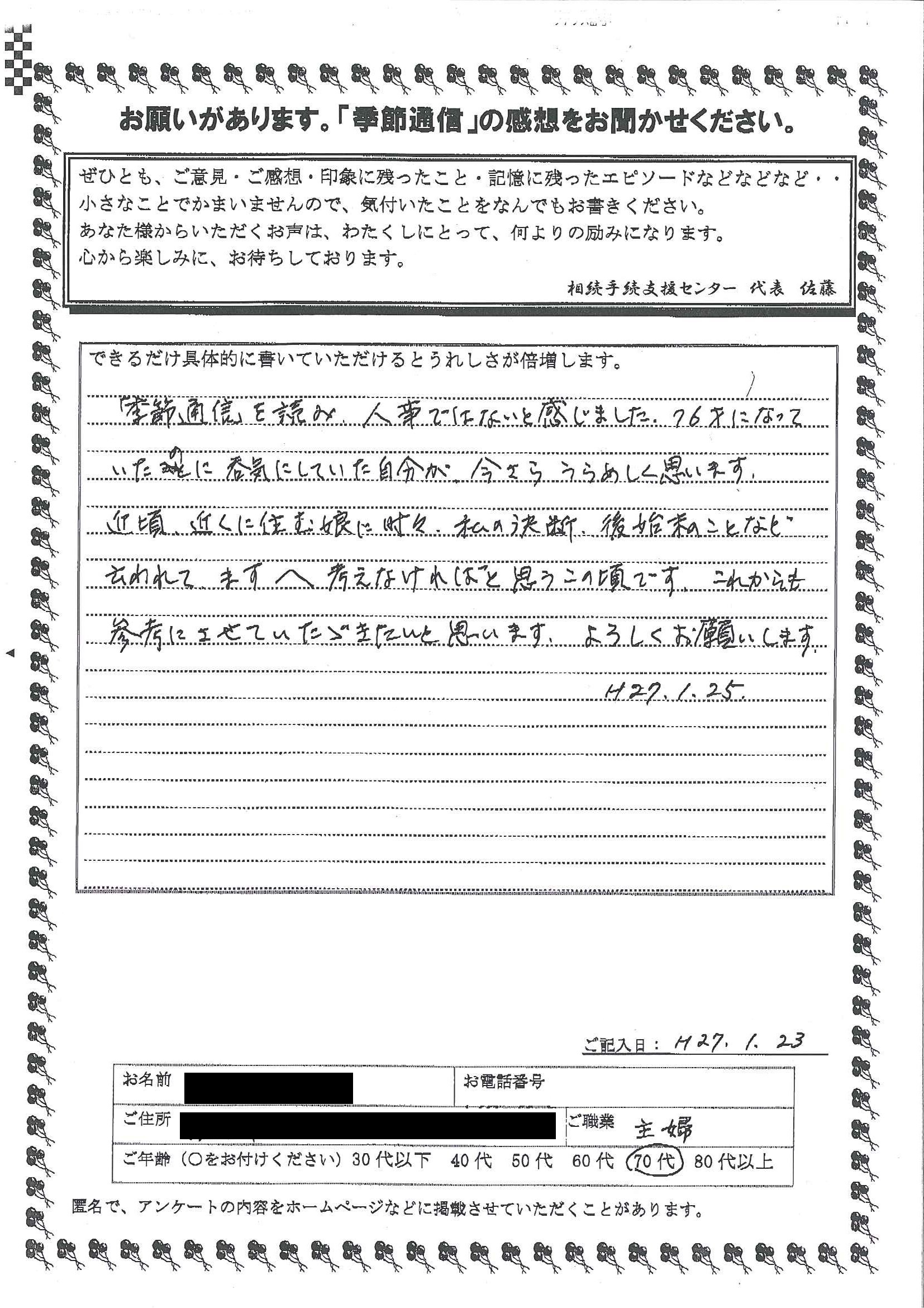 前川 弓枝さま(仮名)名古屋市熱田区在住 70代女性 無職