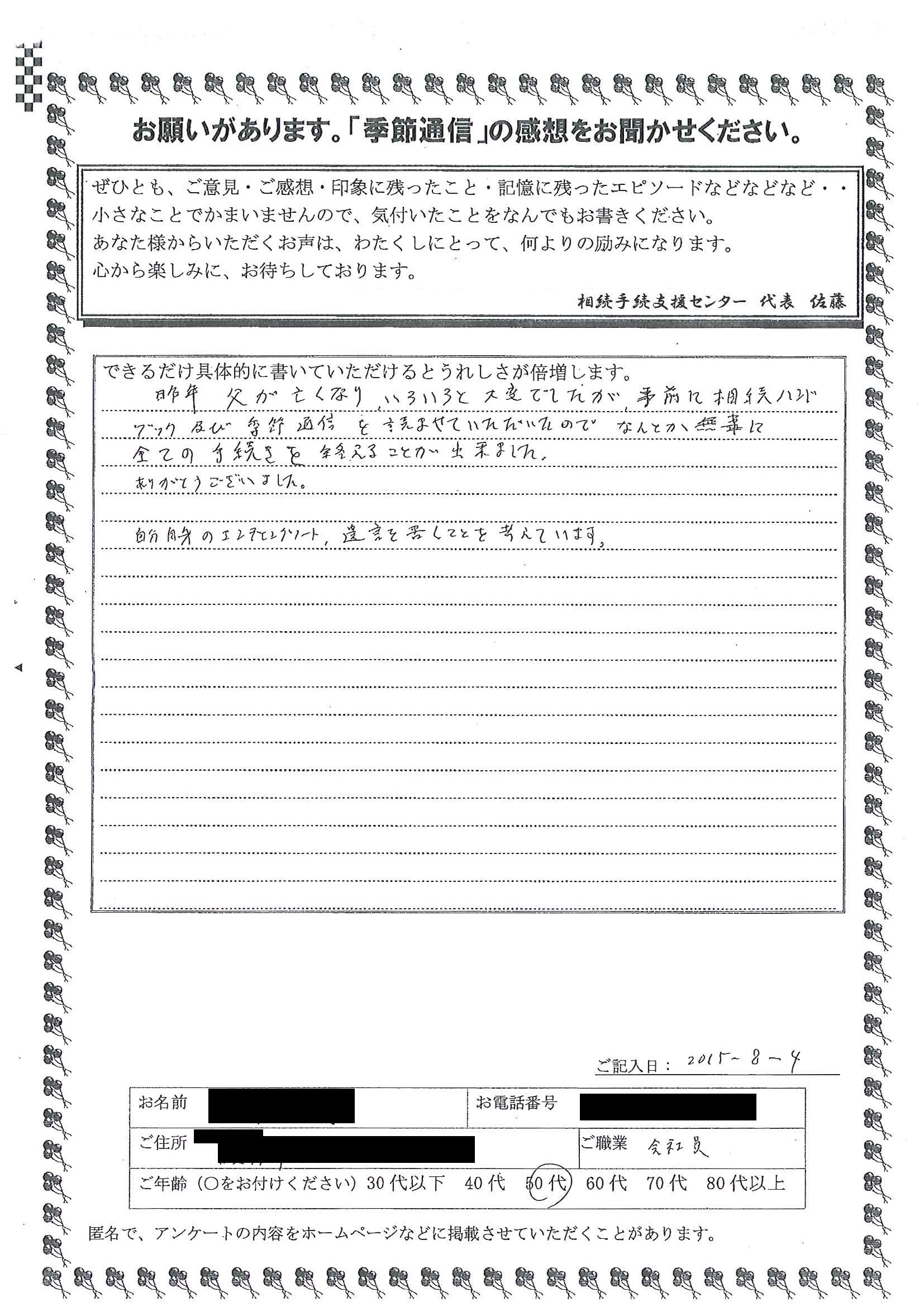 相続関係まではとても手が回らずまた素人では手に負えませんでした。